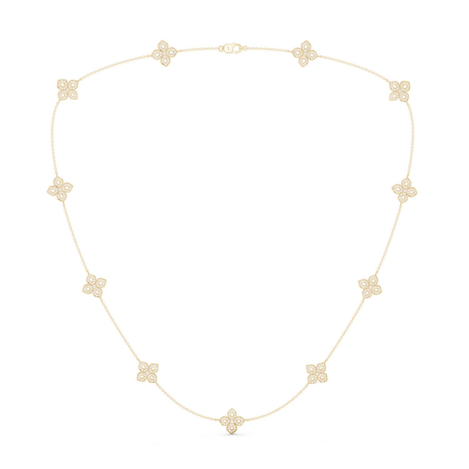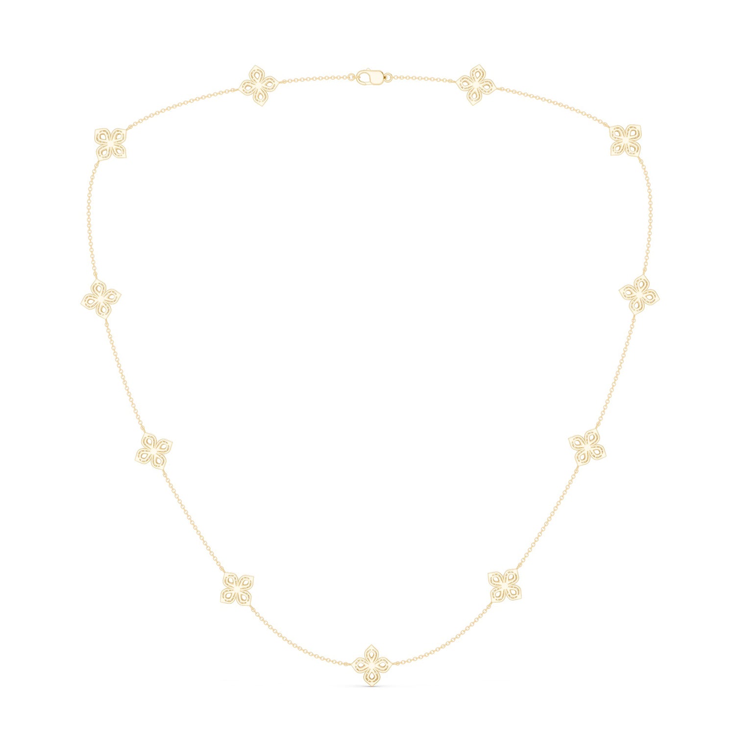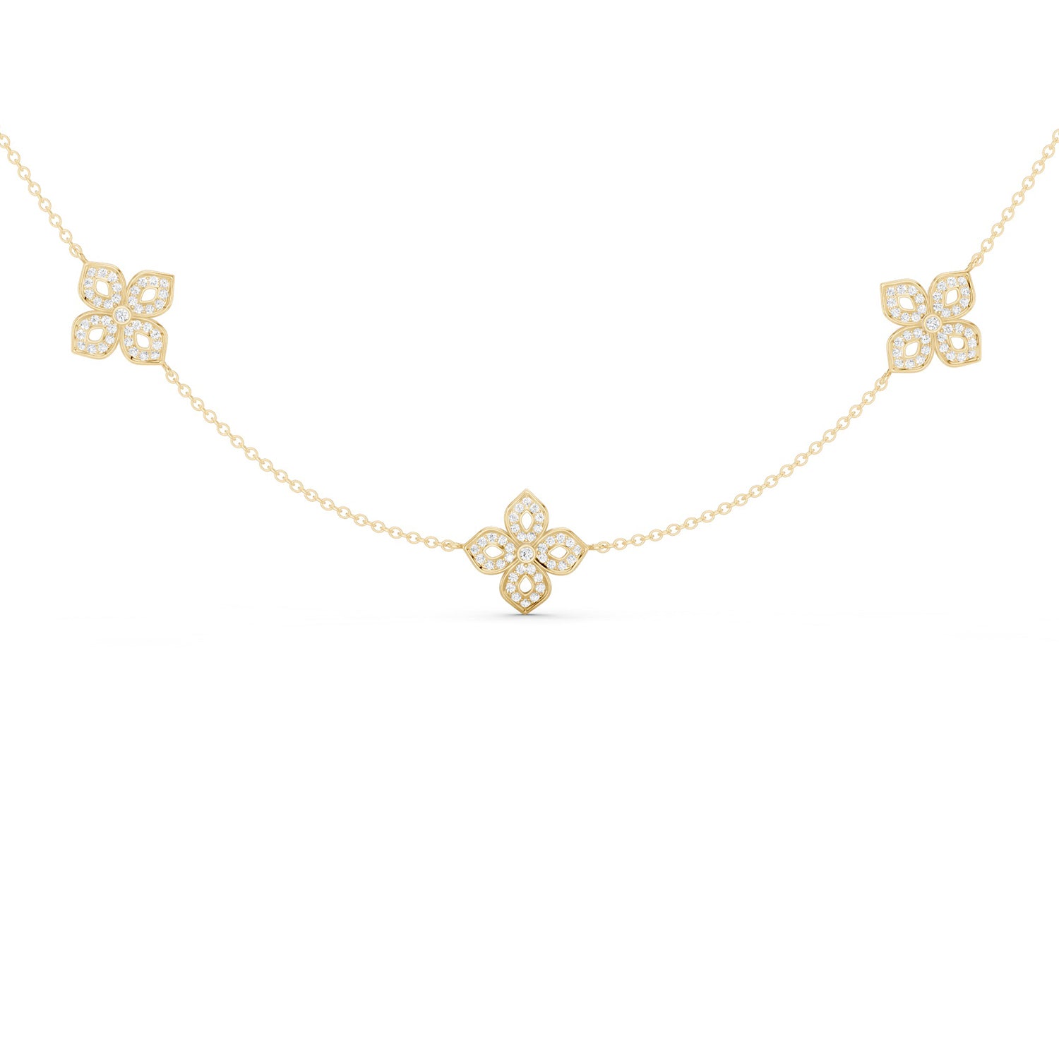 Enhancing the ethereal beauty of the floral silhouettes are the dazzling diamond accents that grace this La Fleur Petite Diamond Silhouette Stationed Necklace. They are carefully stationed along the chain, adding a touch of intricacy to your every move. Whether you're treating yourself or searching for the perfect gift for a loved one, this gold diamond necklace is a gift that will be cherished for a lifetime.