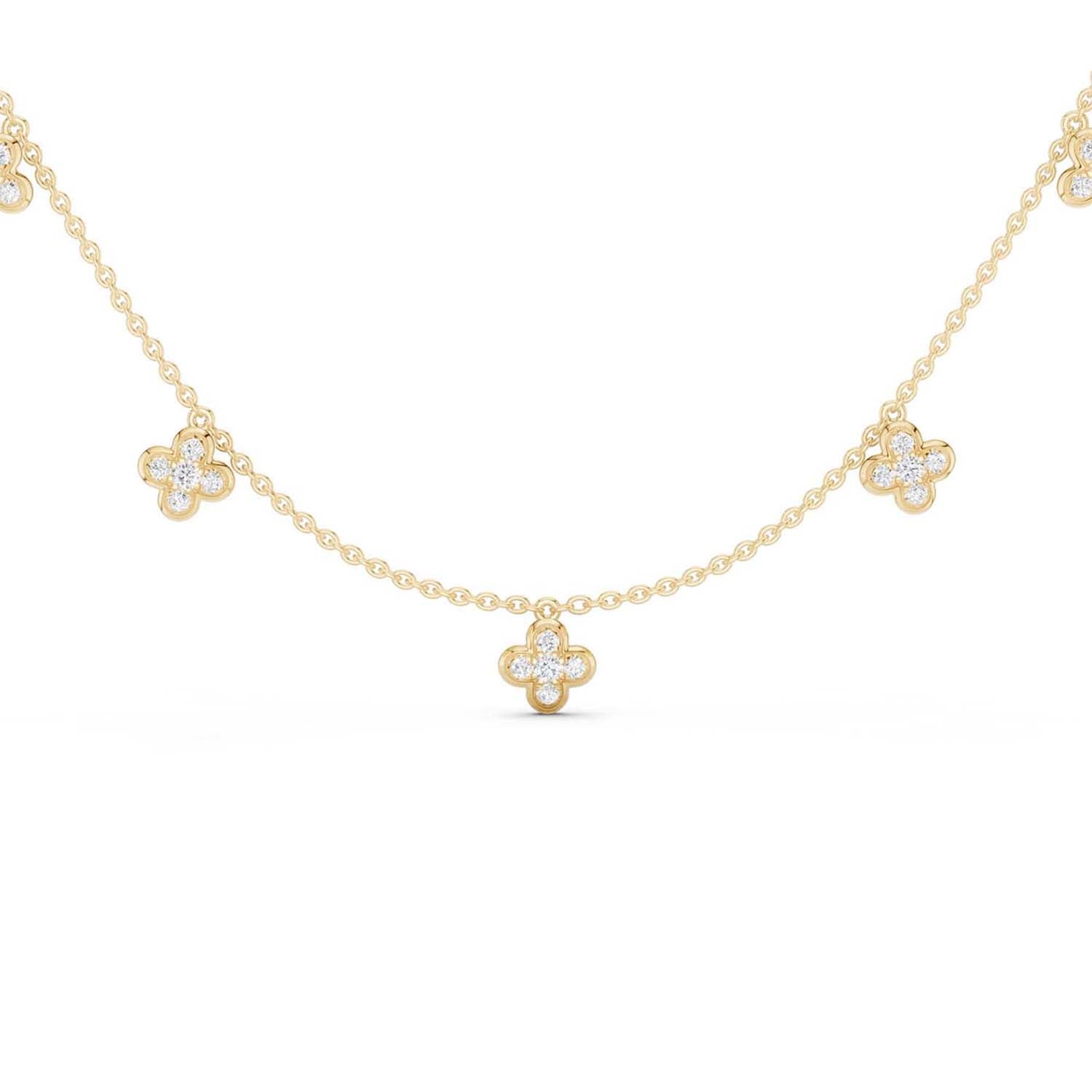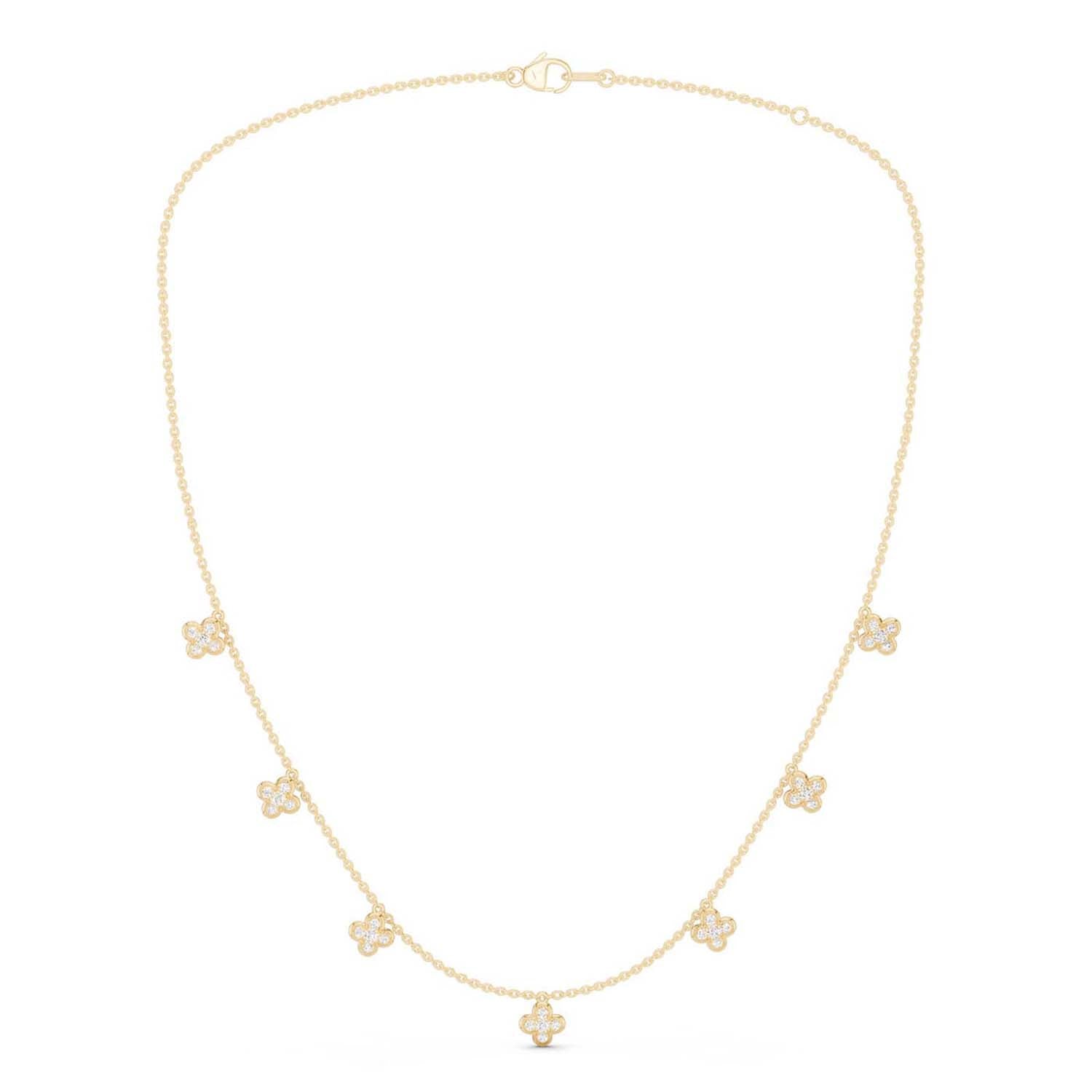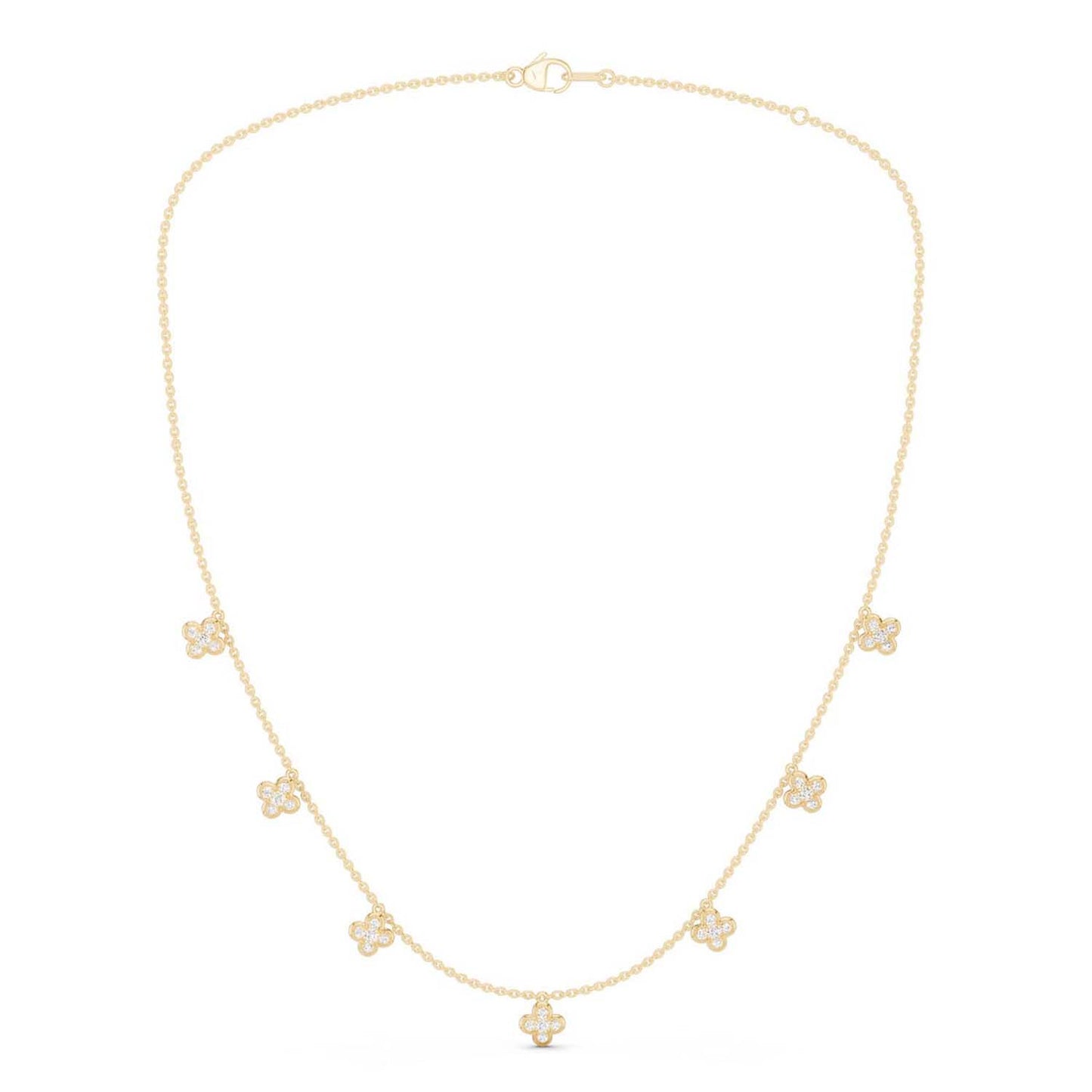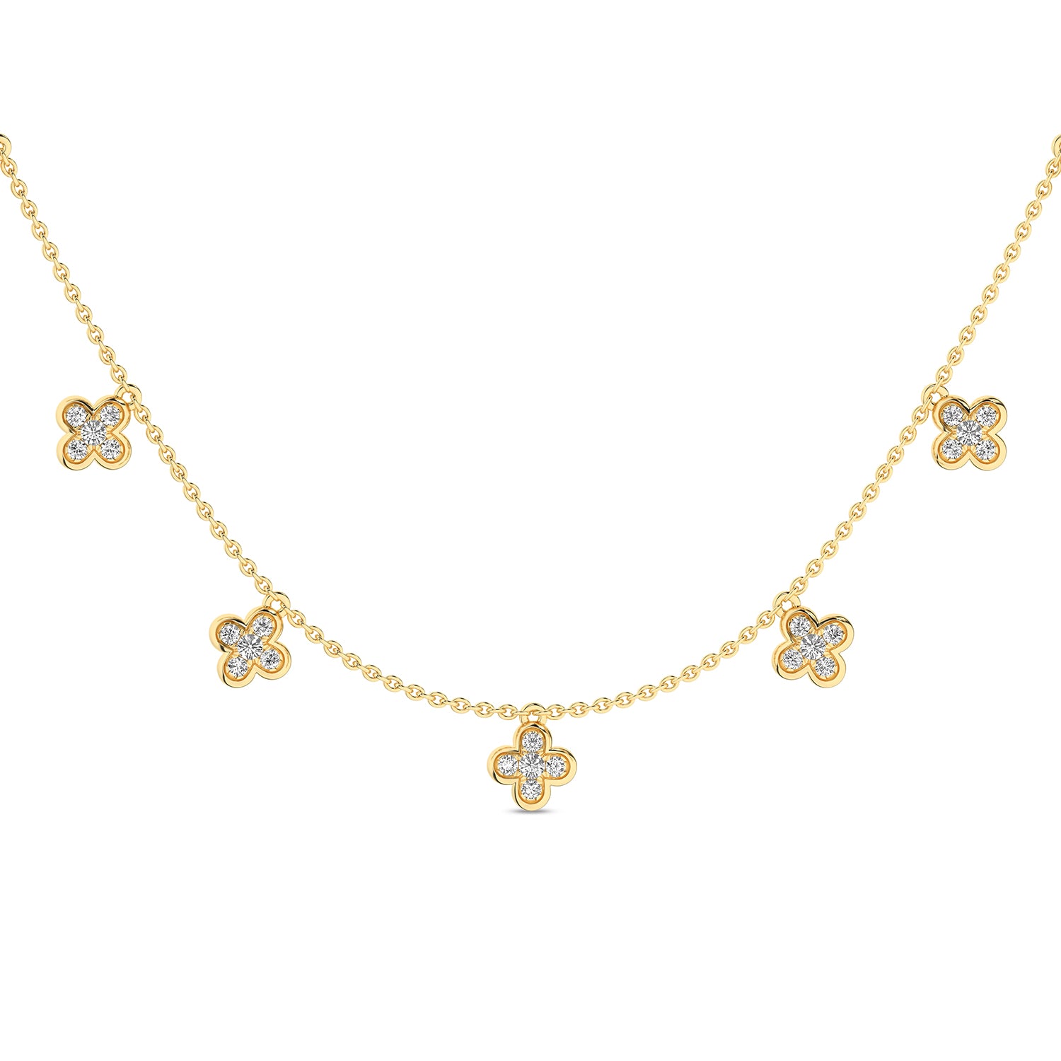 This La Fleur Stationed Choker Necklace boasts a symphony of delicate gold floral designs that encircle your neck with grace and beauty. Each floral station is thoughtfully created to mimic the enchanting intricacies of real flowers. This real diamond choker necklace exudes confidence, making it the perfect choice for special occasions.