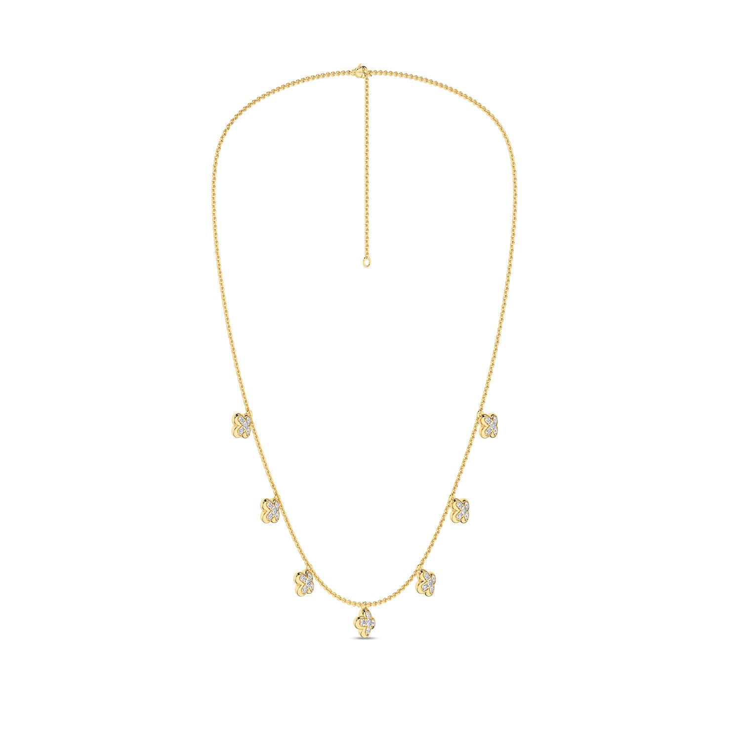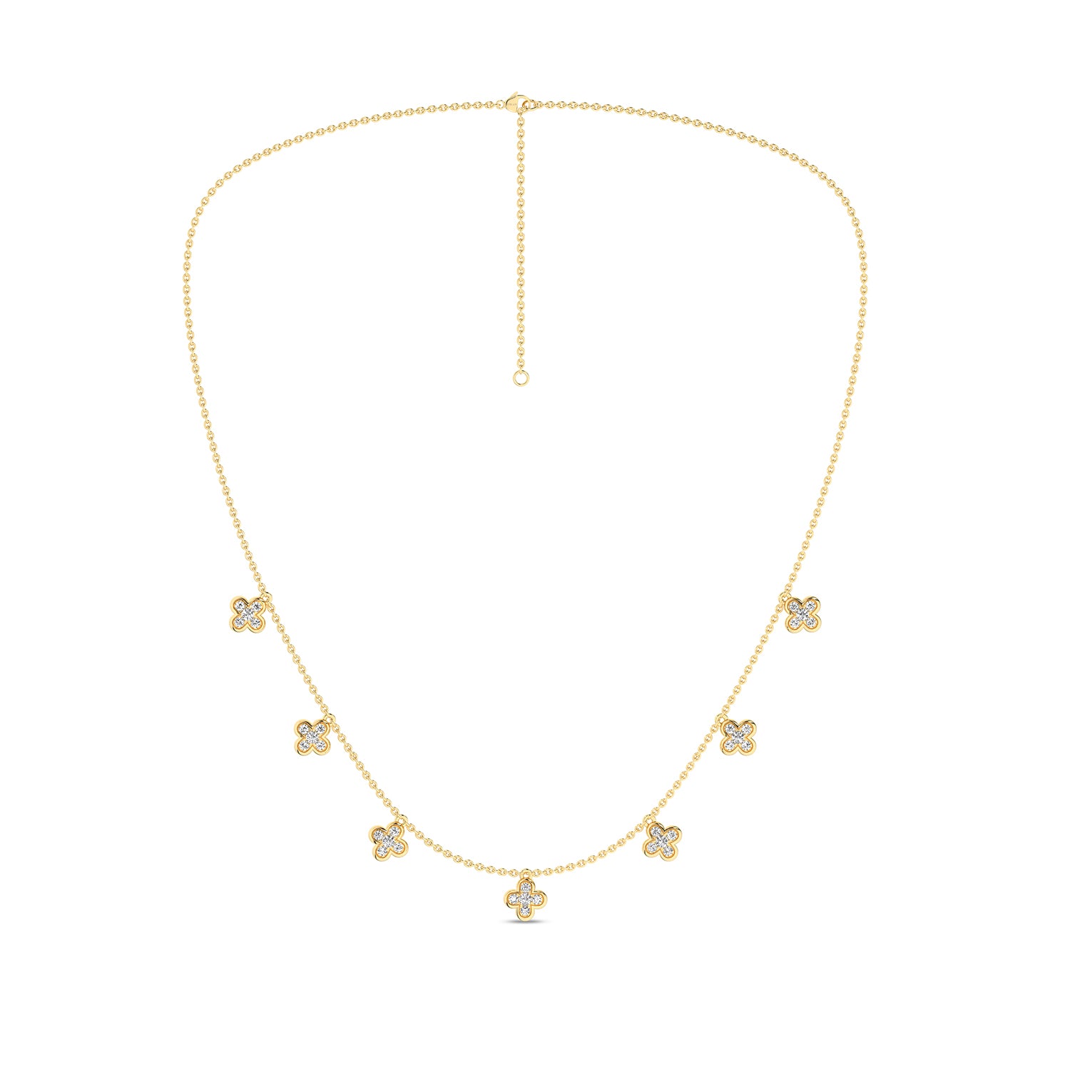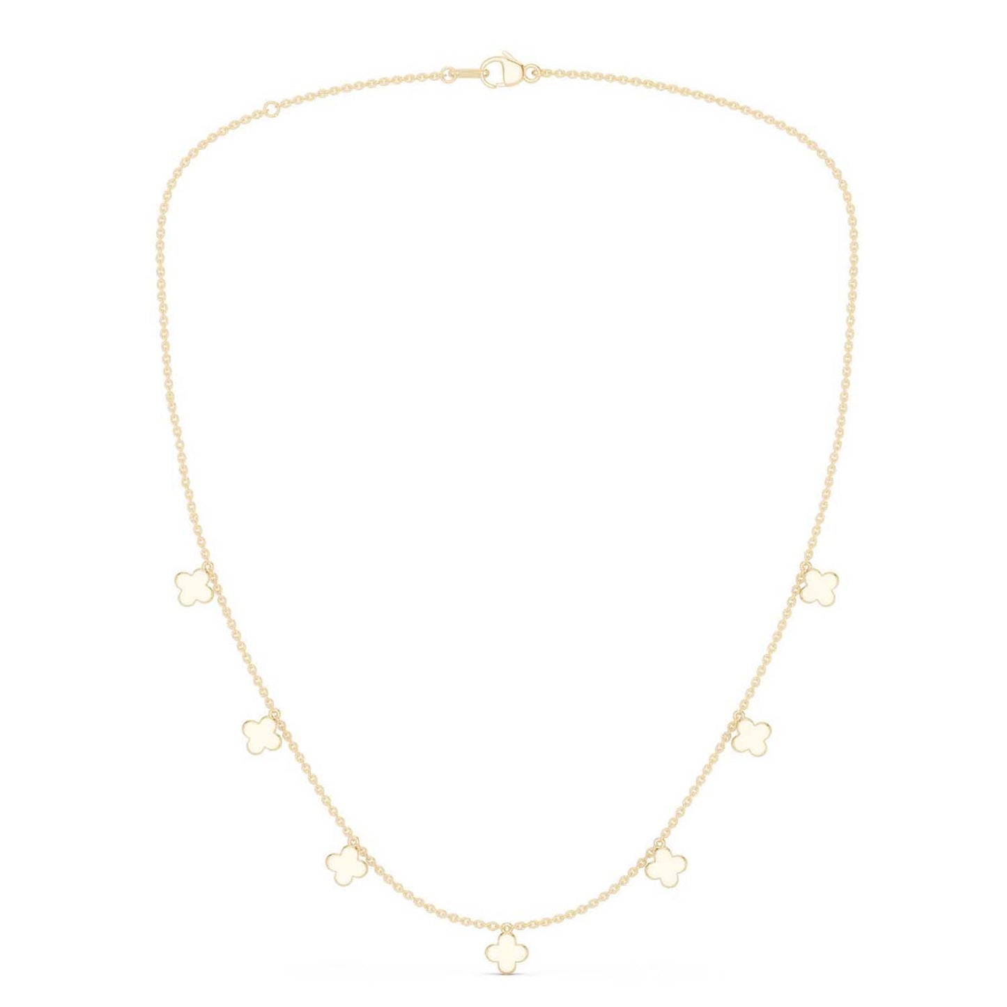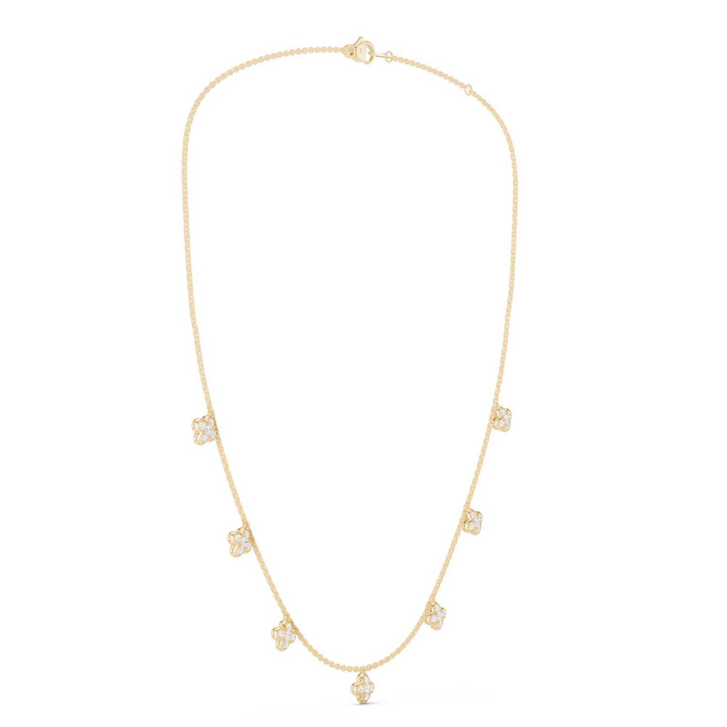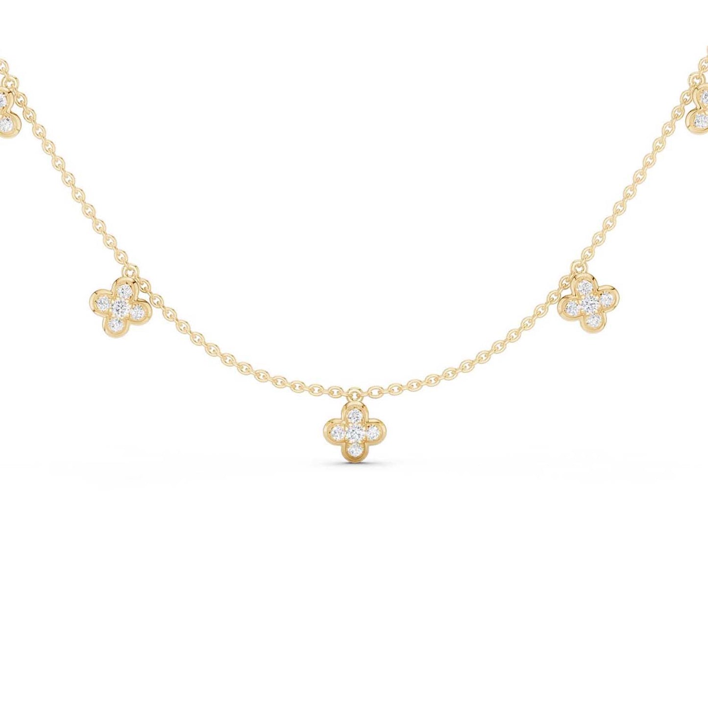 This La Fleur Stationed Choker Necklace boasts a symphony of delicate gold floral designs that encircle your neck with grace and beauty. Each floral station is thoughtfully created to mimic the enchanting intricacies of real flowers. This real diamond choker necklace exudes confidence, making it the perfect choice for special occasions.