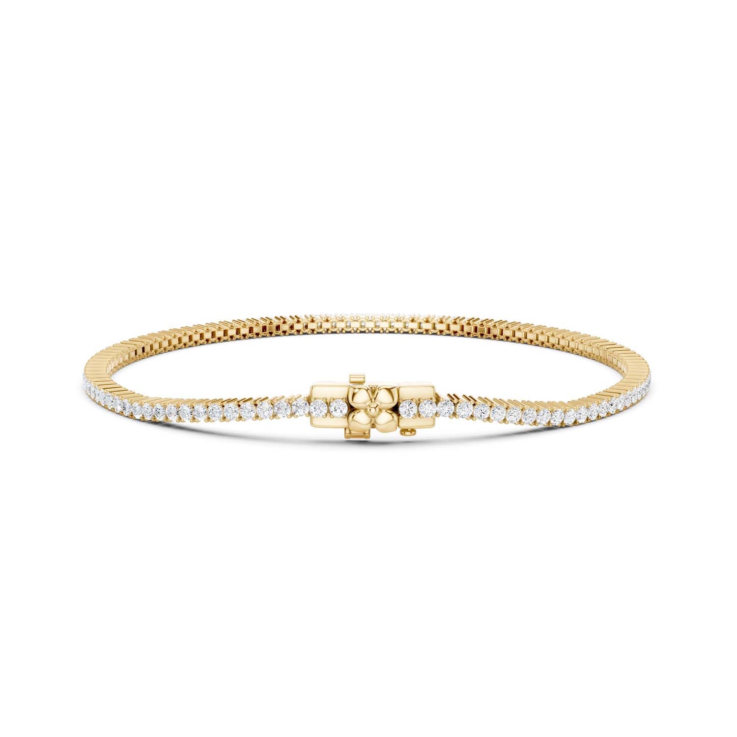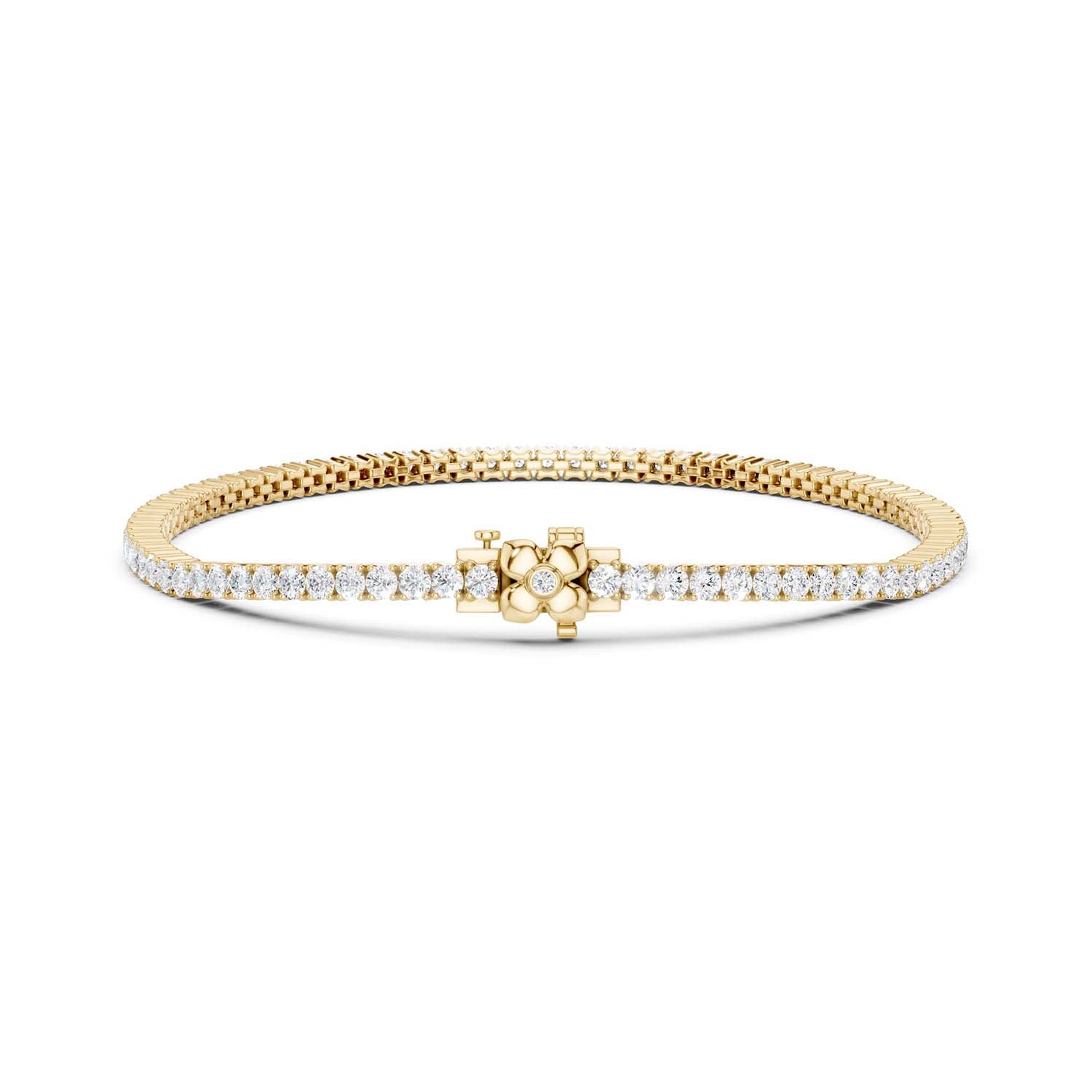 This La Fleur Tennis Bracelet is designed with delicate links adorned with sparkling round-cut diamonds and a dainty flower-shaped clasp. The diamonds catch the light from every angle, creating a breathtaking spectacle with the bracelet wrapped around the wrist. Wearing this diamond tennis bracelet is to experience the beauty and elegance of fine jewelry like never before.