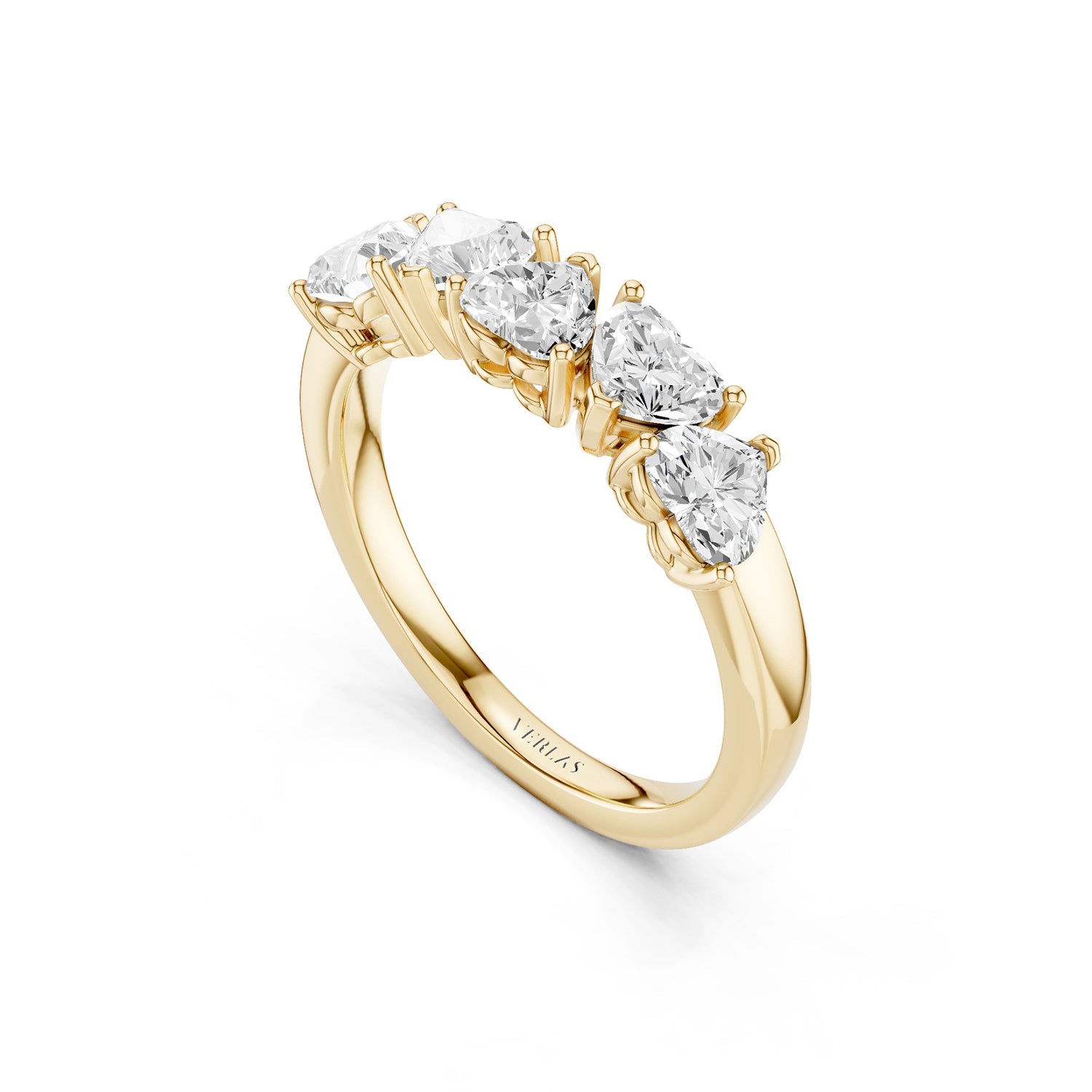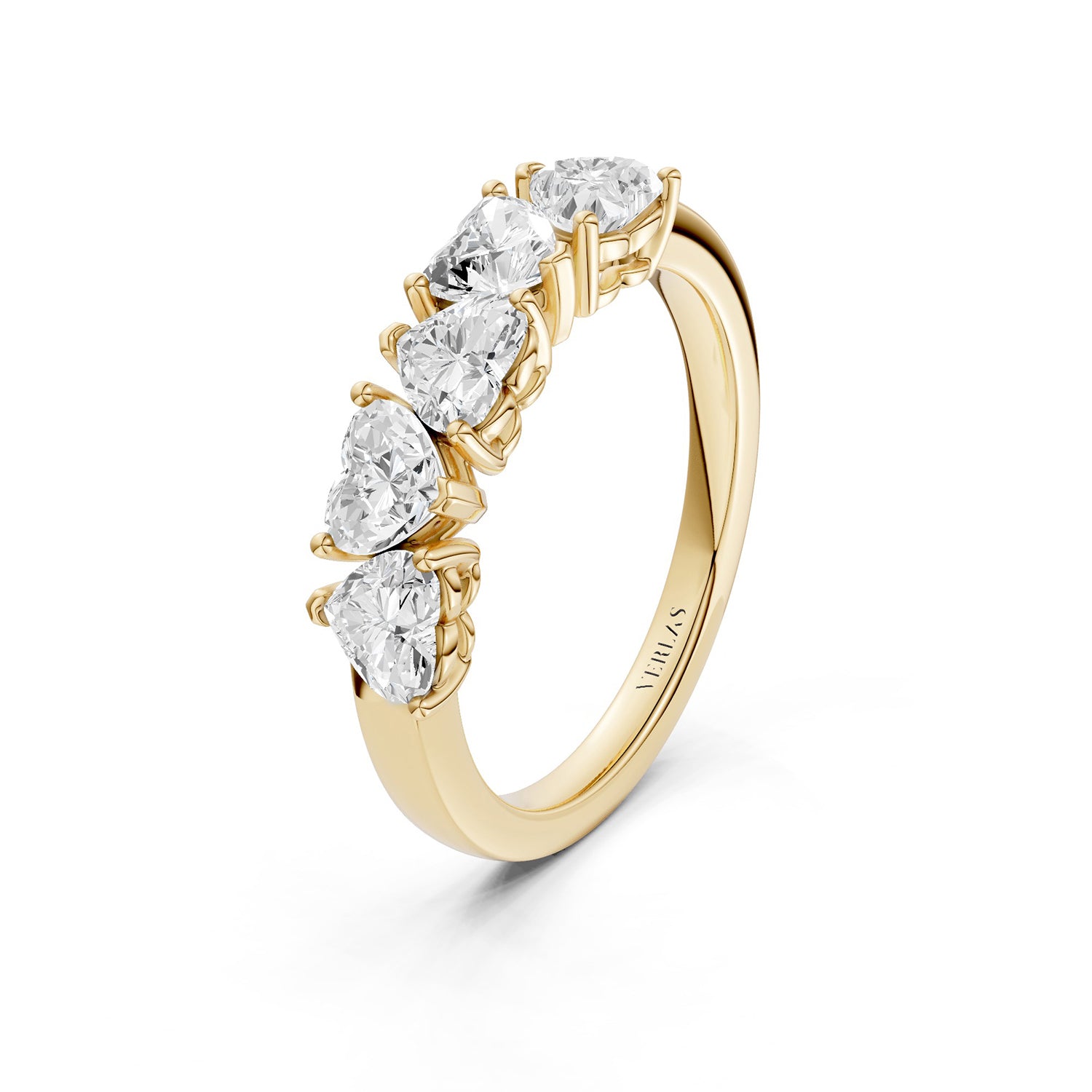 Celebrate love with the Lover's Symphony Heart Ring, a dazzling showcase of romance and artistry. Featuring five heart-shaped lab-grown diamonds, delicately set in a secure prong setting, this ring forms a continuous row of upside-down hearts, symbolizing a bond that’s beautifully intertwined. Crafted with impeccable precision, this design represents both modern elegance and timeless charm, making it a perfect choice for gifting, proposing, or as a unique wedding band. This diamond ring is more than jewelry—it's a heartfelt expression of love. Whether marking a milestone or making an everyday moment extraordinary, the heart-shaped diamond ring ensures your emotions shine brilliantly.