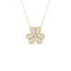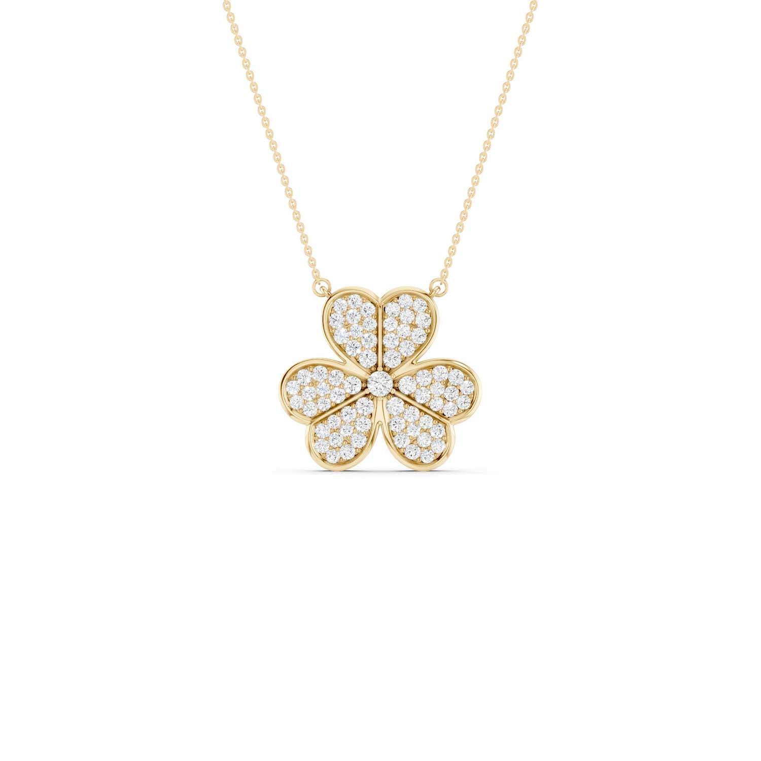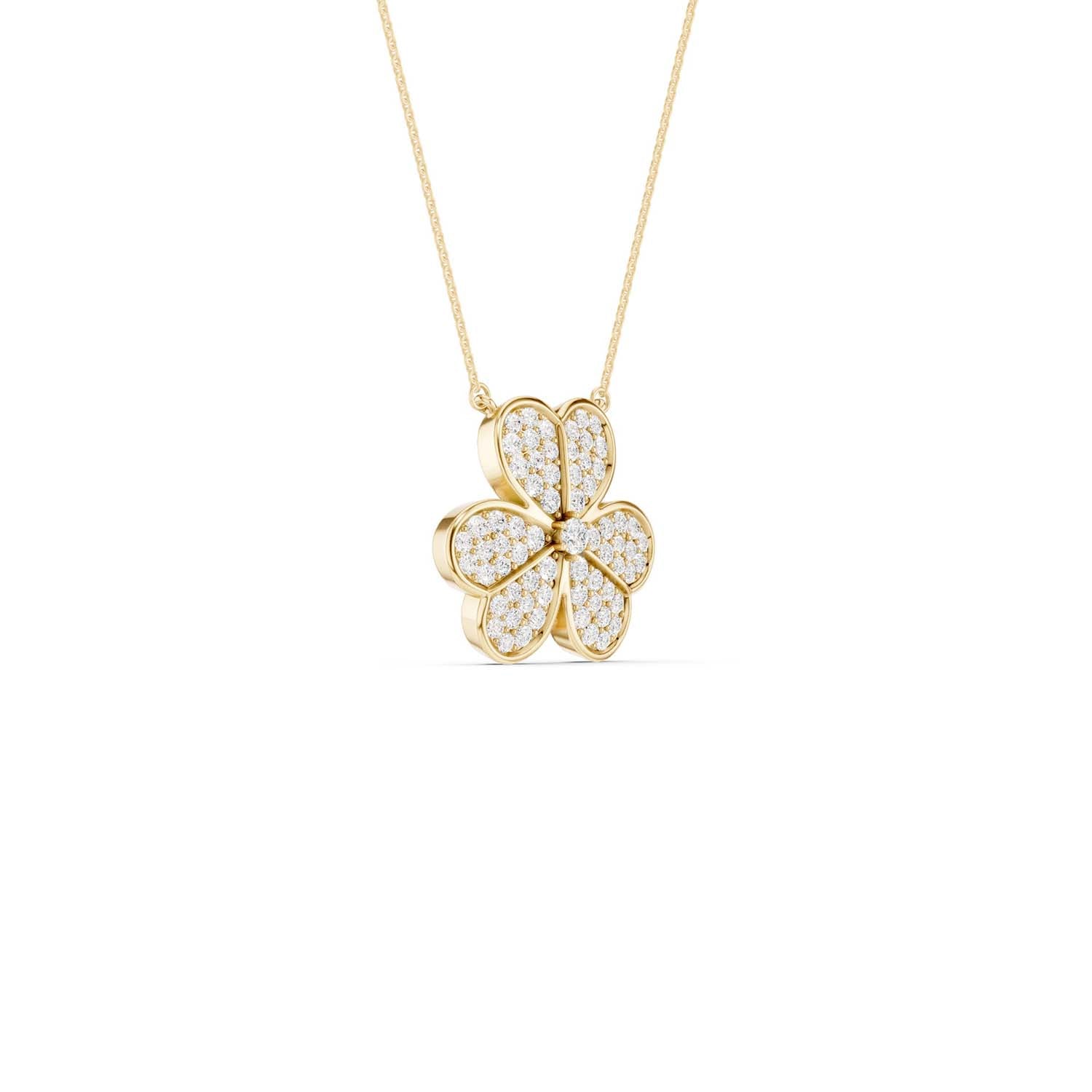 This Lucky Necklace showcases a floral motif with each petal embellished in diamond accents that capture the timeless beauty of blossoms. The floral diamond necklace design symbolizes luck and prosperity, making it a thoughtful and cherished gift.