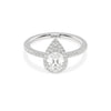 This spectacular lab-grown engagement ring features a dewdrop-shaped diamond that is surrounded by a halo of petite diamonds. Crafted with precision, this glamorous setting magnifies the brilliance of your pear-cut lab diamond ring from every angle.