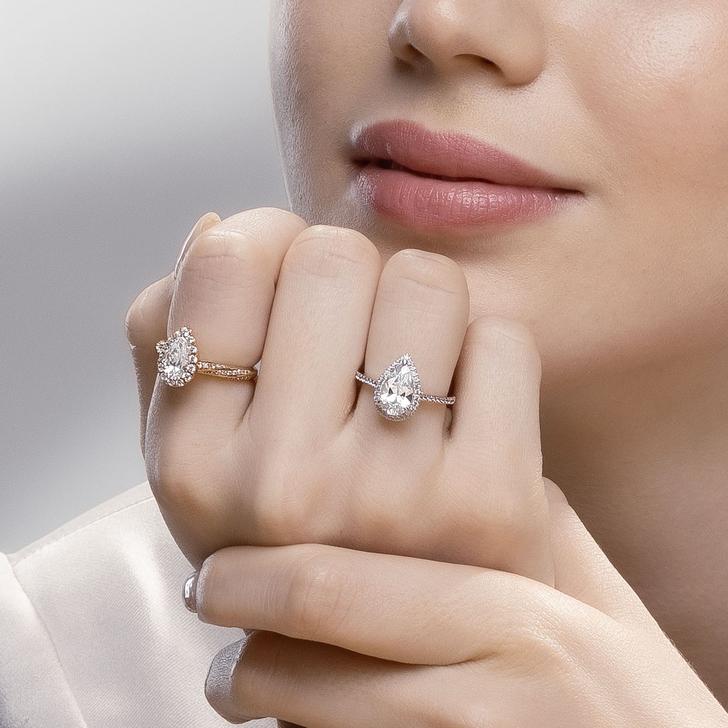 Read MoreThis spectacular lab-grown engagement ring features a dewdrop-shaped diamond that is surrounded by a halo of petite diamonds. Crafted with precision, this glamorous setting magnifies the brilliance of your pear-cut lab diamond ring from every angle.