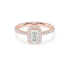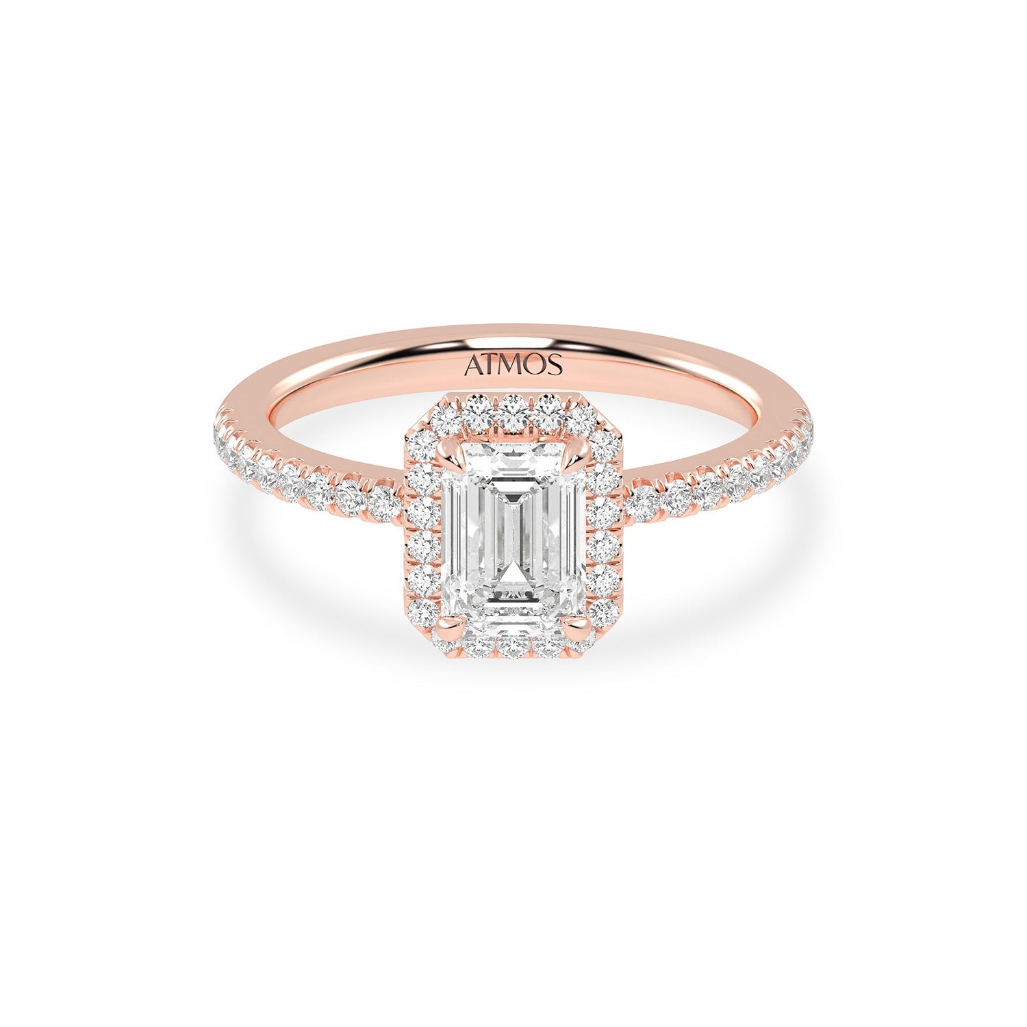 This lab-grown diamond halo ring is the epitome of vintage-inspired glamour. The classic emerald-cut center is enhanced by hand-cut facets and beautifully adorned with a halo of petite shimmering diamonds for undeniable radiance.