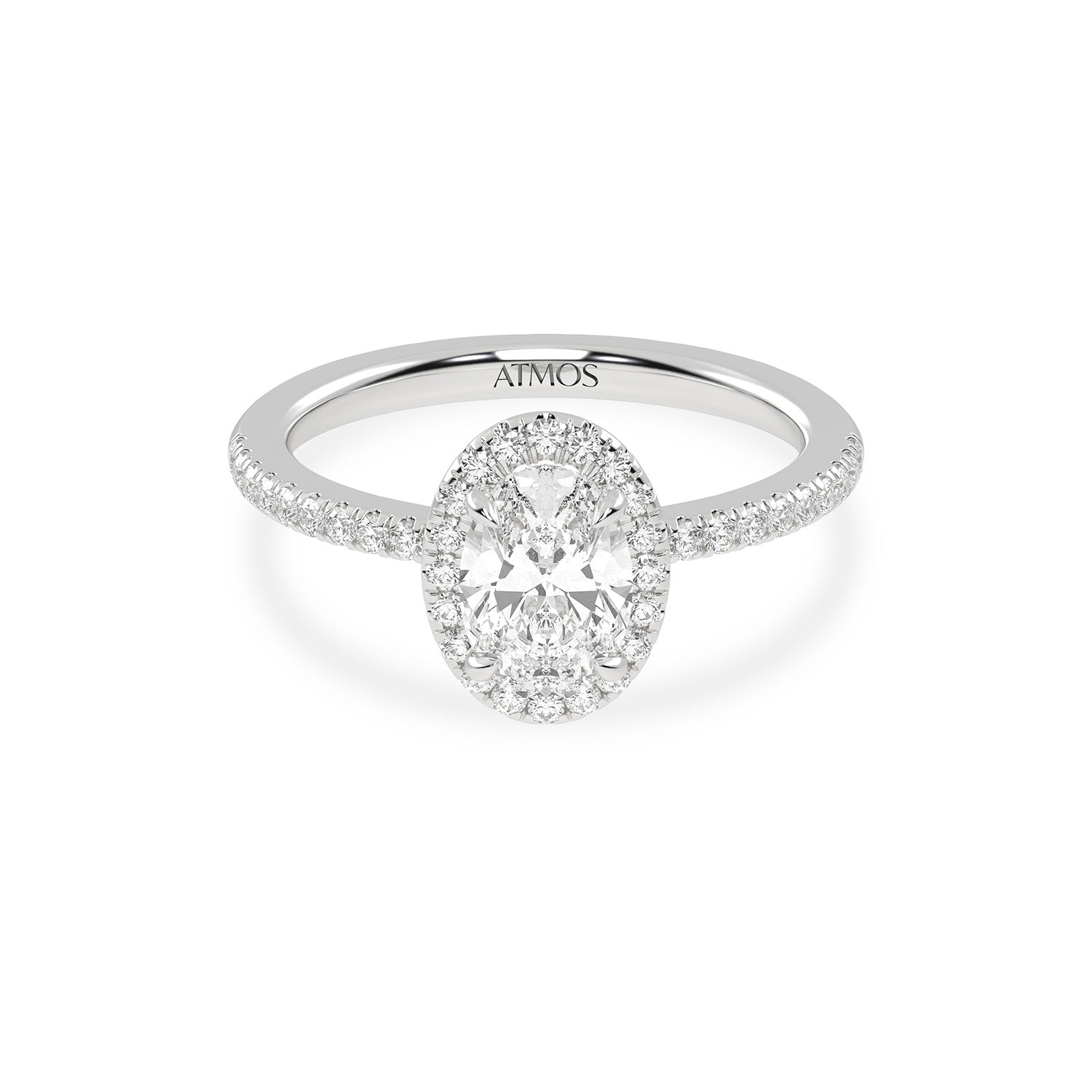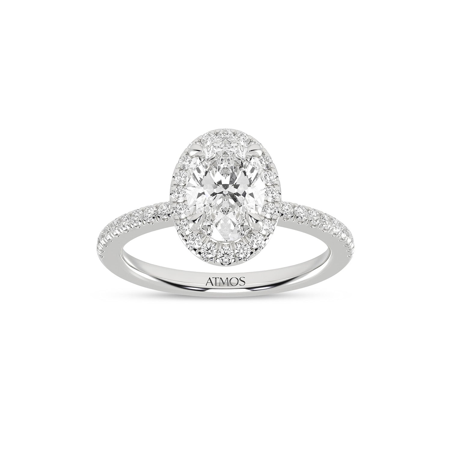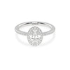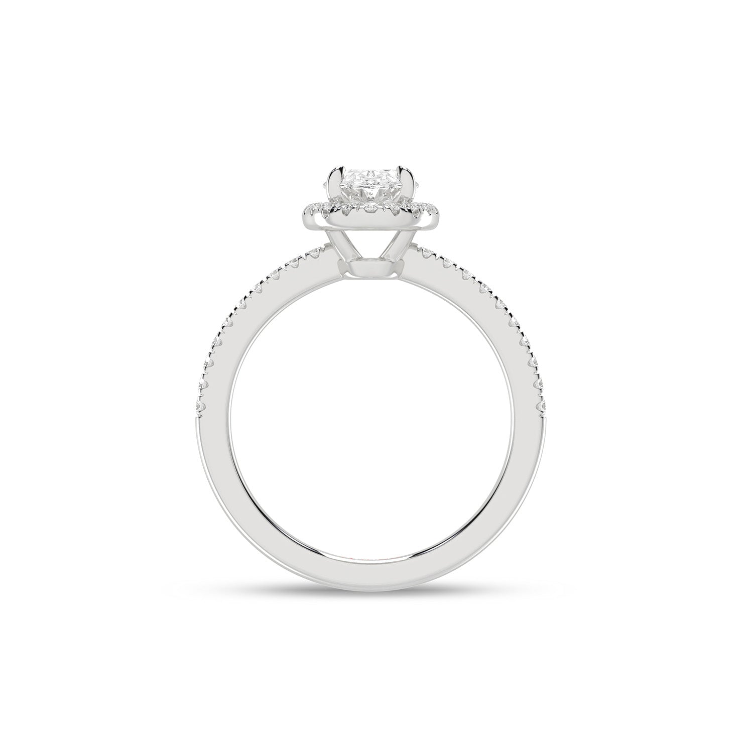 Modern and elegant, this subtle design ring features a brilliant-cut ellipse diamond surrounded by a halo of petite lab-grown diamonds. This lab-grown engagement ring is a beautiful piece featuring round diamonds on the band that adds optimum brilliance to your hand.