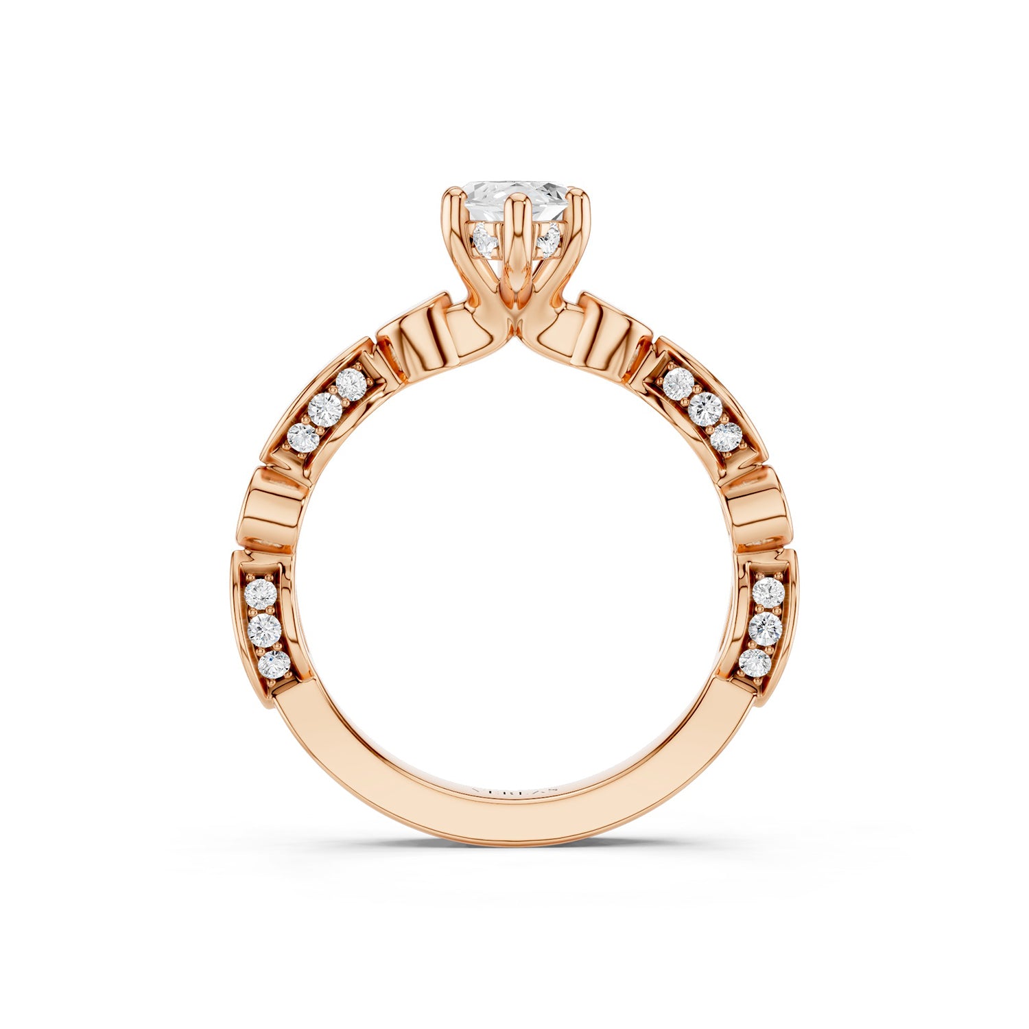 This marquise-cut lab-grown diamond ring features a hidden halo for extra radiance. The band is crafted with alternating marquise and round gold motifs, some polished and others diamond-set, creating a striking blend of texture and sparkle. Hid. . . Read More