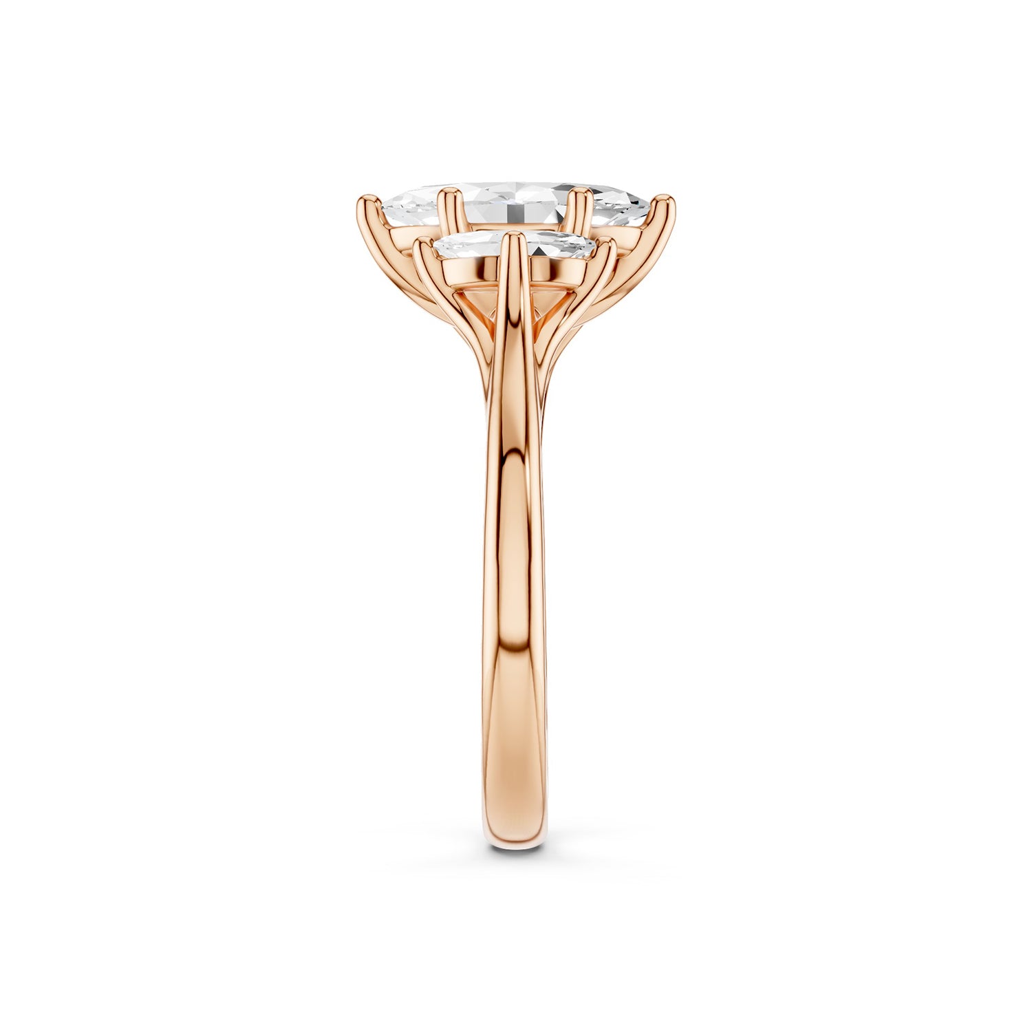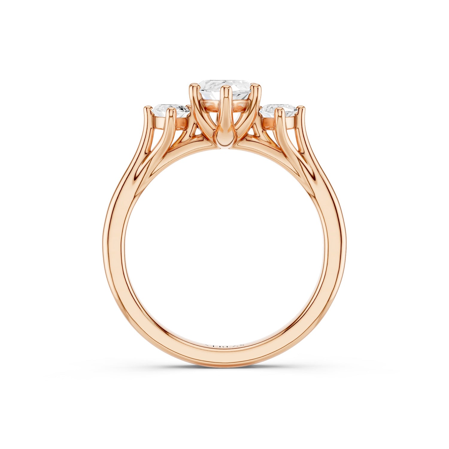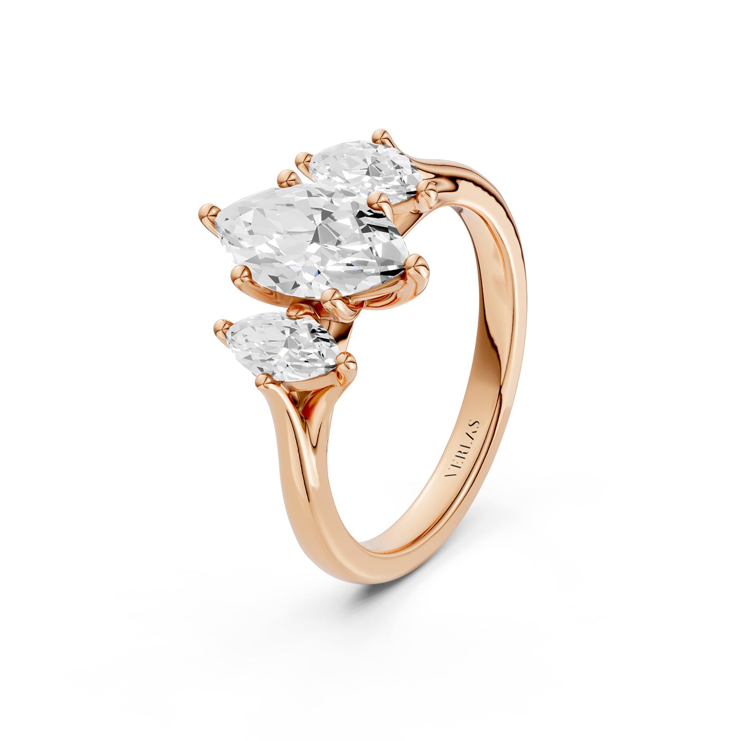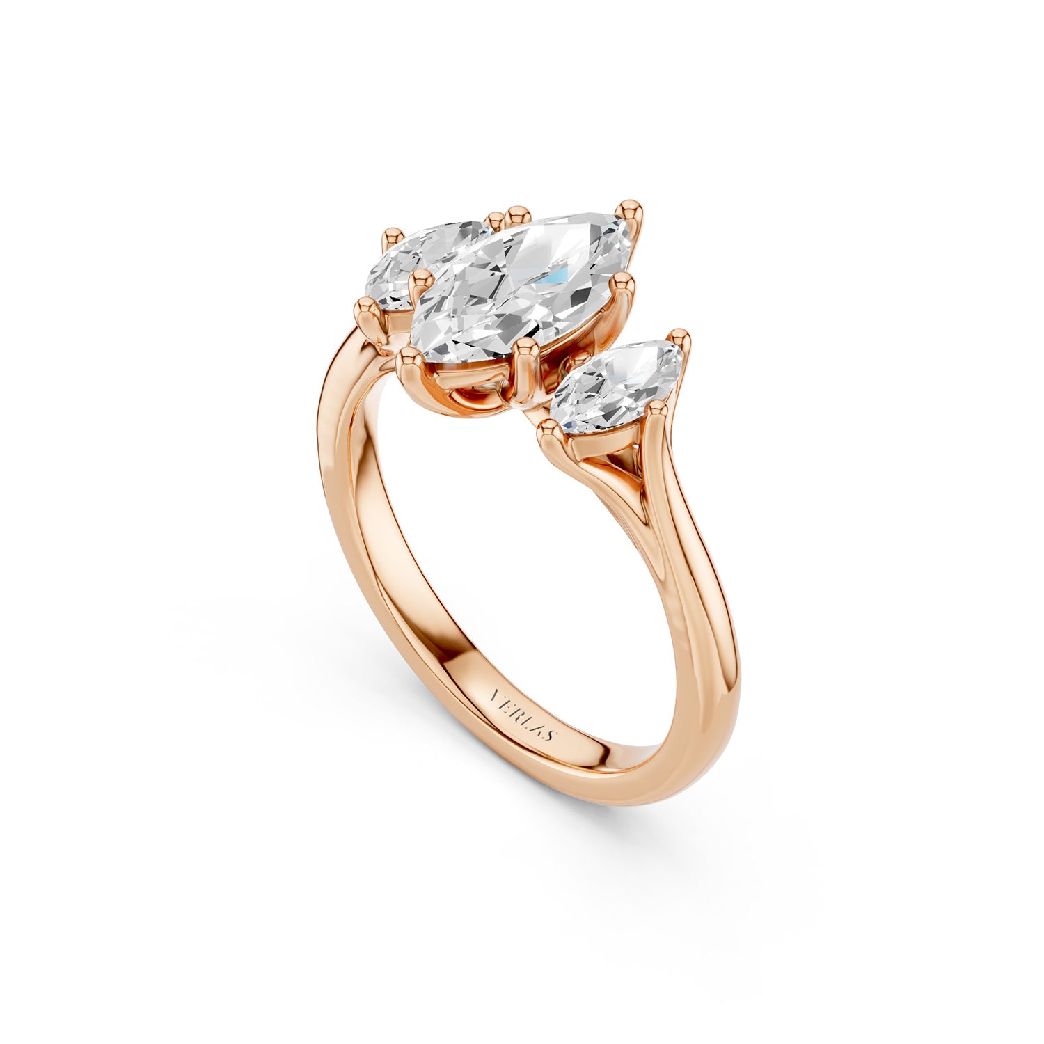 Bold yet graceful, this lab-grown 3-stone diamond ring features a luminous marquise-cut center diamond embraced by two smaller marquise side diamonds. Set in a secure prong setting, the Trinity design symbolizes vows of past, present, and future — a timeless ode to everlasting love.
