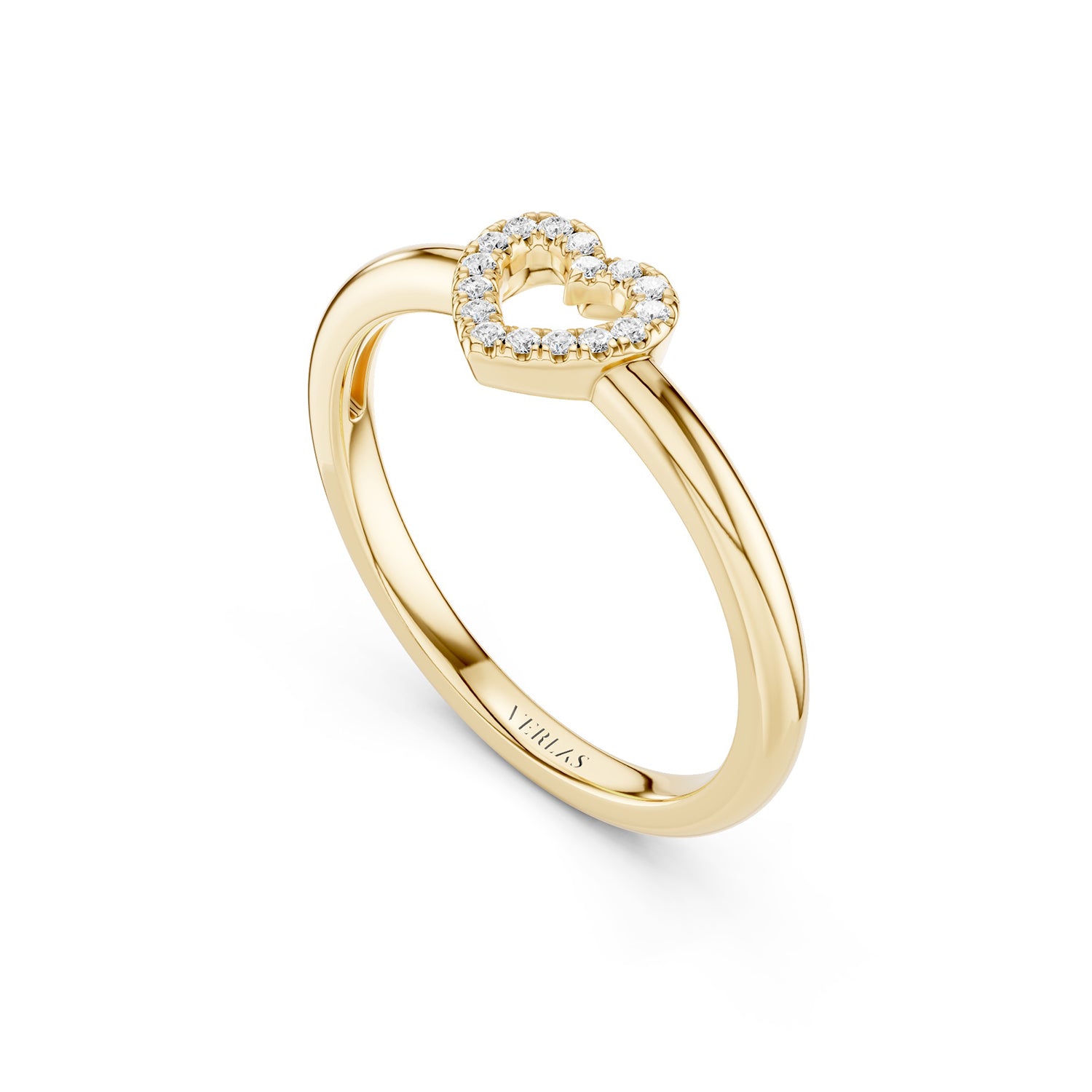 Elevate your ring game with our Mini-Heart Silhouette Ring, a tiny treasure that embodies grace and charm. This exquisite diamond ring blends classic design with contemporary allure, making it the perfect addition to your stackable ring collection. Its dainty design ensures a comfortable fit and allows for effortlessly stacking diamond rings, making it a versatile addition