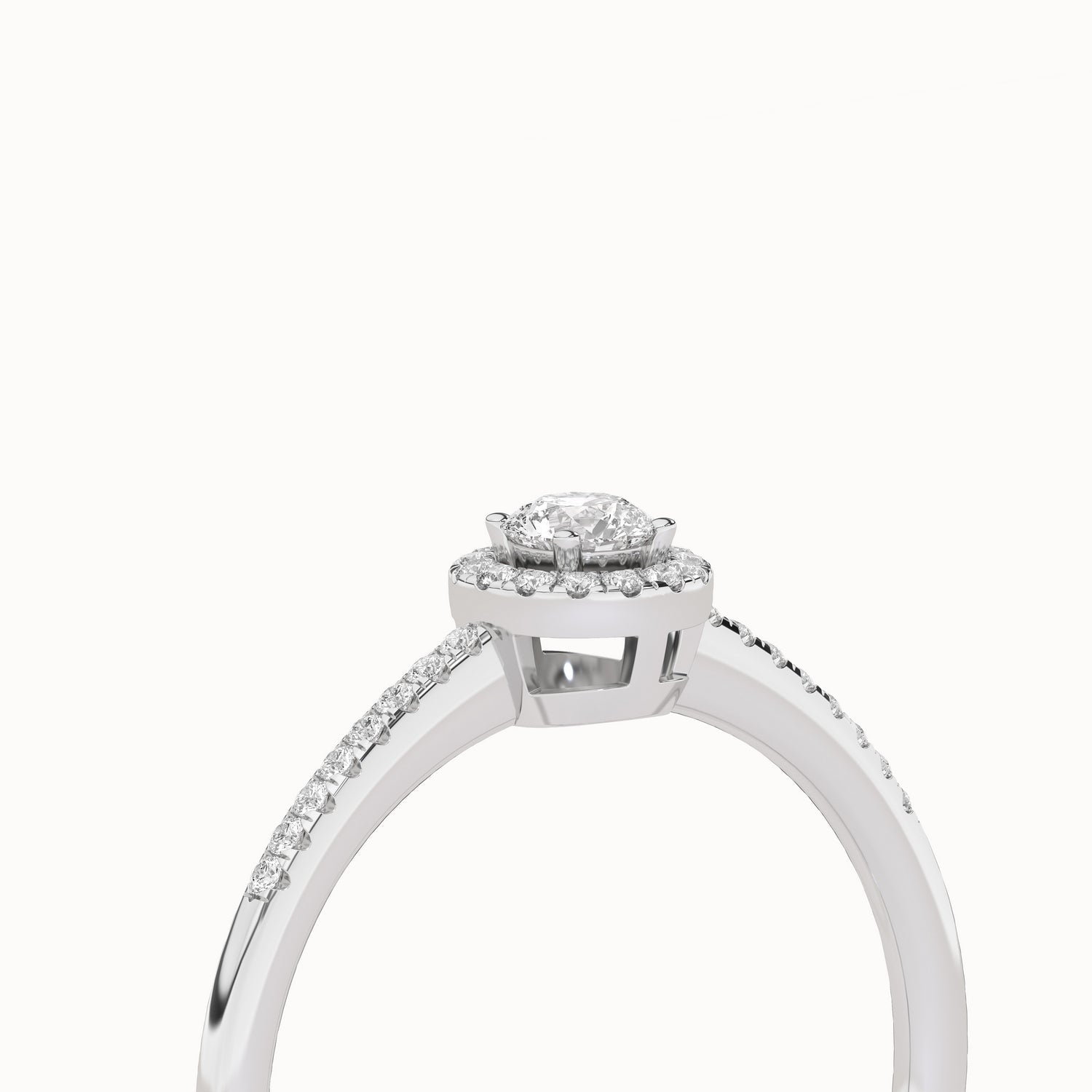 At the core of the Signature Round Halo Ring, a brilliant round diamond takes center stage embraced by a delicate halo of smaller diamonds. The round diamond represents unity and eternity, while the halo setting signifies protection and everlasting love. It epitomizes timeless elegance, making it the quintessential choice for a halo diamond engagement ring.