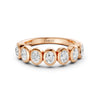 Blending contemporary design with classic appeal, the Bezel-Set Half-Eternity Diamond Band features ethereal diamonds securely encased in smooth bezels. This refined design balances durability with style, a versatile option for everyday elegance or celebratory occasions. Explore the entire range here