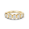 Blending contemporary design with classic appeal, the Bezel-Set Half-Eternity Diamond Band features ethereal diamonds securely encased in smooth bezels. This refined design balances durability with style, a versatile option for everyday elegance or celebratory occasions. Explore the entire range here