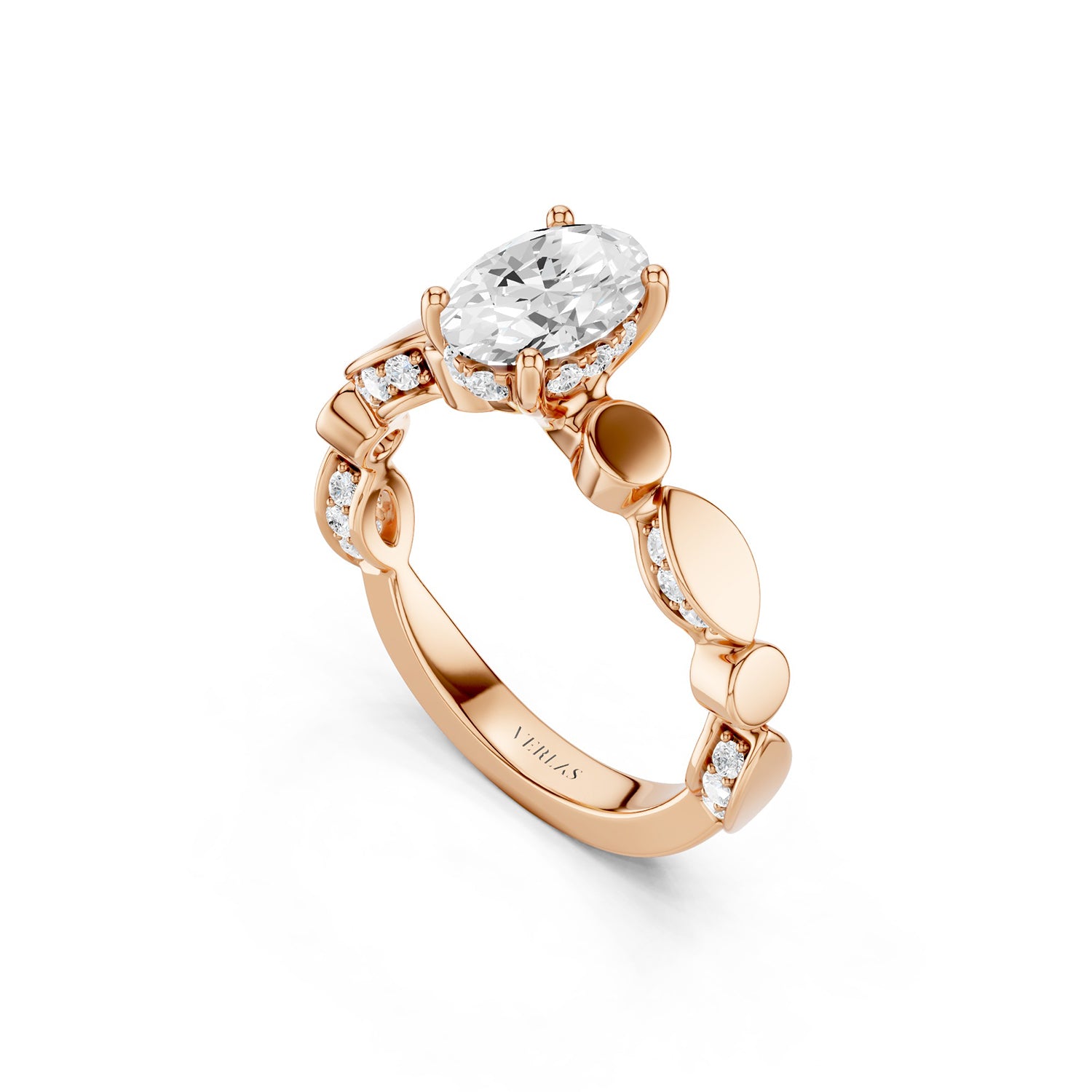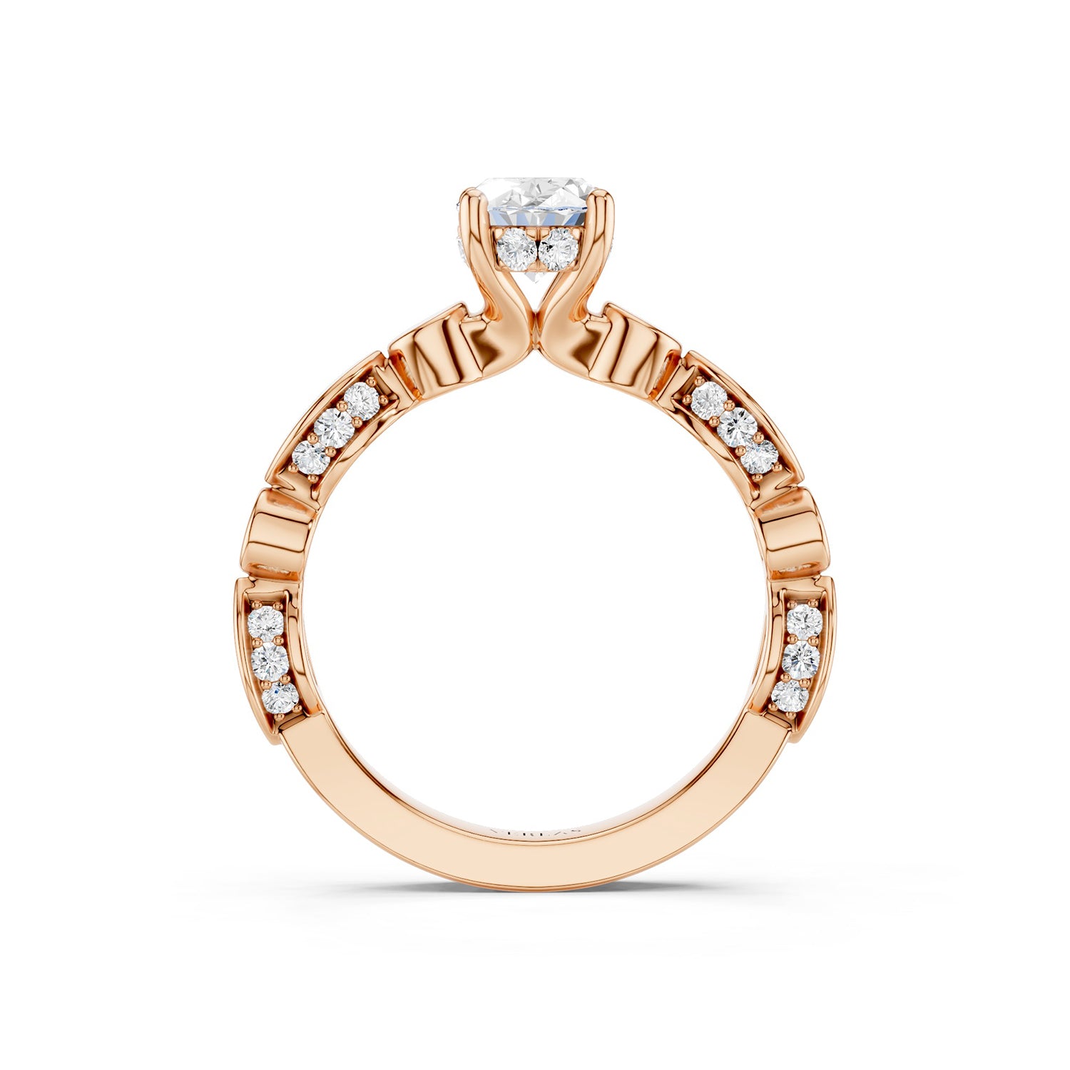 This oval-cut lab-grown diamond ring is a modern classic with a hidden halo for extra sparkle. The band features alternating marquise and round motifs in polished gold, some set with accent diamonds for added dimension. With hidden diamond deta. . . Read More