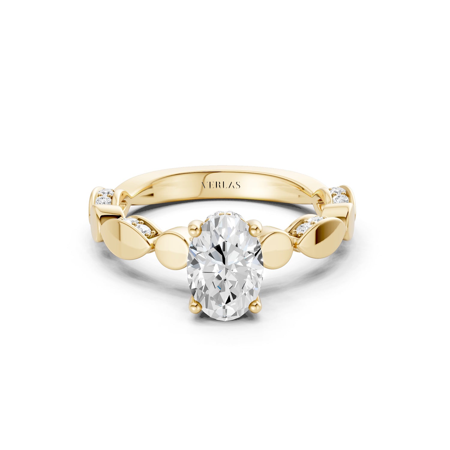 This oval-cut lab-grown diamond ring is a modern classic with a hidden halo for extra sparkle. The band features alternating marquise and round motifs in polished gold, some set with accent diamonds for added dimension. With hidden diamond deta. . . Read More