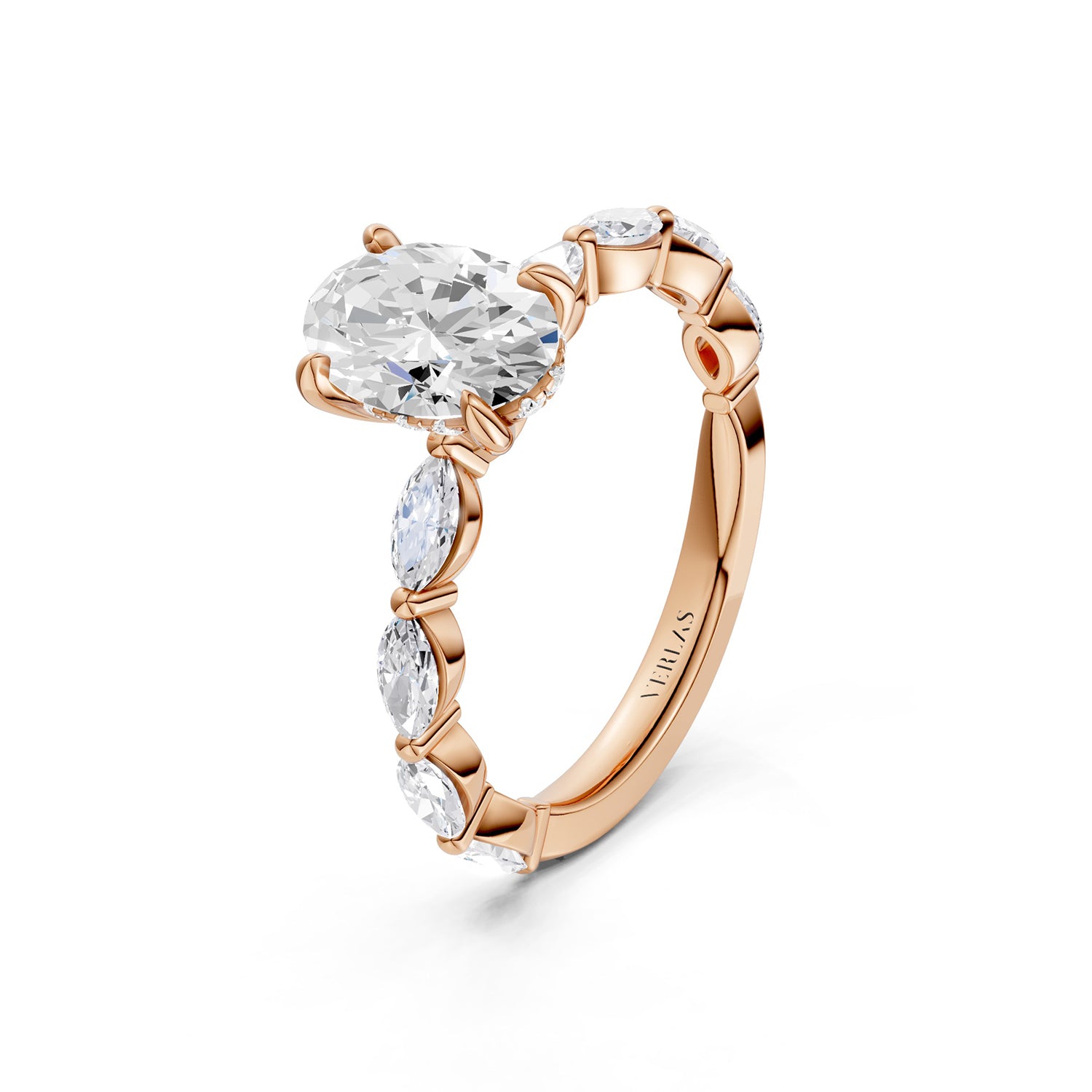 Clarity, one of the “Four C’s,” measures a diamond’s naturally-occuring imperfections (also called ‘inclusions’ or ‘flaws.’). Per gemological standards, diamond clarities are categorized as Flawless (F), Internally Flawless (IF), Very Very Slightly included (VVS), Very Slightly included (VS) and Included (I). Under 10x magnification, Flawless diamonds do not show any inclusions. Higher-clarity diamonds are rarer and pricier. However, many types of inclusions are invisible even to the naked eye, not to mention they give natural diamonds their unique character. Verlas strikes a balance between clarity and price point which is why we offer hand-cut VS and SI clarity diamonds certified by IGI. You can always contact Verlas Concierge for a different diamond clarity on your favorite Verlas designs.
