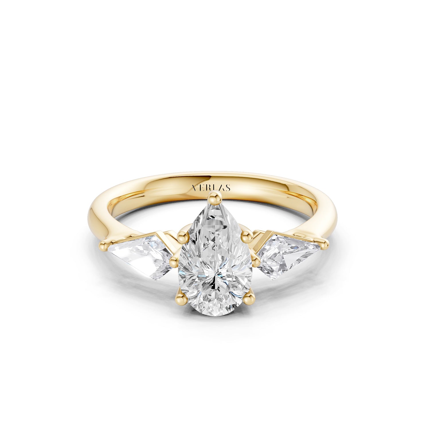 A modern take on timeless elegance, this lab-grown Pear-Kite Trinity Diamond Ring features a brilliant pear-cut center diamond framed by two kite-shaped side diamonds. Crafted in 14K gold, this three-stone design symbolizes love, balance, and f. . . Read More