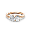 This lab-grown diamond ring captures the essence of your combined spirits into an extraordinary piece of jewelry. Featuring both pear and round diamonds in prong settings, this gold two stone ring is a memento of your shared experiences and your continued devotion.