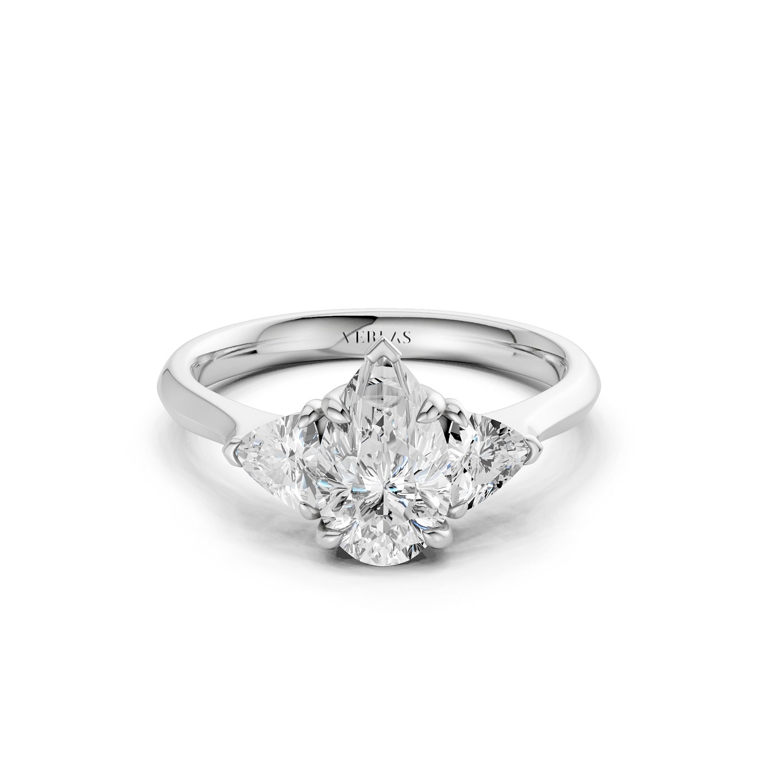 An iconic symbol of love and brilliance, this lab-grown 3-stone ring features a dazzling pear-cut center diamond framed by two radiant trillion-cut side diamonds. Set in a refined prong setting, the Trinity design embodies past, present, and future - a timeless ode to your story.