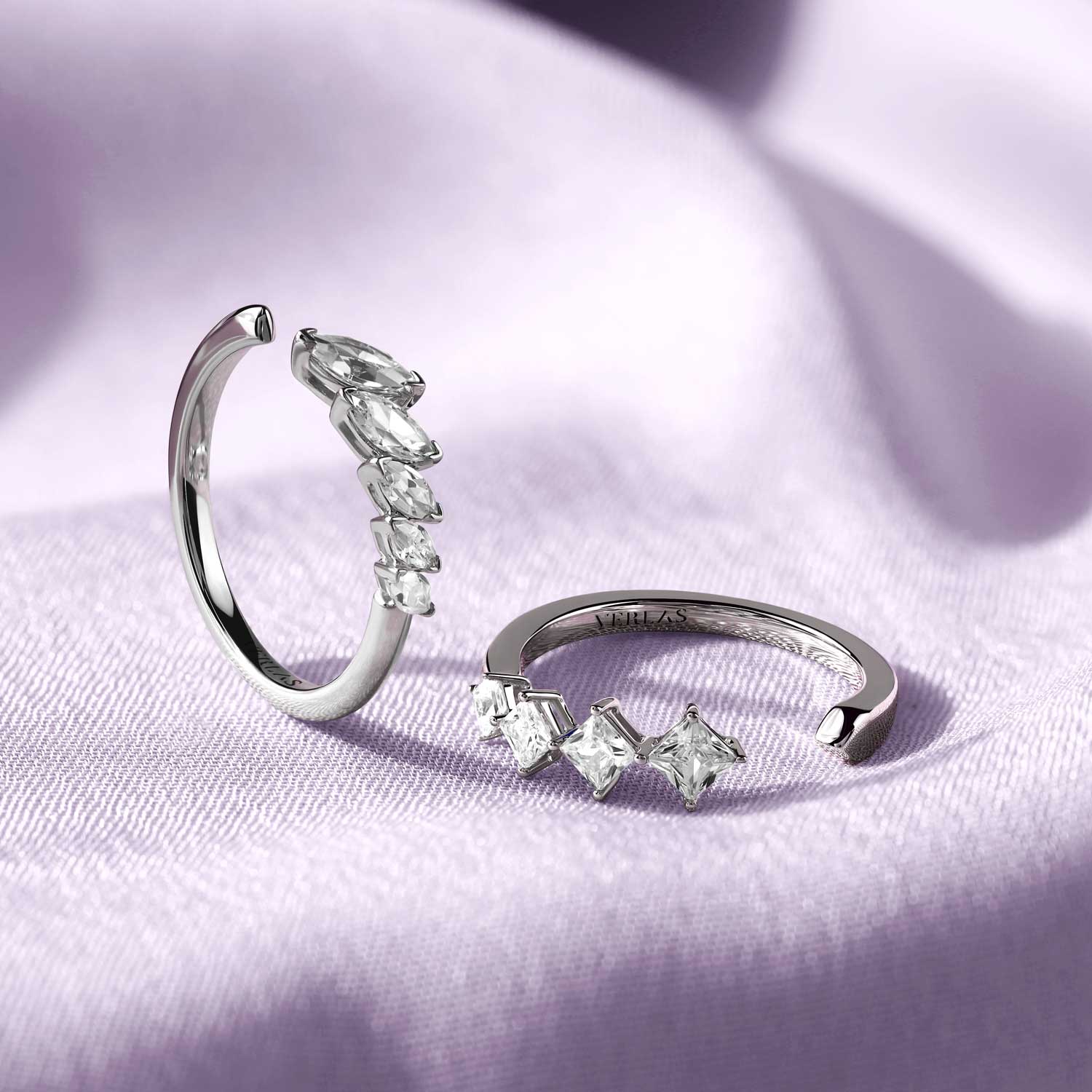 Clarity, one of the “Four C’s,” measures a diamond’s naturally-occuring imperfections (also called ‘inclusions’ or ‘flaws.’). Per gemological standards, diamond clarities are categorized as Flawless (F), Internally Flawless (IF), Very Very Slightly included (VVS), Very Slightly included (VS) and Included (I). Under 10x magnification, Flawless diamonds do not show any inclusions. Higher-clarity diamonds are rarer and pricier. However, many types of inclusions are invisible even to the naked eye, not to mention they give natural diamonds their unique character. Verlas strikes a balance between clarity and price point which is why we offer hand-cut VS and SI clarity diamonds certified by IGI. You can always contact Verlas Concierge for a different diamond clarity on your favorite Verlas designs.