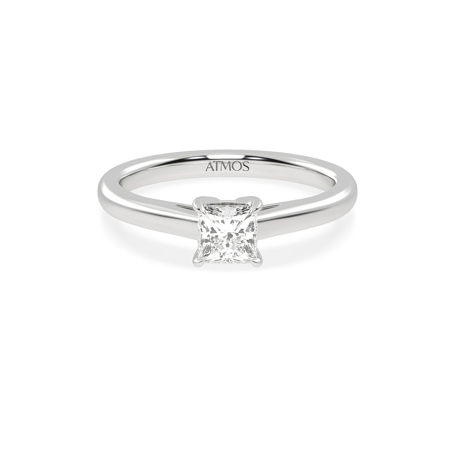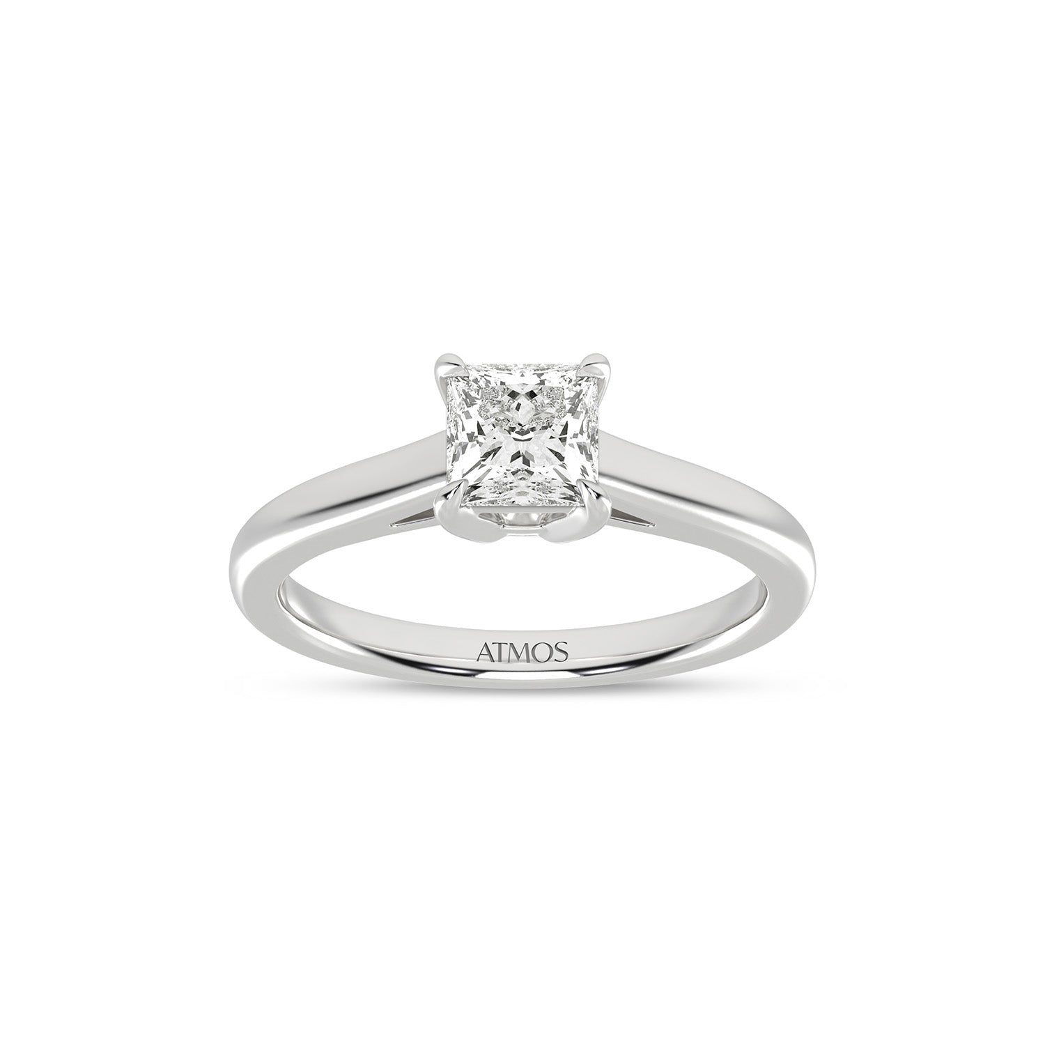 This classic ring features a lustrous band with a lab-created diamond solitaire. The design style of this piece allows wedding rings to sit perfectly flush against the band. Each Atmos ring handcrafted by master artisans is true work of art.