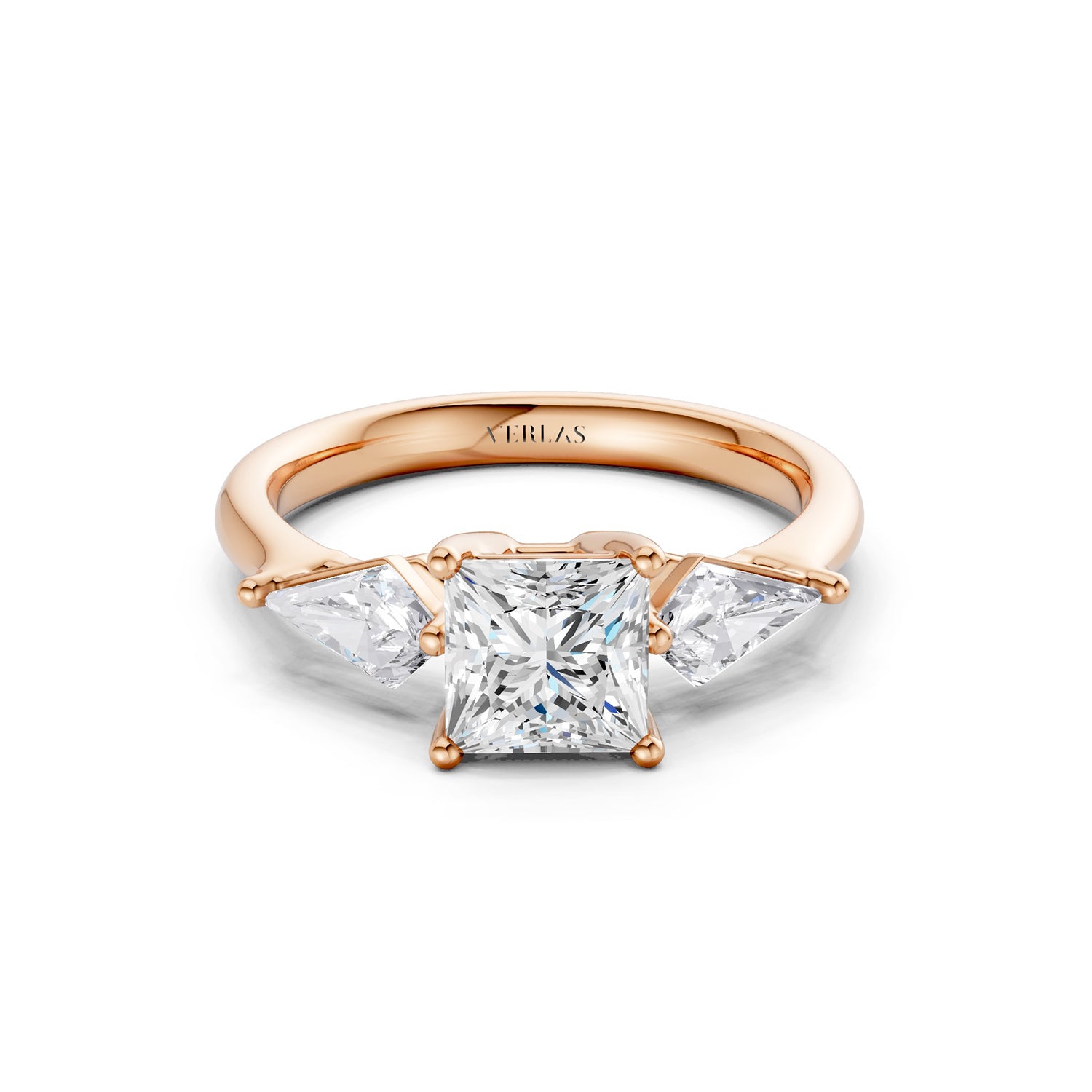 A bold twist on the three-stone classic, the Princess-Kite Trinity Diamond Ring features a striking princess-cut lab-grown diamond at its center, framed by two kite-shaped side diamonds. This modern yet timeless design celebrates love’s journey—past, present, and future.