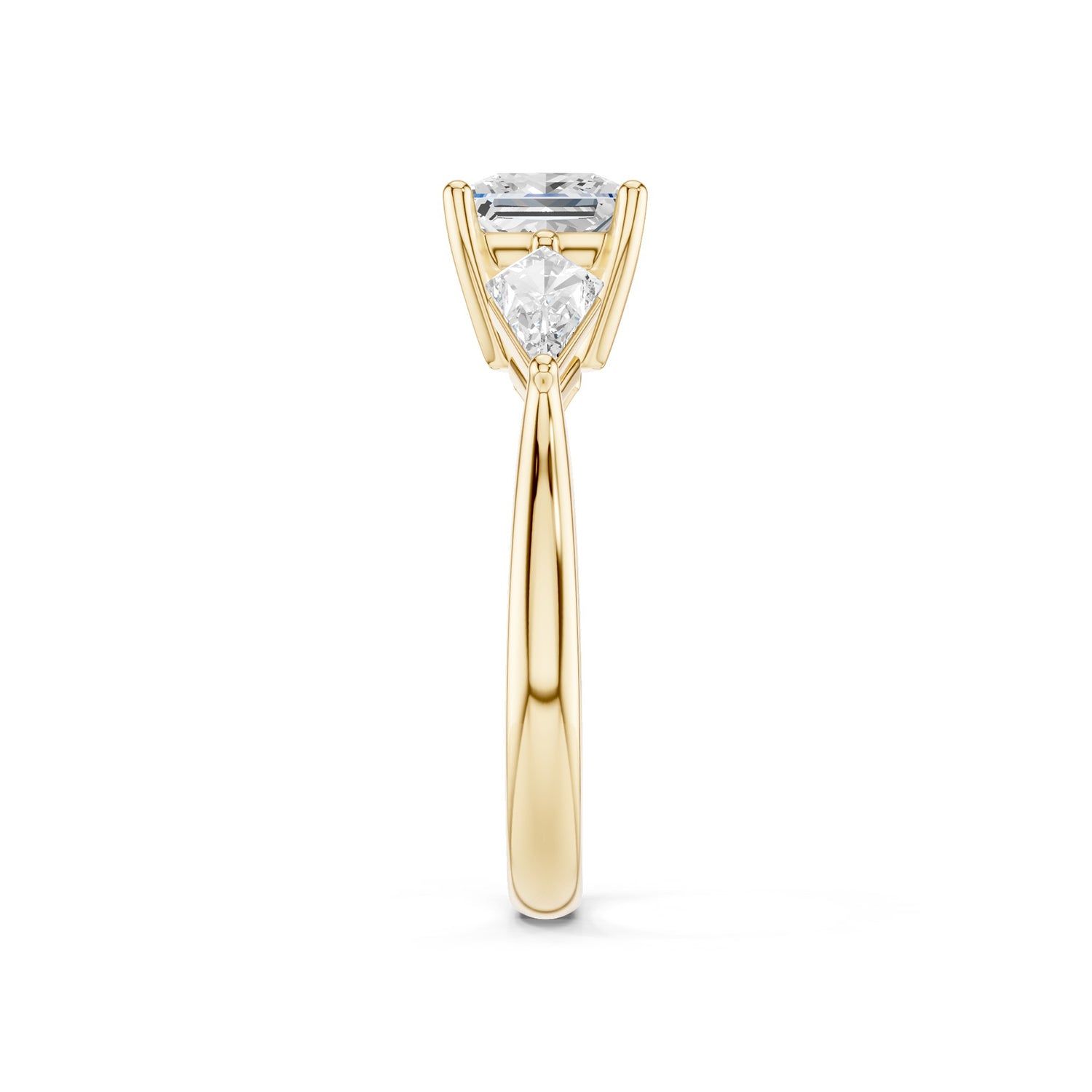 A bold twist on the three-stone classic, the Princess-Kite Trinity Diamond Ring features a striking princess-cut lab-grown diamond at its center, framed by two kite-shaped side diamonds. This modern yet timeless design celebrates love’s journey—past, present, and future.