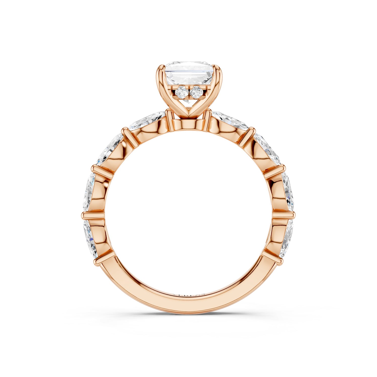 The Princess-Marquise Hidden Halo Diamond Ring showcases a dazzling princess-cut lab-grown diamond that radiates brilliance with its crisp geometry. Beneath, a secret halo sparkles quietly. Marquise-shaped diamonds line the polished gold band, . . . Read More