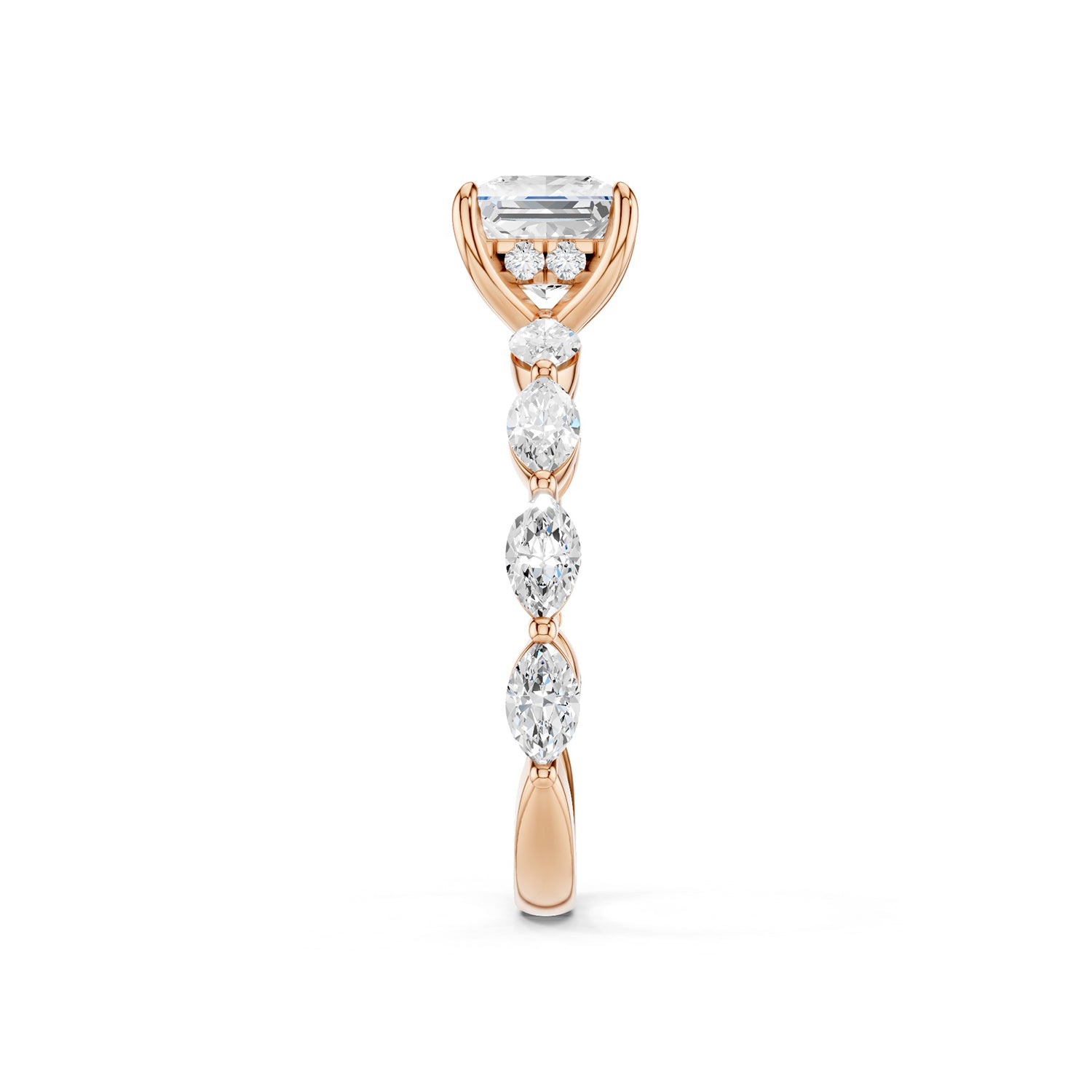 The Princess-Marquise Hidden Halo Diamond Ring showcases a dazzling princess-cut lab-grown diamond that radiates brilliance with its crisp geometry. Beneath, a secret halo sparkles quietly. Marquise-shaped diamonds line the polished gold band, adding organic curves that soften the bold center. Whether chosen for an engagement, anniversary, or a meaningful celebration, this ring is made to be admired from every angle.