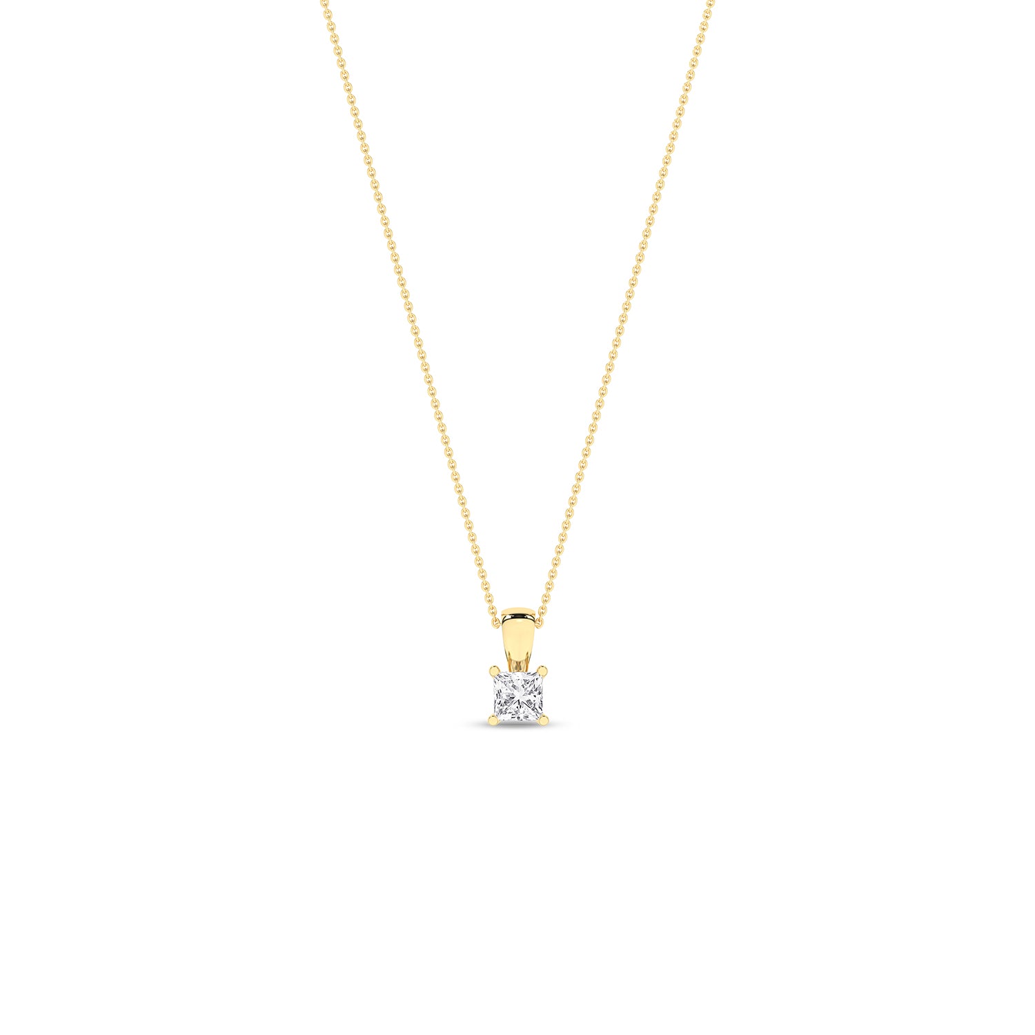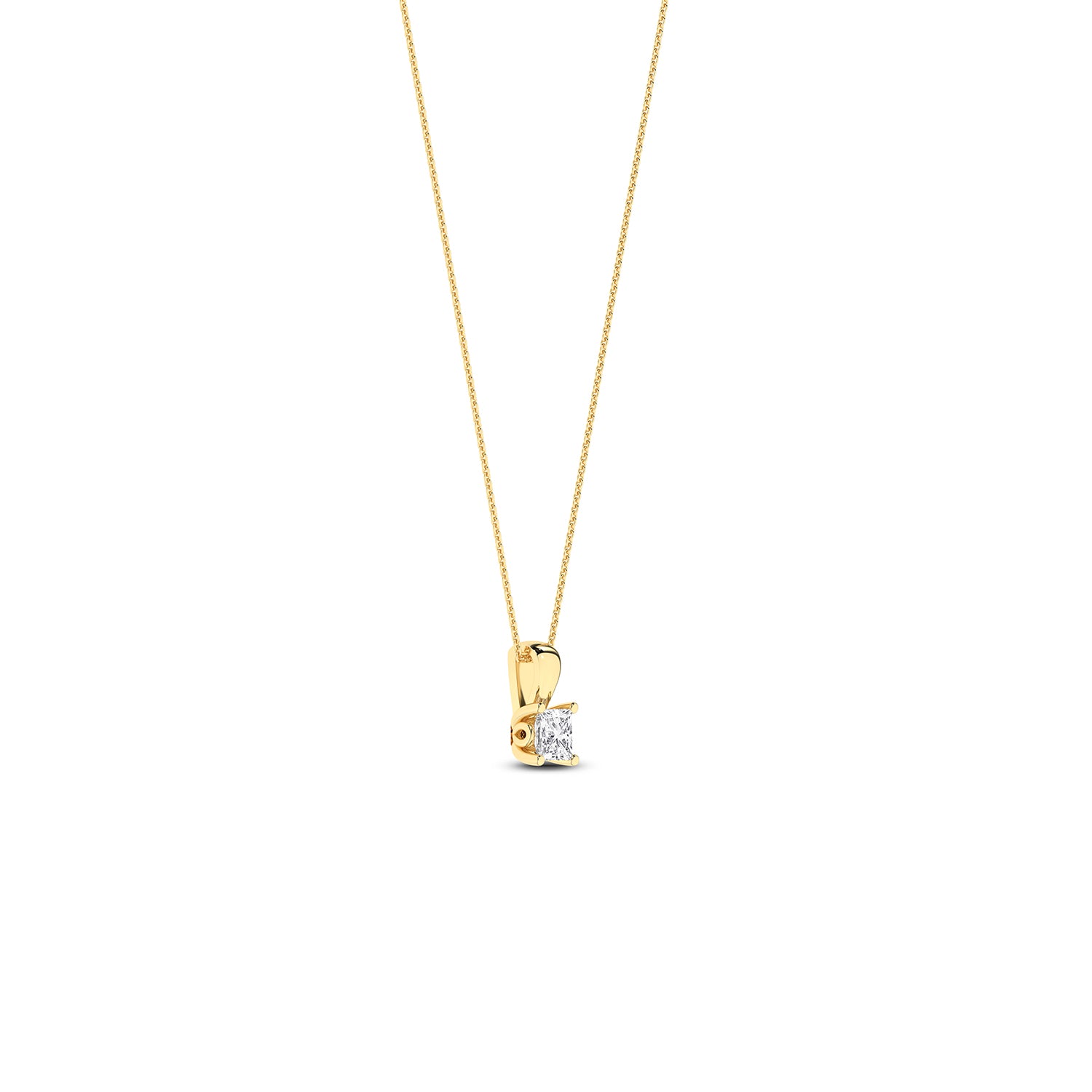 Featuring a scintillating princess-cut diamond in a prong setting, this impeccable Princess Necklace exemplifies a style statement. An ode to timeless classics, this princess cut diamond pendant necklace is perfect for any ensemble, be it your work wear or a party look.