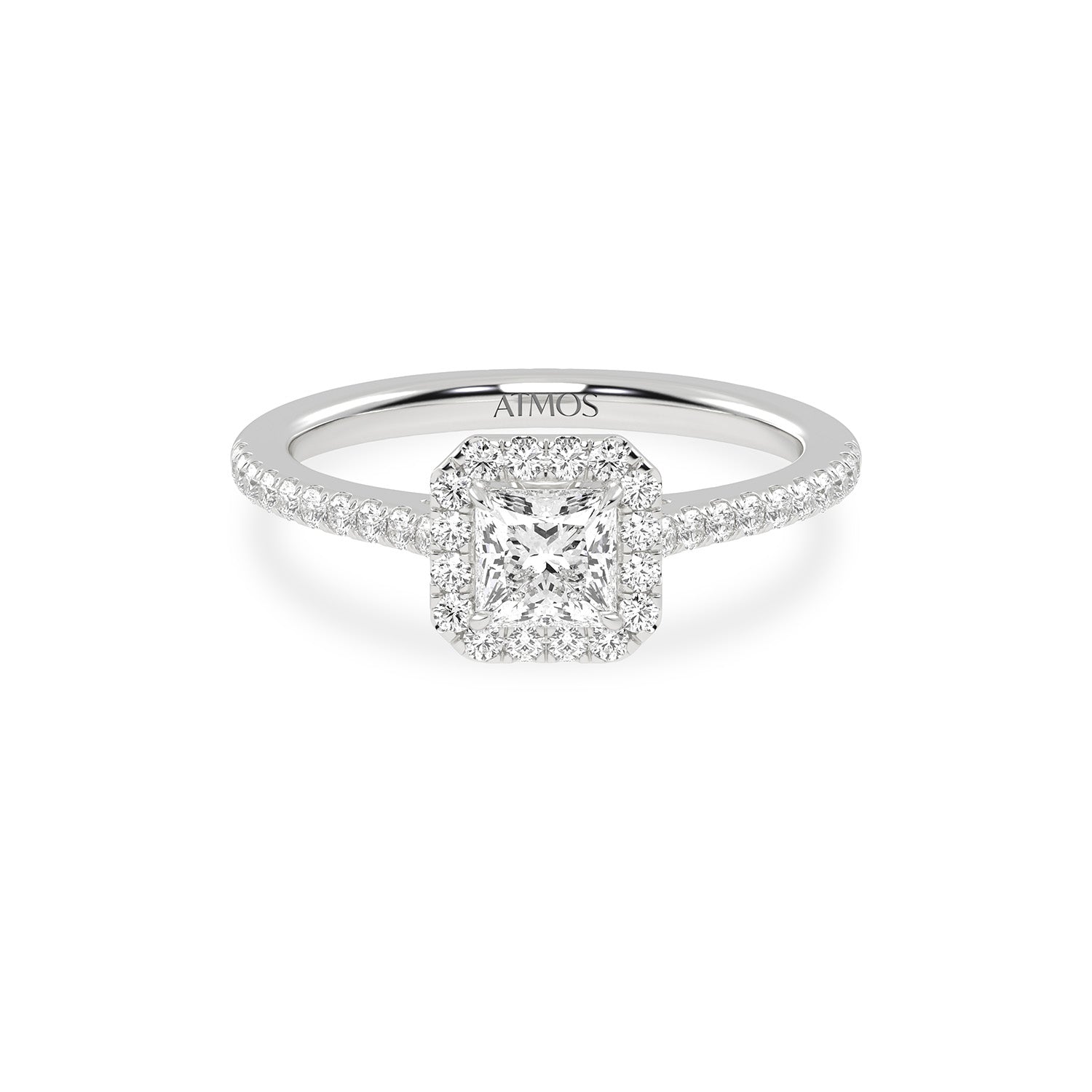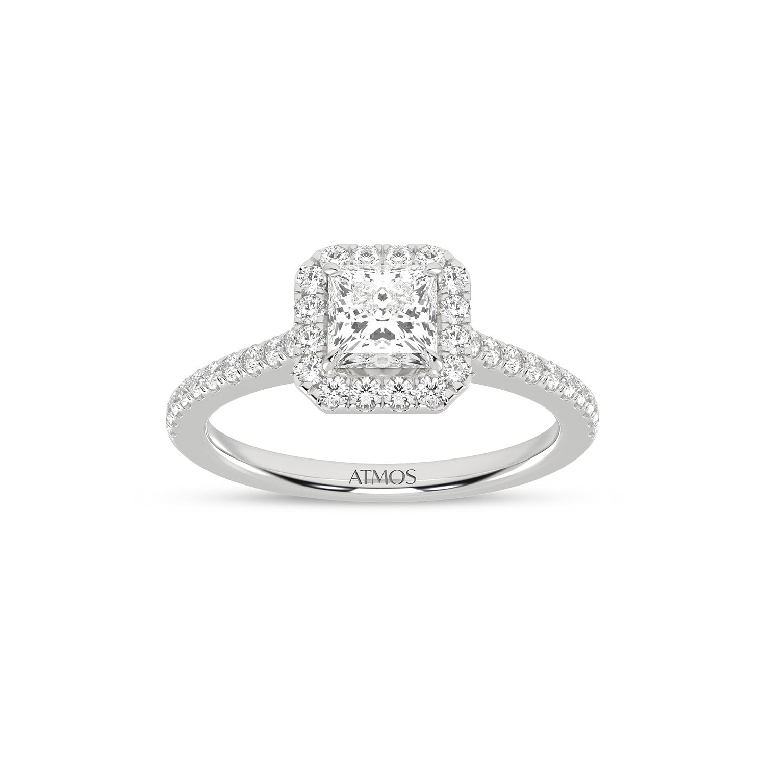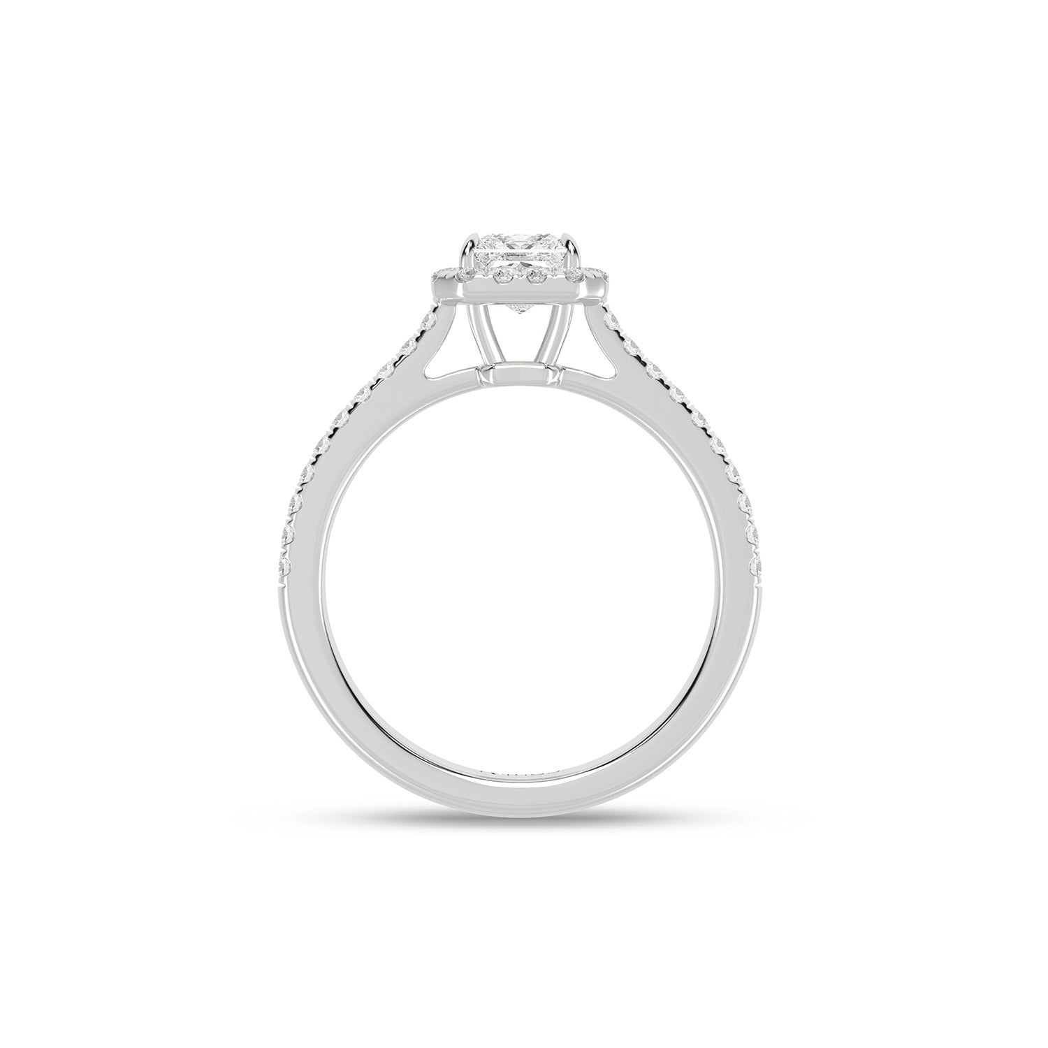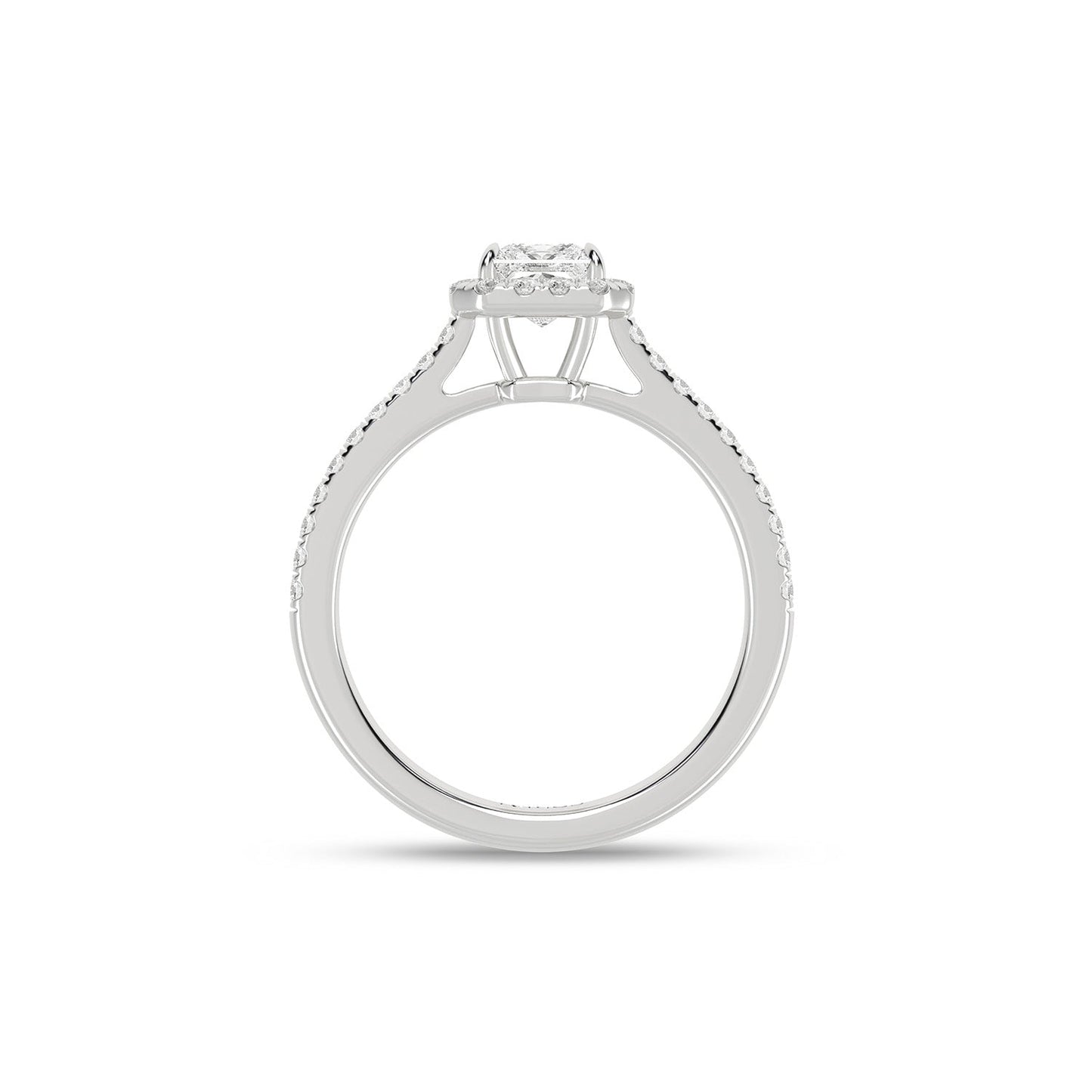 This princess-cut halo ring is the perfect mix of modern and vintage design, crafted to accent the beauty of brilliant round diamonds in a halo setting. Set in lustrous gold, the band is embellished in petite shimmering lab-grown diamonds radiating from every angle.