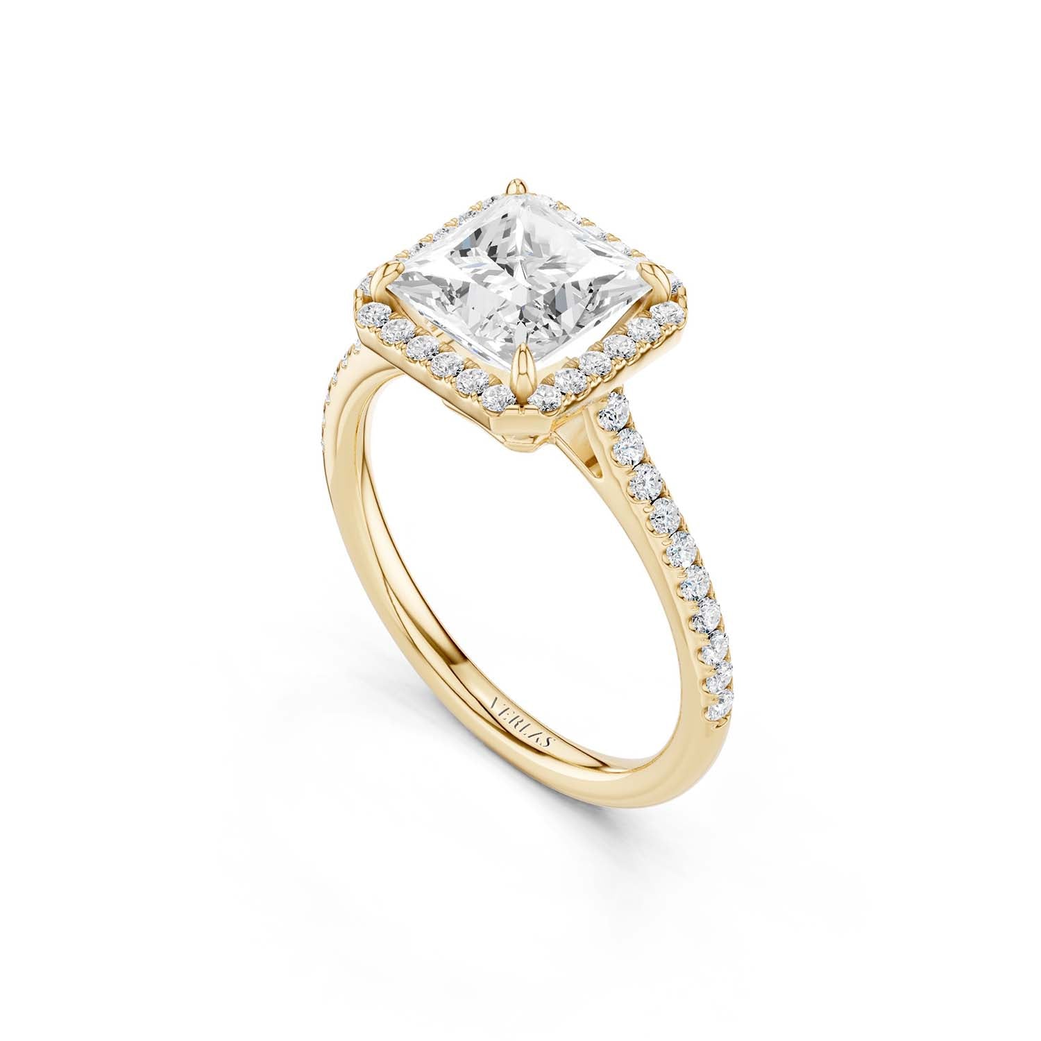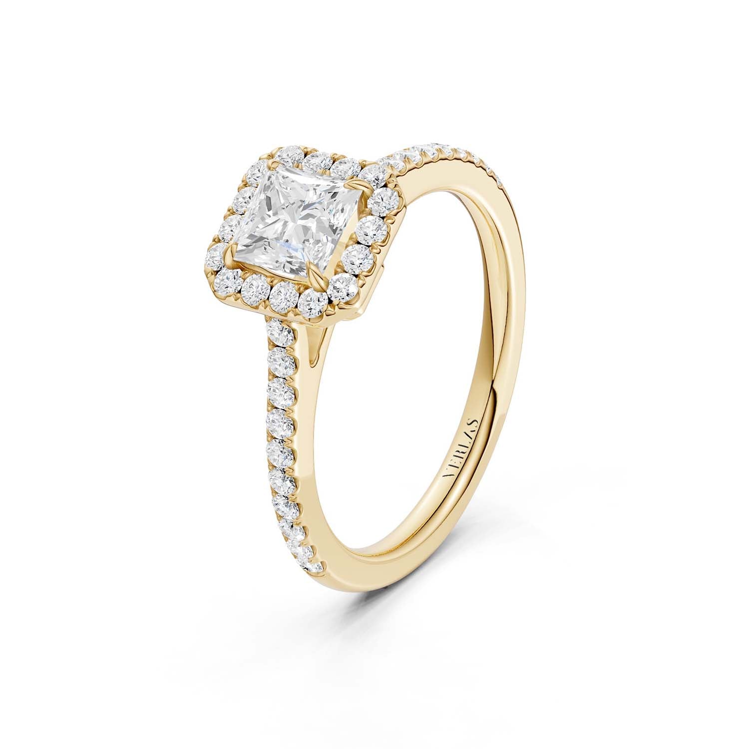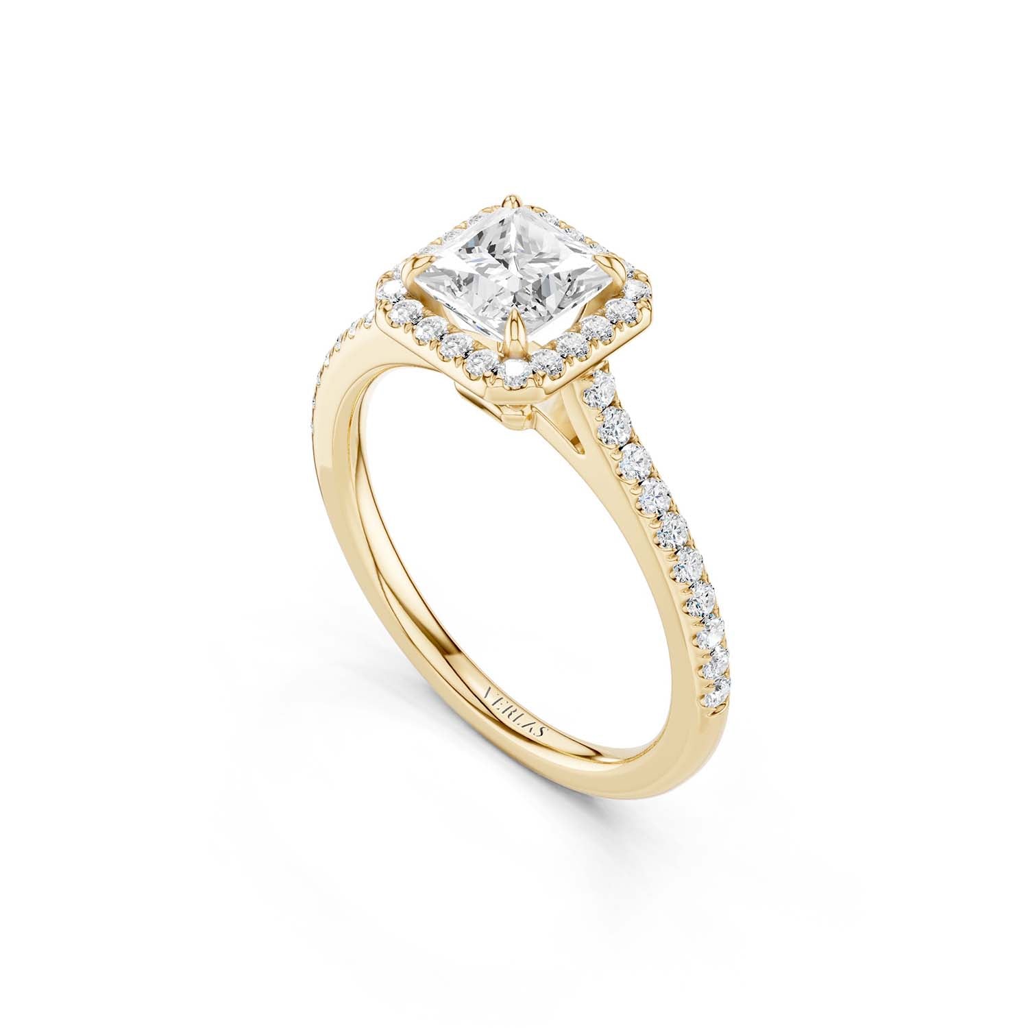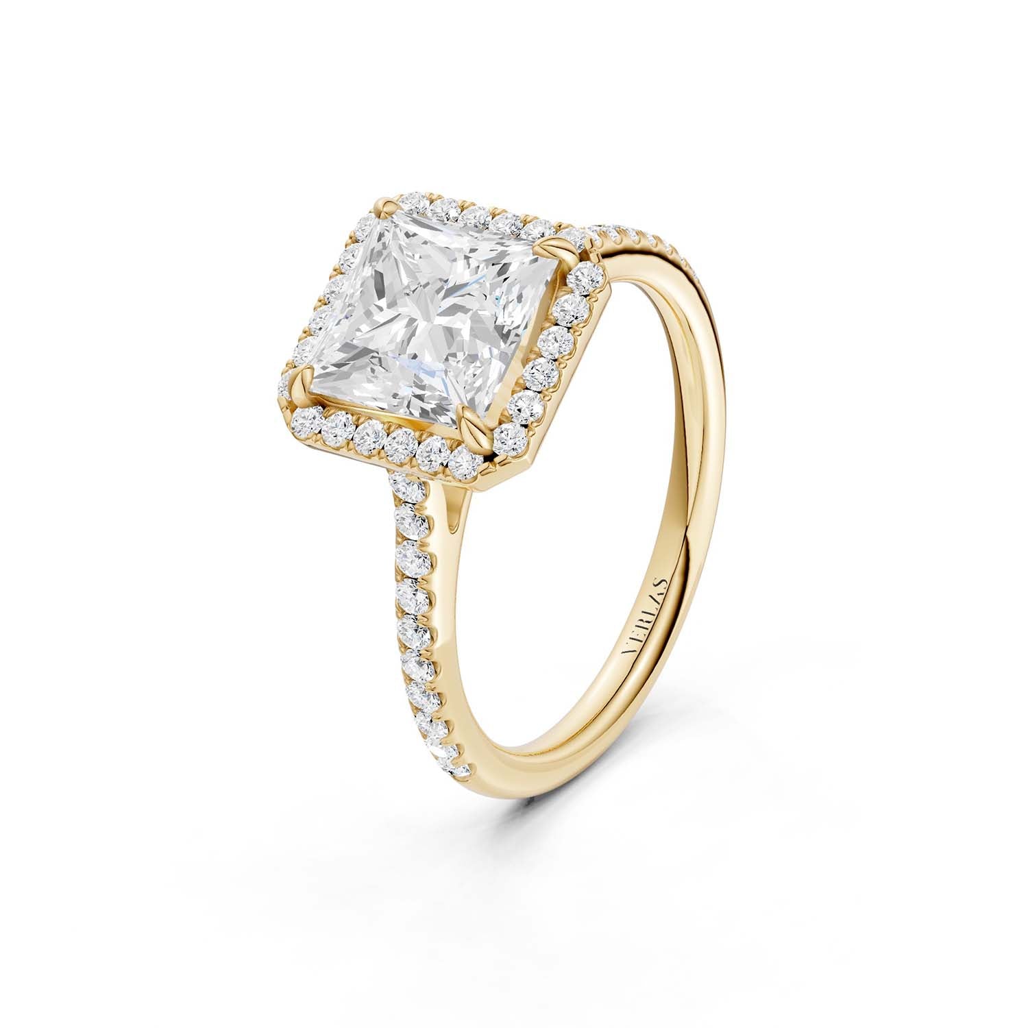 Read MoreThis princess-cut halo ring is the perfect mix of modern and vintage design, crafted to accent the beauty of brilliant round diamonds in a halo setting. Set in lustrous gold, the band is embellished in petite shimmering lab-grown diamonds radiating from every angle.