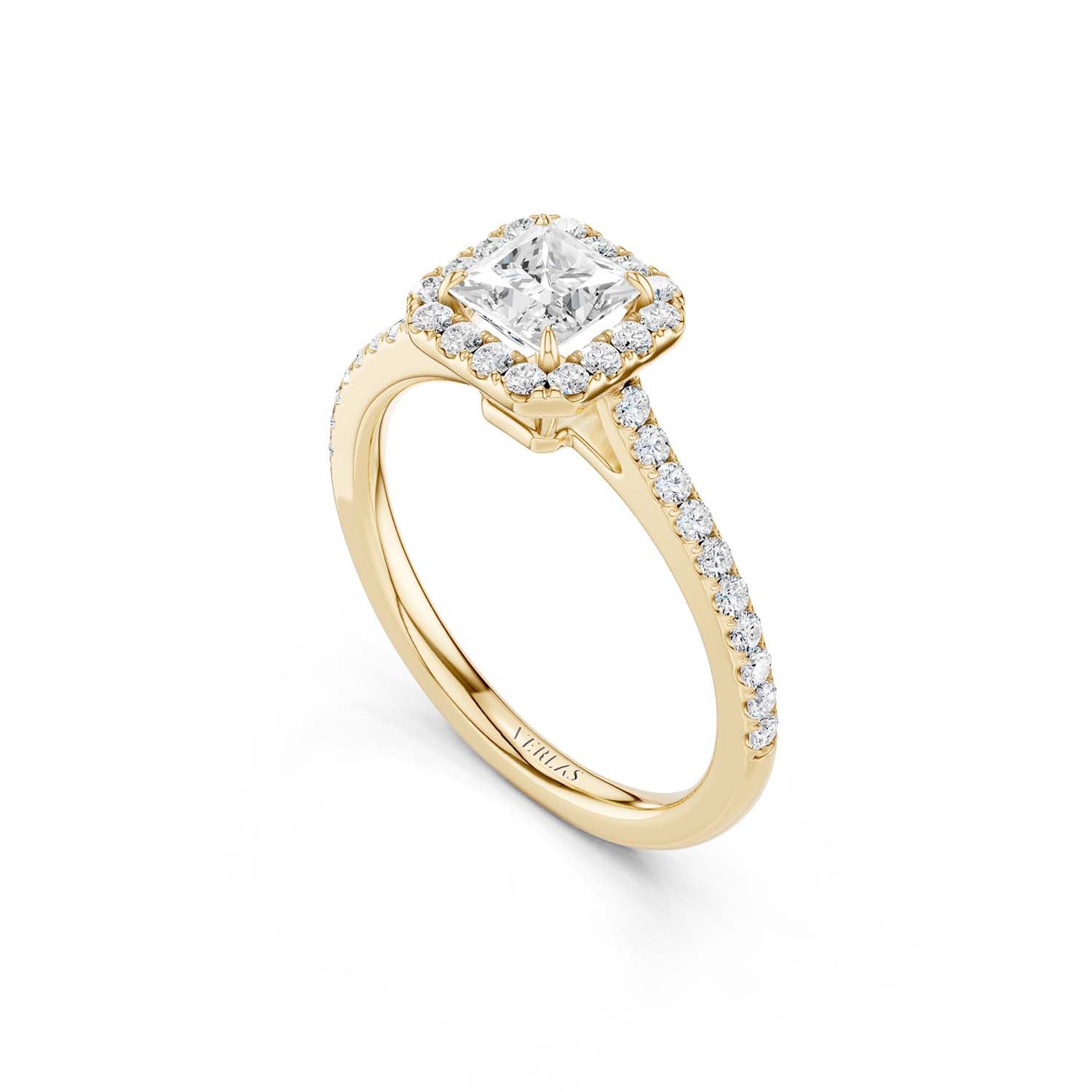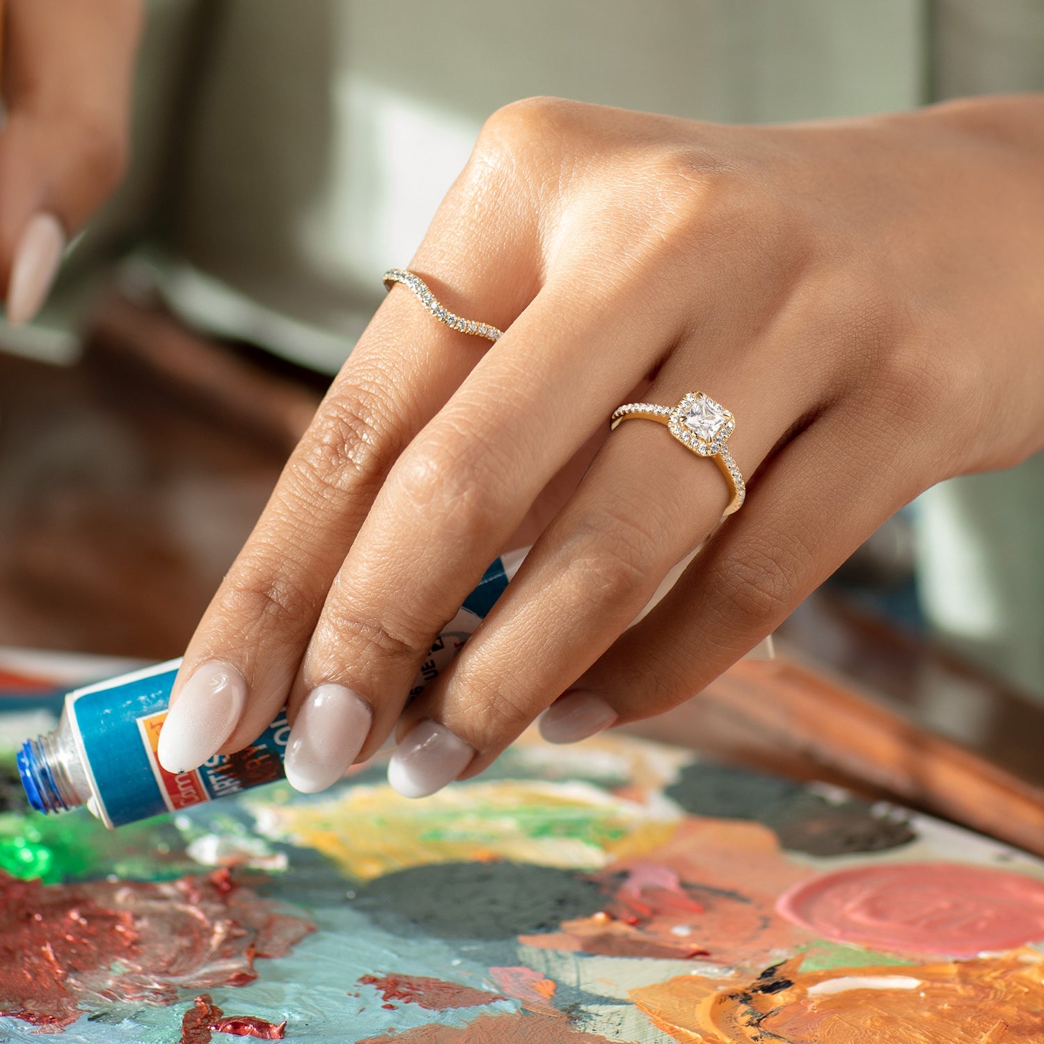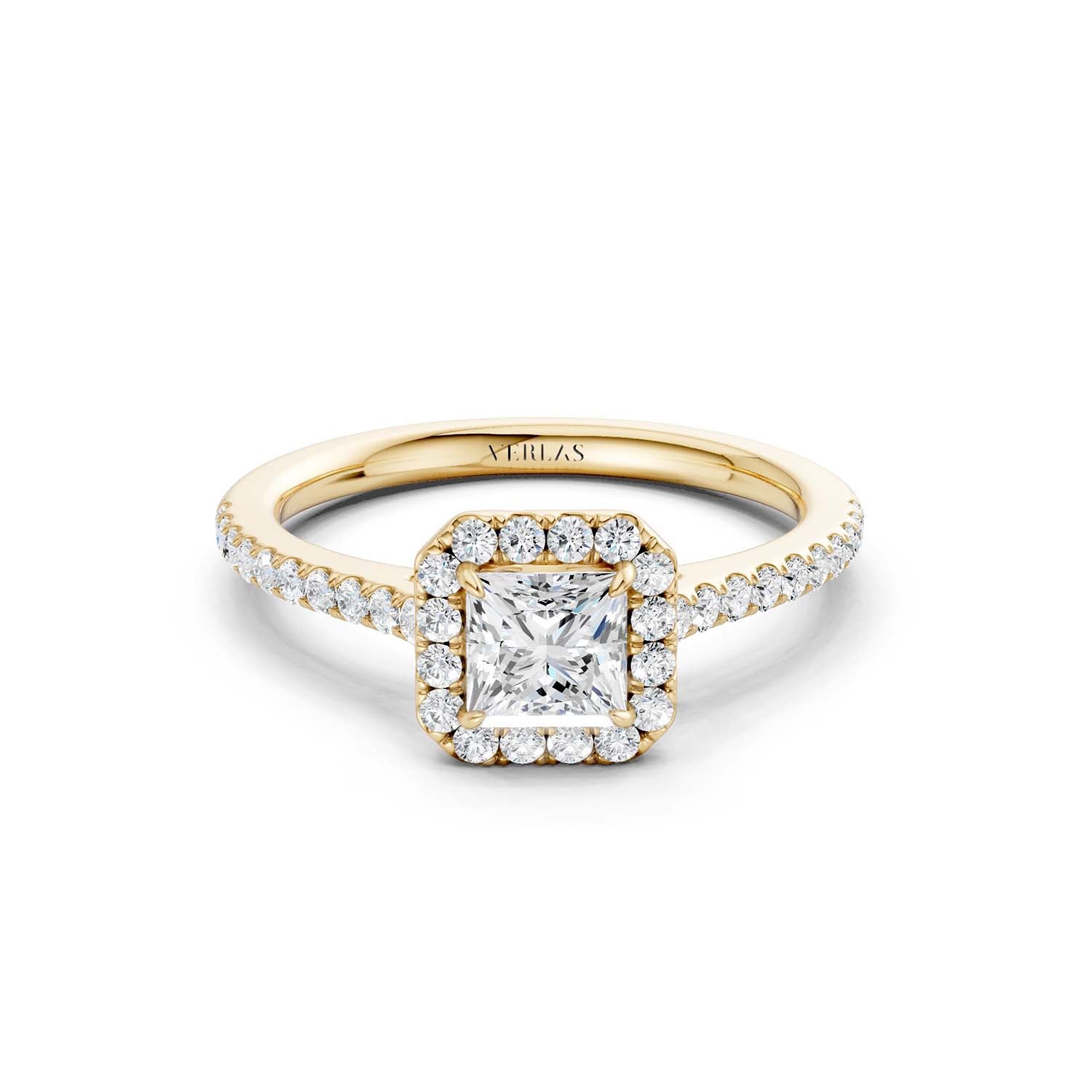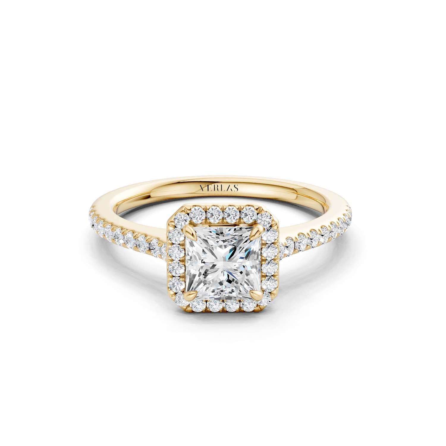 Read MoreThis princess-cut halo ring is the perfect mix of modern and vintage design, crafted to accent the beauty of brilliant round diamonds in a halo setting. Set in lustrous gold, the band is embellished in petite shimmering lab-grown diamonds radiating from every angle.
