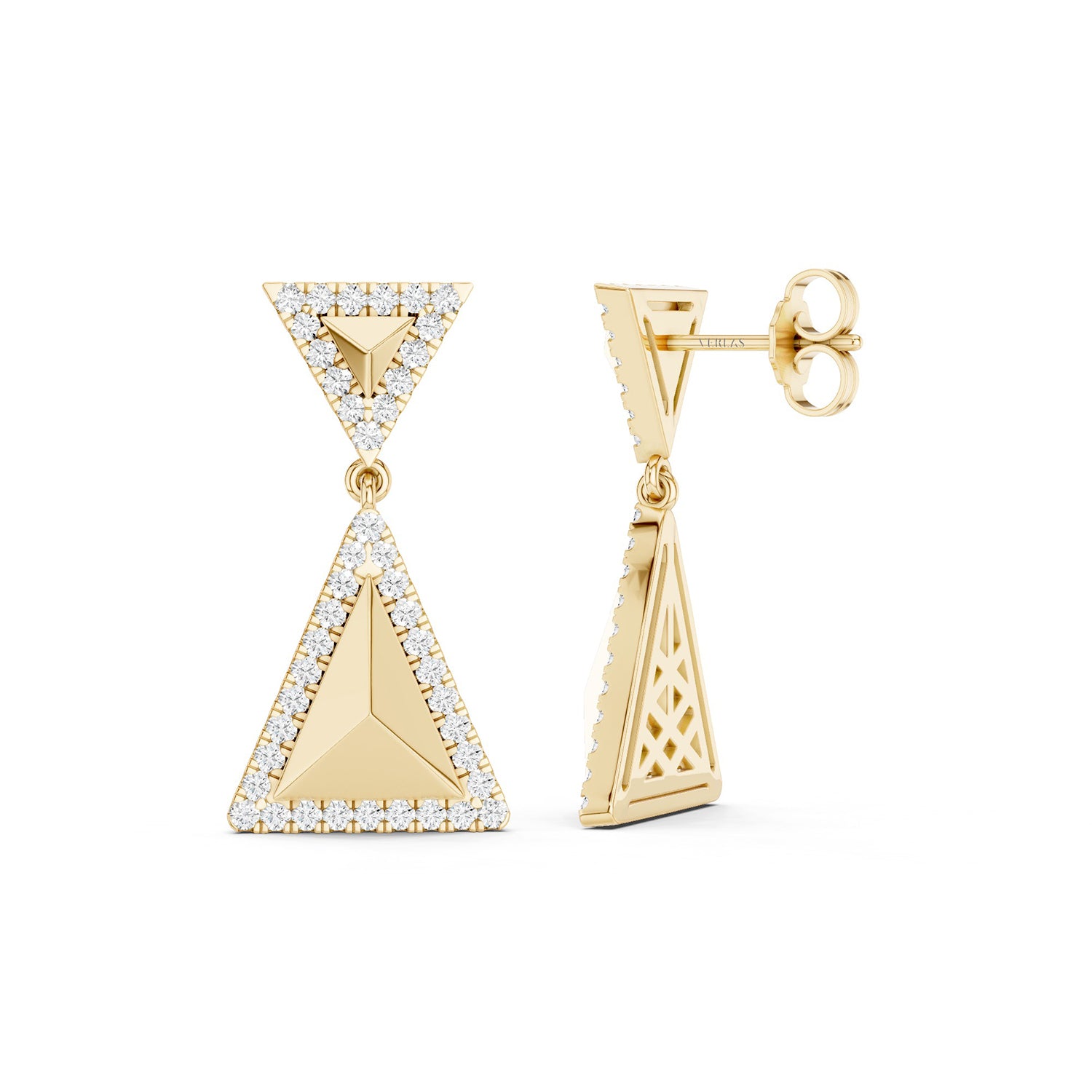 Transform your look with the Pyramid Luxe Contour Earrings, where modern design meets luxurious elegance. These stunning diamond earrings showcase a striking hourglass shape formed by two three-dimensional pyramids elegantly joined at their tip. The textured surface adds depth and interest, while sparkling lab-grown diamonds adorn the design, infusing it with a captivating brilliance. Perfect for elevating both everyday and special occasion outfits, these earrings are not just accessories—they’re statements of style and sophistication. The combination of geometric forms and shimmering diamonds creates an eye-catching effect that is sure to turn heads.