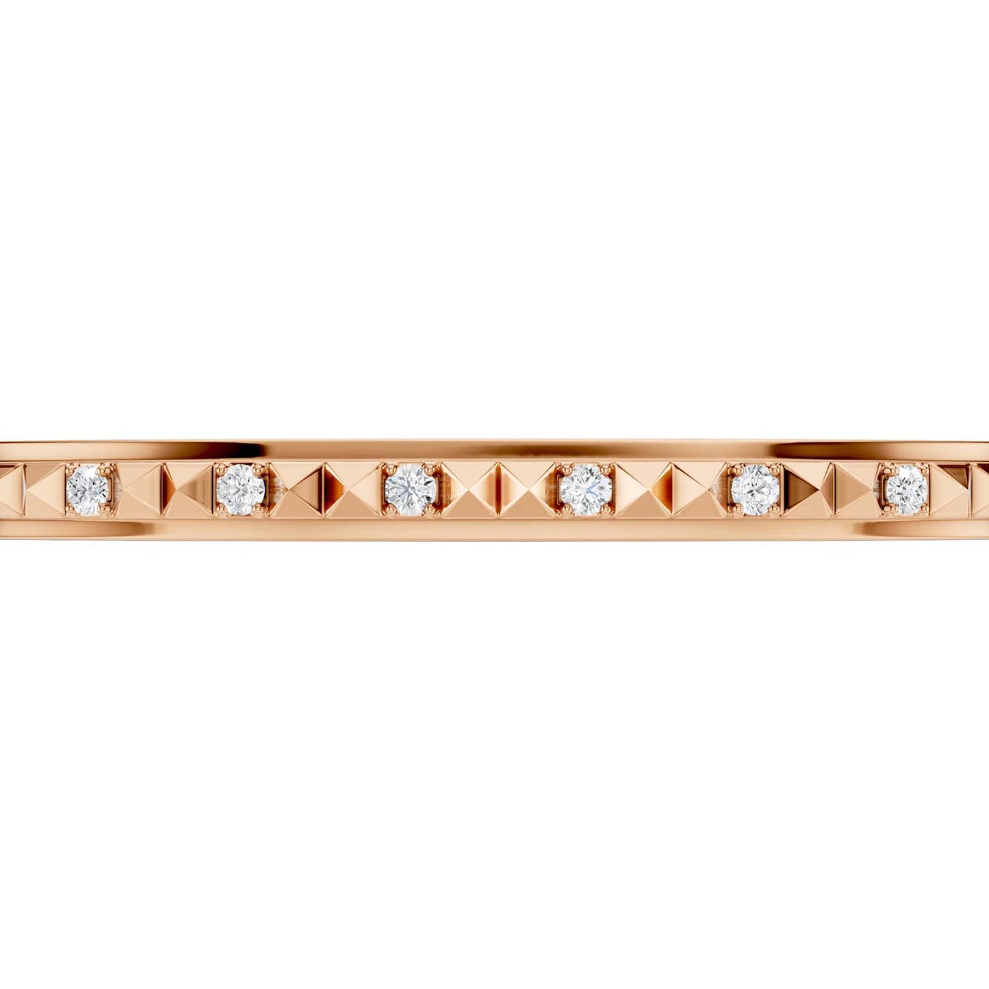 Discover the perfect blend of modern design and effortless elegance with our Pyramid Luxe Cuff Bracelet. This stunning piece is adorned with an array of embossed pyramid motifs that create a striking three-dimensional texture. Every two pyramid motifs are beautifully complemented by a round lab-grown diamond, adding a touch of sparkle that contrasts perfectly with the matte finish of the cuff. Its open-ended design ensures a comfortable fit, allowing you to adjust it to your wrist size with ease. Whether you're dressing up for a special occasion or adding flair to your everyday outfit, this diamond bracelet is your go-to statement piece.