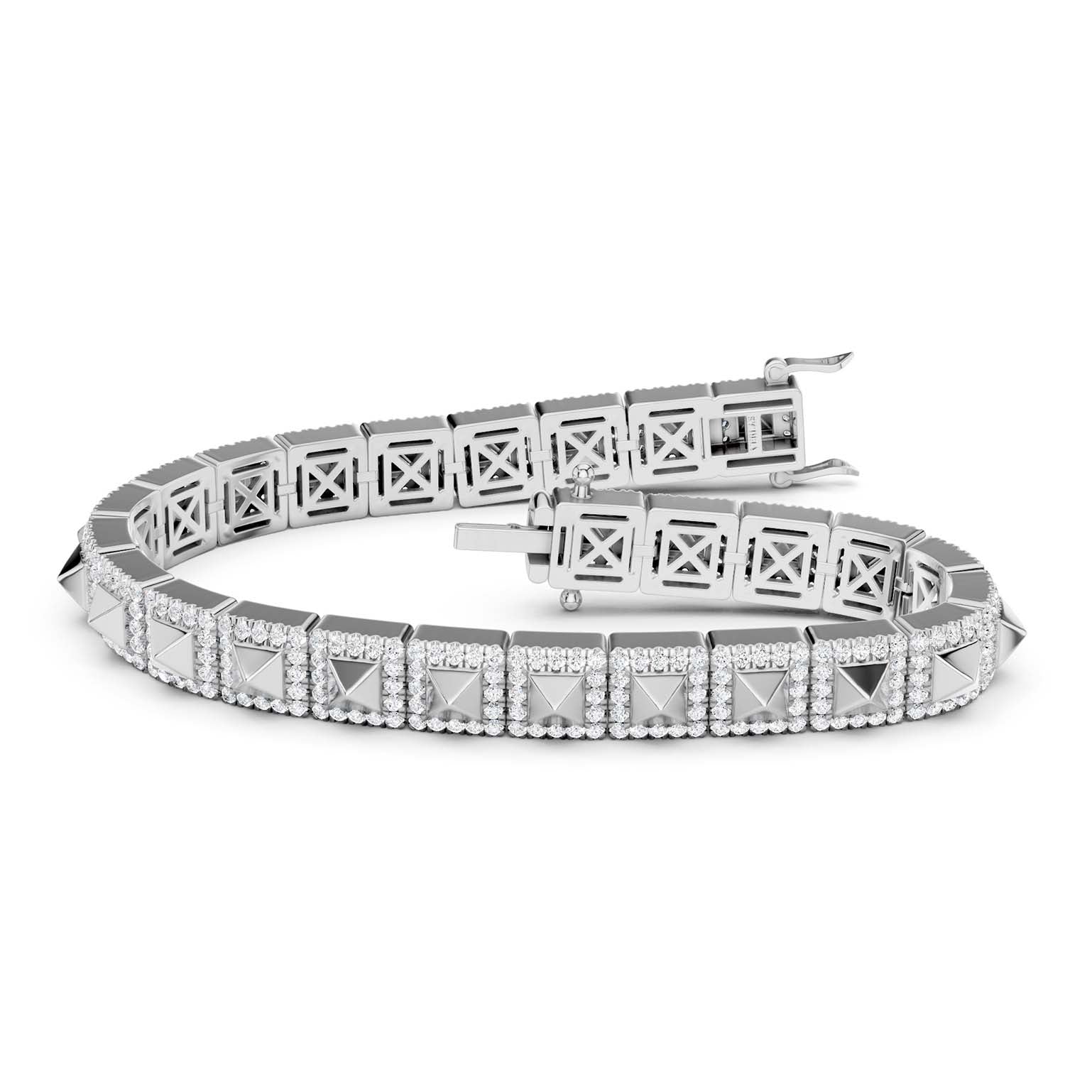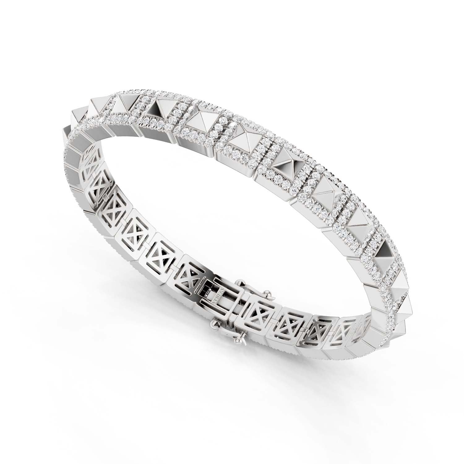 Introducing the Pyramid Luxe Geometric Tennis Bracelet, where modern artistry meets timeless sophistication. This striking diamond tennis bracelet showcases a series of pyramid motifs, each elegantly encased in its own rectangular frame, creating a captivating geometric design. Surrounding each pyramid are shimmering lab-grown diamond accents that elevate the piece with their radiant sparkle, offering a stunning contrast to the bold shapes. Whether you're dressing up for a special occasion or adding a touch of glam to your everyday wear, this bracelet is the perfect accessory to enhance any outfit.