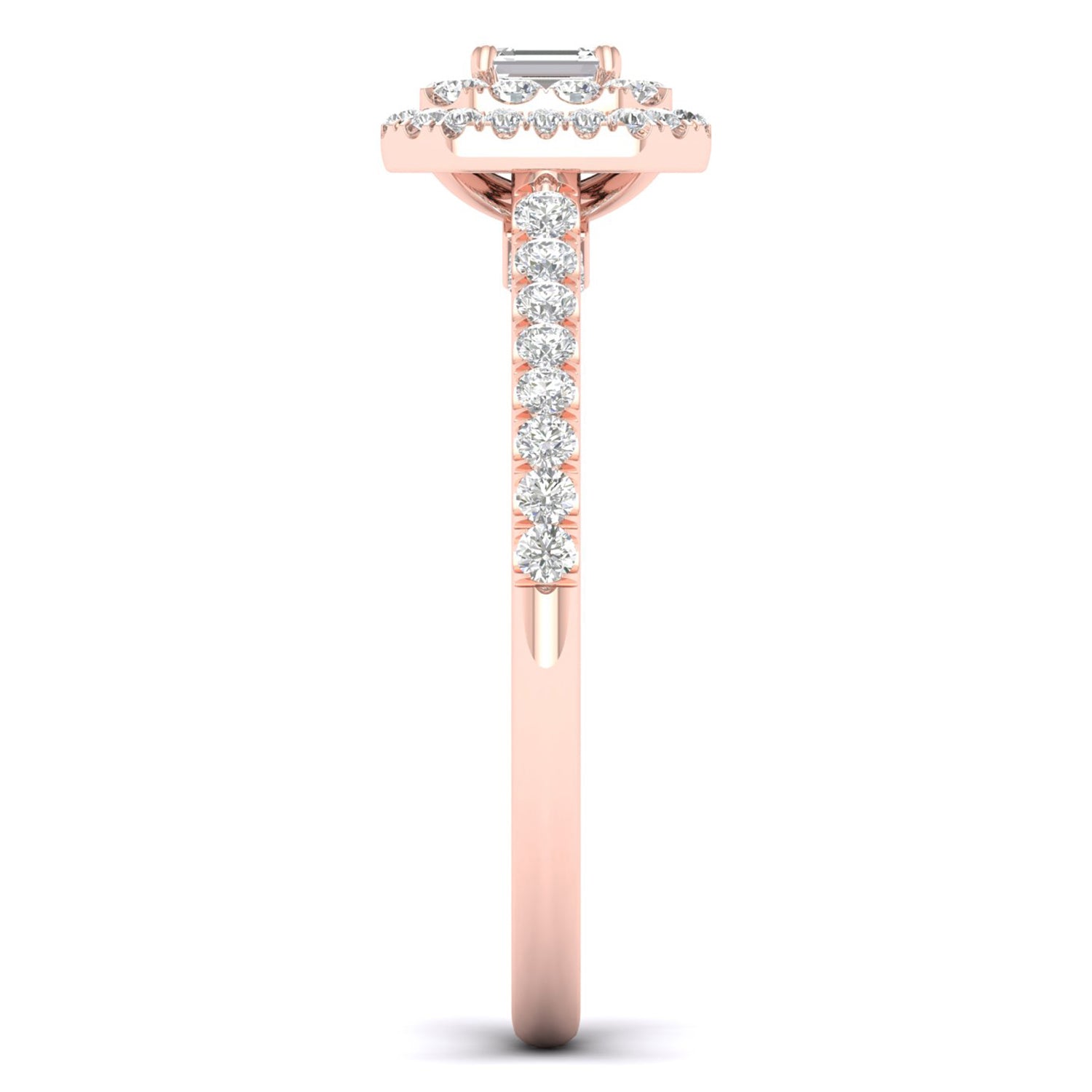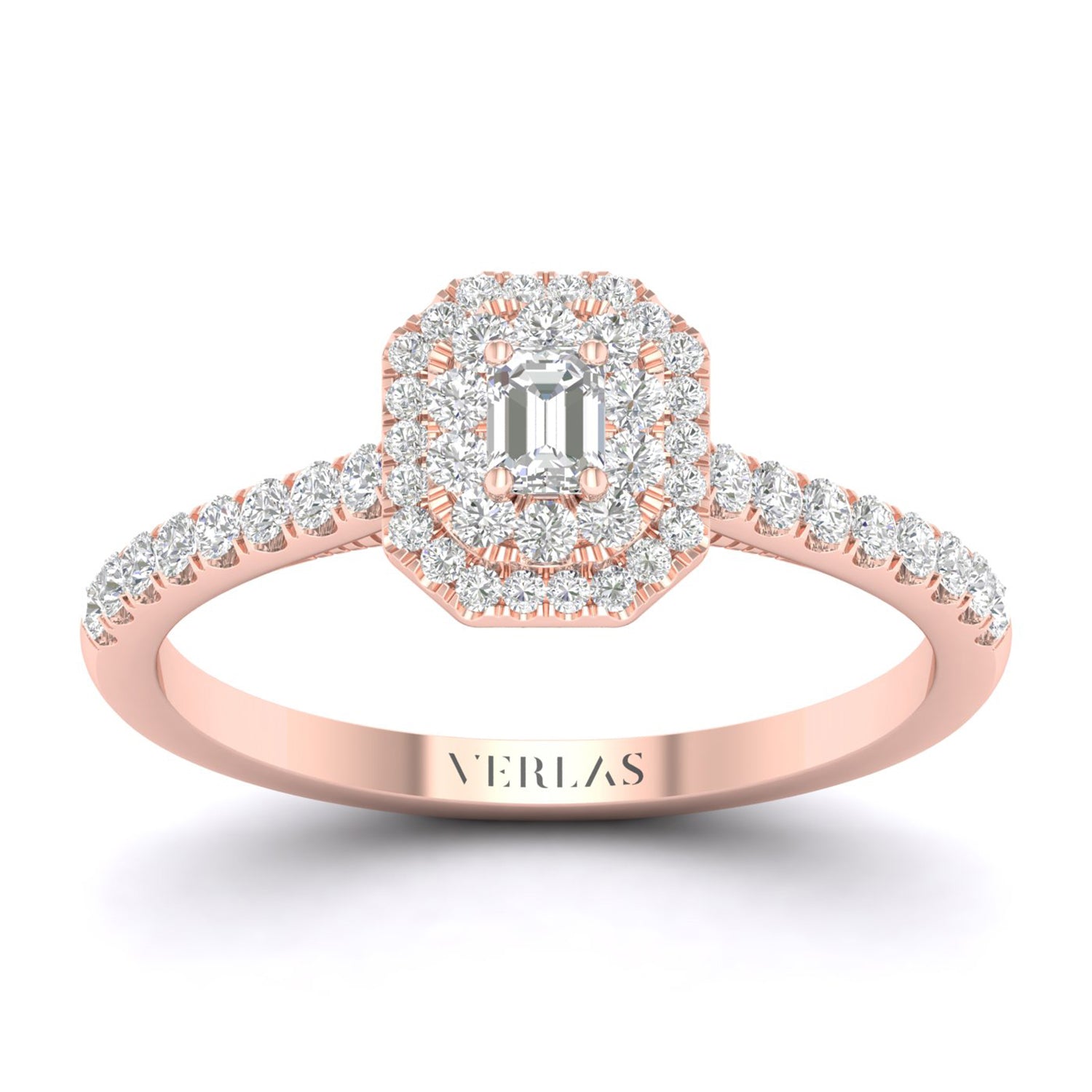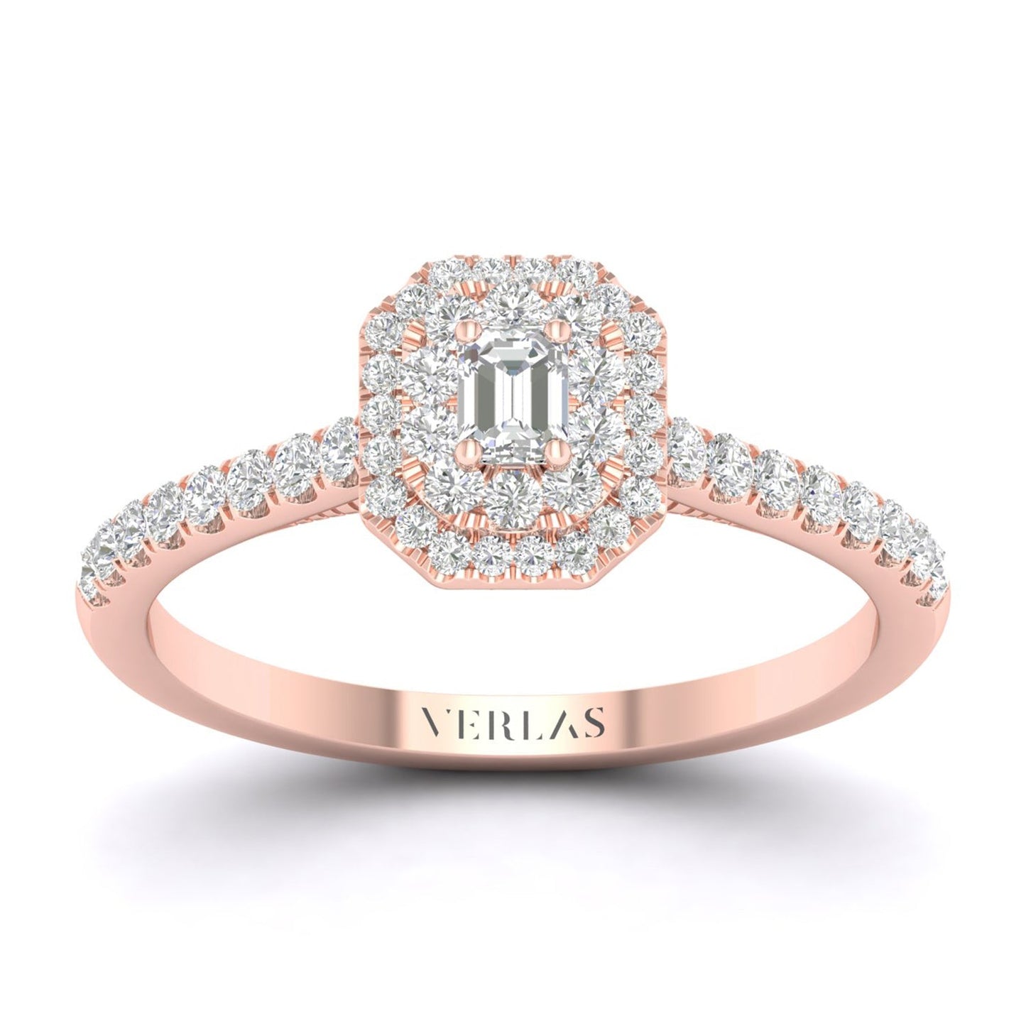 Introducing the Quaint Signature Emerald Double Halo Diamond Ring. This mesmerizing ring beautifully showcases the timeless elegance of emerald-cut diamonds. Surrounded by a double halo of shimmering diamonds, the emerald-cut center stone exudes sophistication and grace.