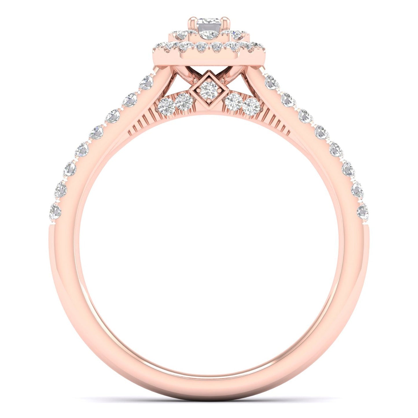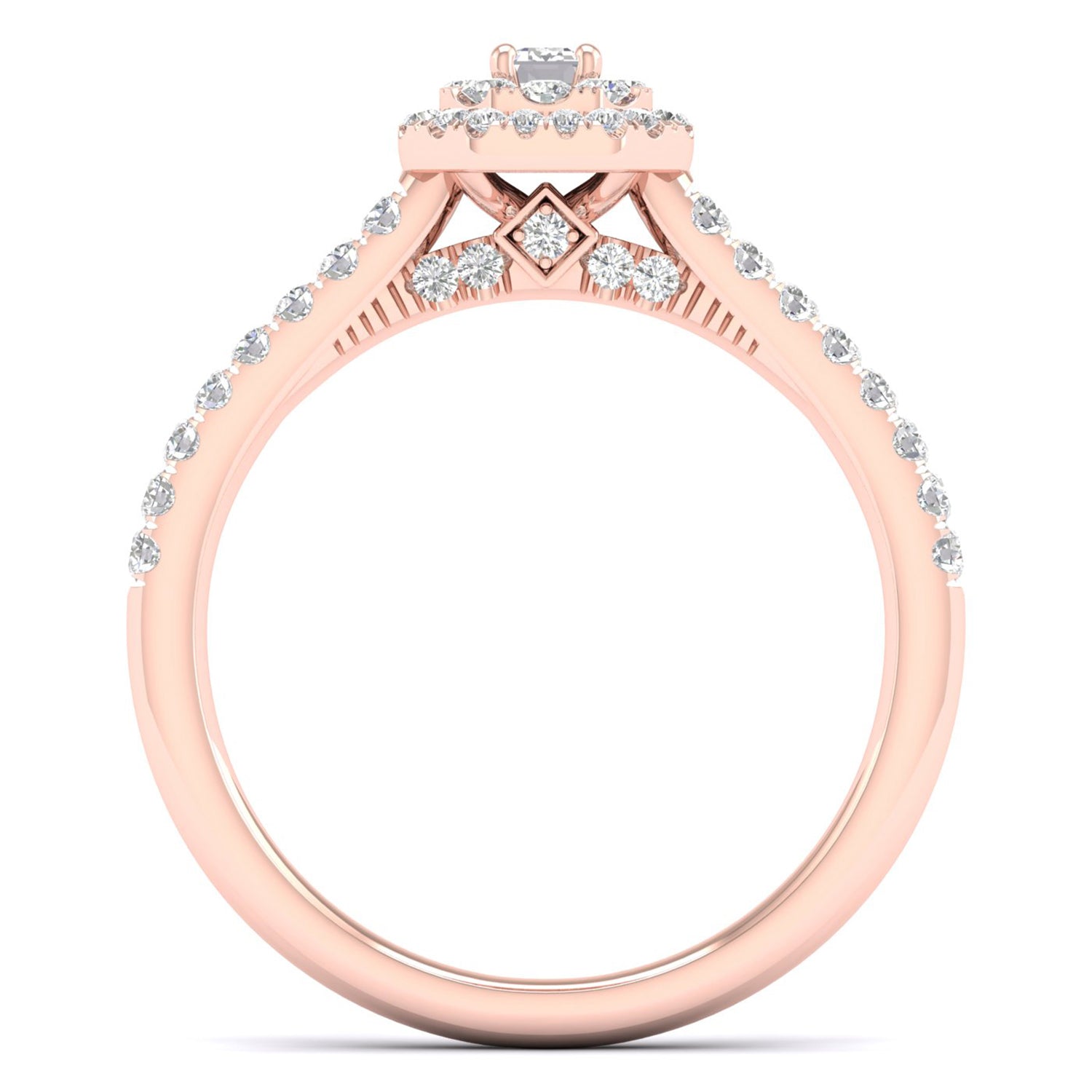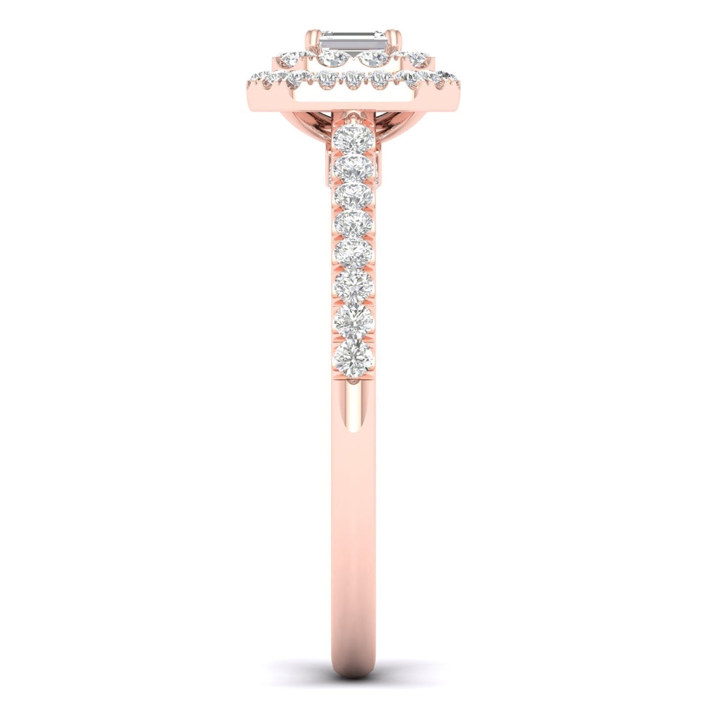 Introducing the Quaint Signature Emerald Double Halo Diamond Ring. This mesmerizing ring beautifully showcases the timeless elegance of emerald-cut diamonds. Surrounded by a double halo of shimmering diamonds, the emerald-cut center stone exudes sophistication and grace.