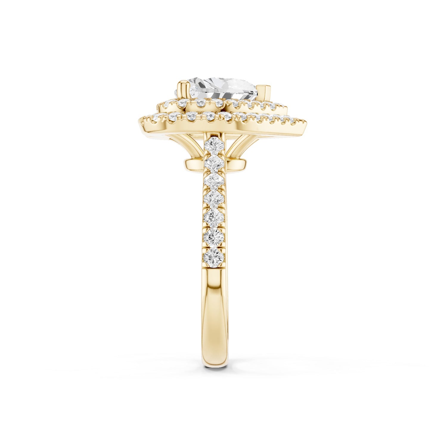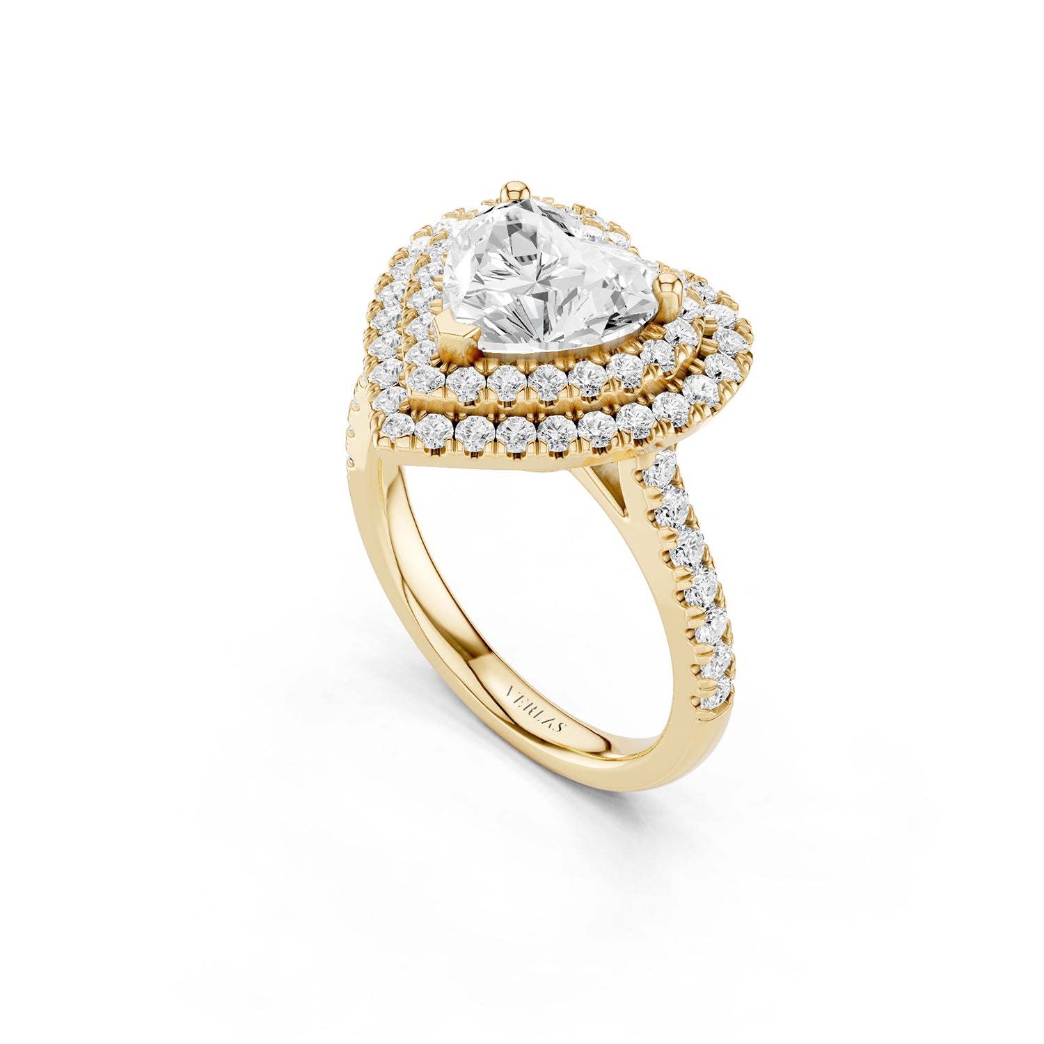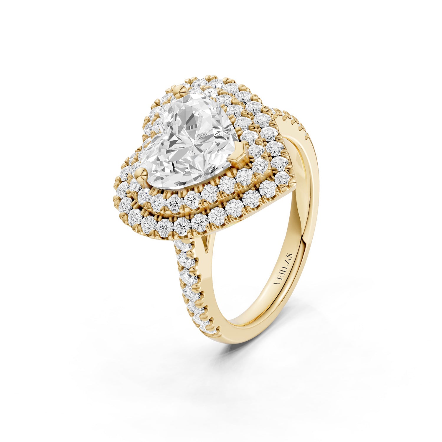 This Quaint Signature Heart Double Halo Ring features a beautifully crafted heart-shaped lab-grown diamond, set in a secure prong setting that allows the diamond to sparkle from every angle. The double halo of shimmering diamond accents amplifies the center stone's brilliance, creating a captivating and radiant display of love. Designed for the modern romantic, this diamond ring blends classic charm with contemporary brilliance, making it the perfect symbol of everlasting affection. Whether as an engagement ring or a statement piece for any occasion, this ring is designed to make you feel truly special.