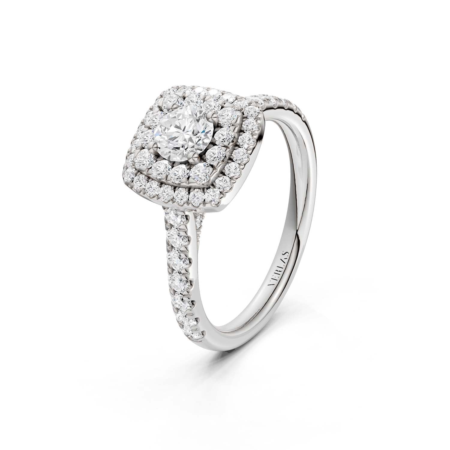 Clarity, one of the “Four C’s,” measures a diamond’s naturally-occuring imperfections (also called ‘inclusions’ or ‘flaws.’). Per gemological standards, diamond clarities are categorized as Flawless (F), Internally Flawless (IF), Very Very Slightly included (VVS), Very Slightly included (VS) and Included (I). Under 10x magnification, Flawless diamonds do not show any inclusions. Higher-clarity diamonds are rarer and pricier. However, many types of inclusions are invisible even to the naked eye, not to mention they give natural diamonds their unique character. Verlas strikes a balance between clarity and price point which is why we offer hand-cut VS and SI clarity diamonds certified by IGI. You can always contact Verlas Concierge for a different diamond clarity on your favorite Verlas designs.