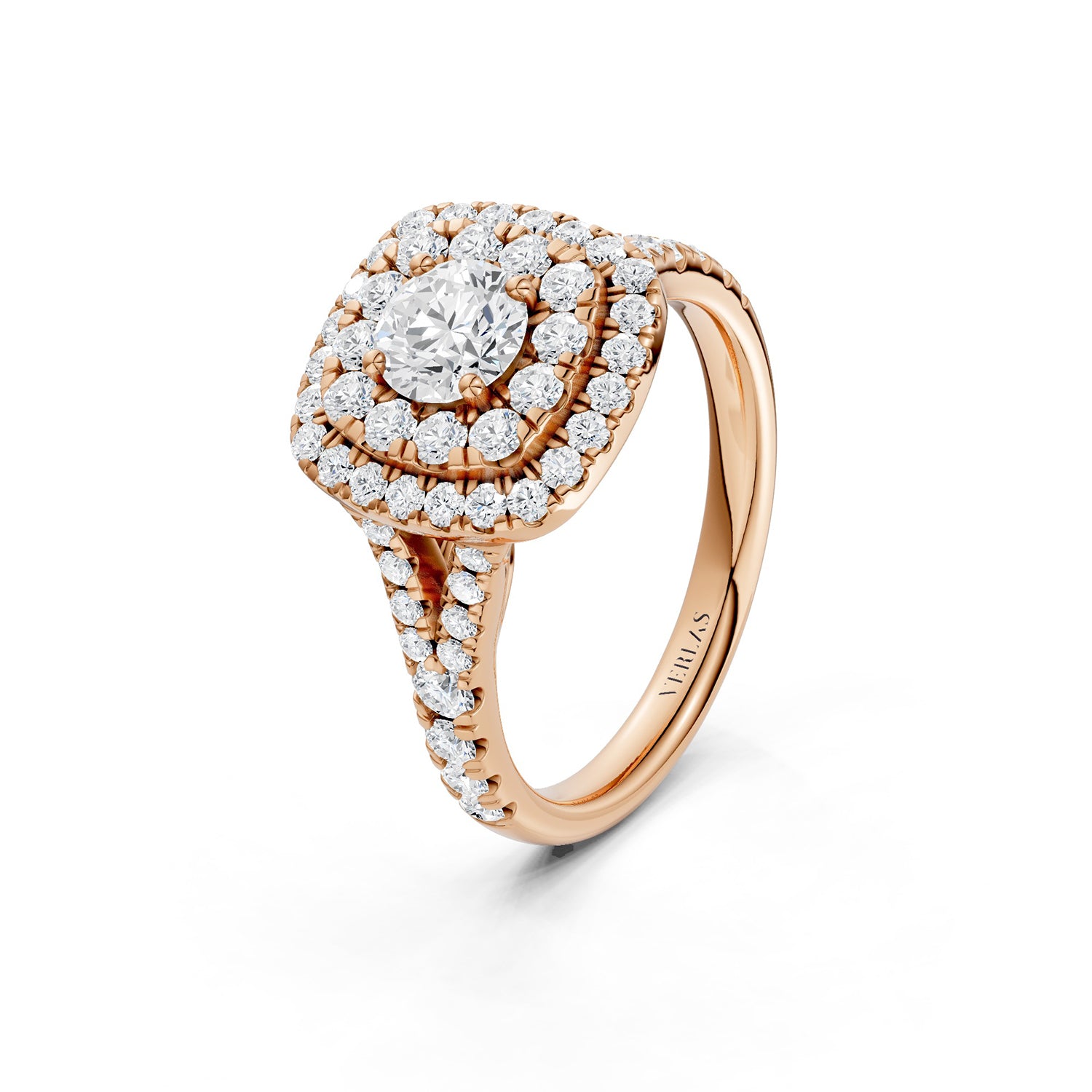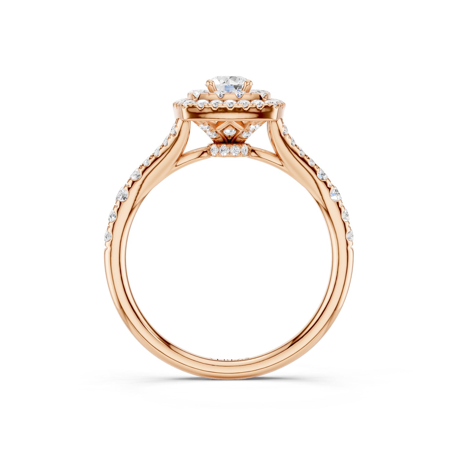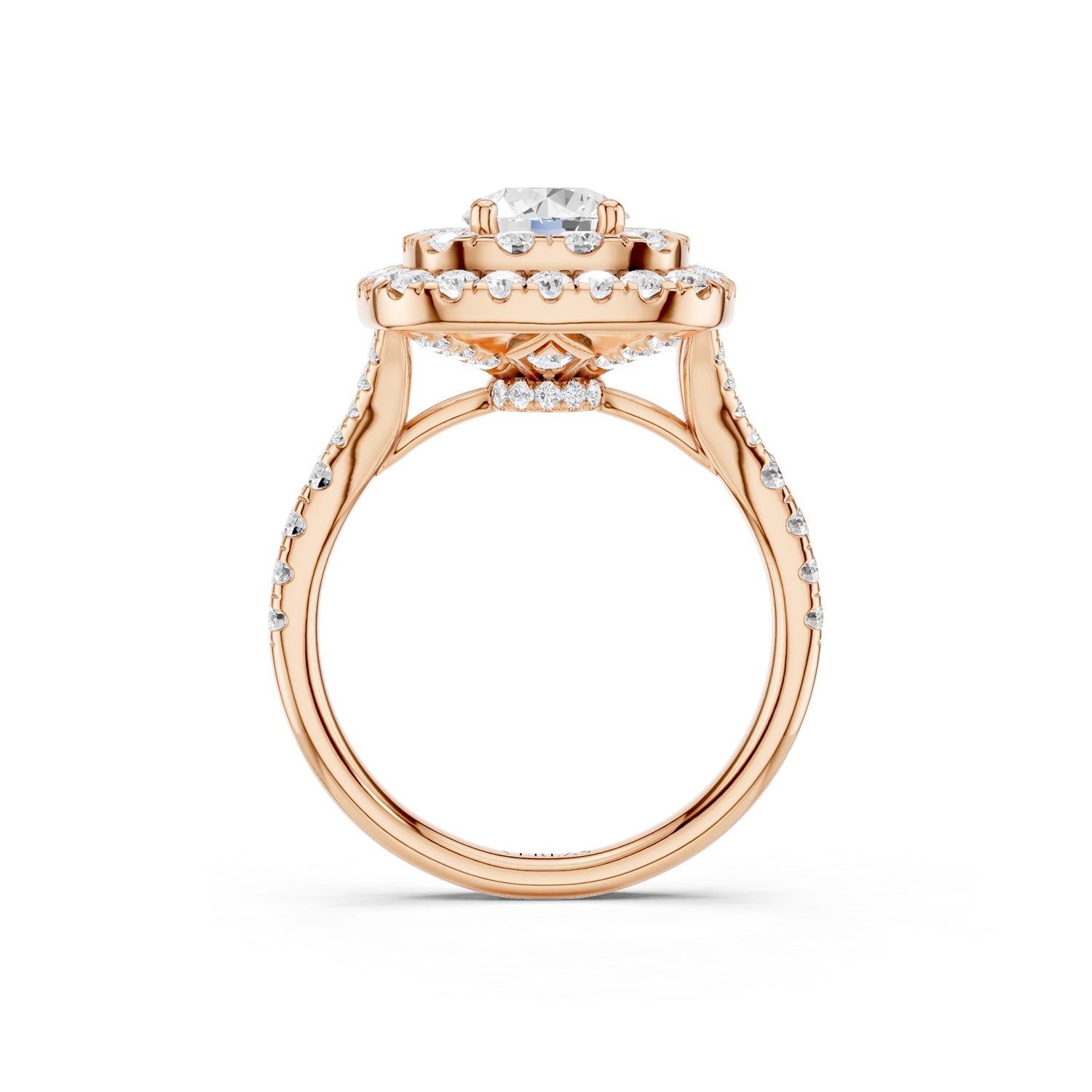 The Round-Center Princess Double Halo Ring is a must-have statement piece in your collection. A symbol of luxury, this masterpiece features a radiant center stone encircled by a double halo of diamonds. Its band, adorned with accent diamonds, adds to its glory. Here’s a ring that’s not just a piece of jewelry but a statement of style and sophistication.