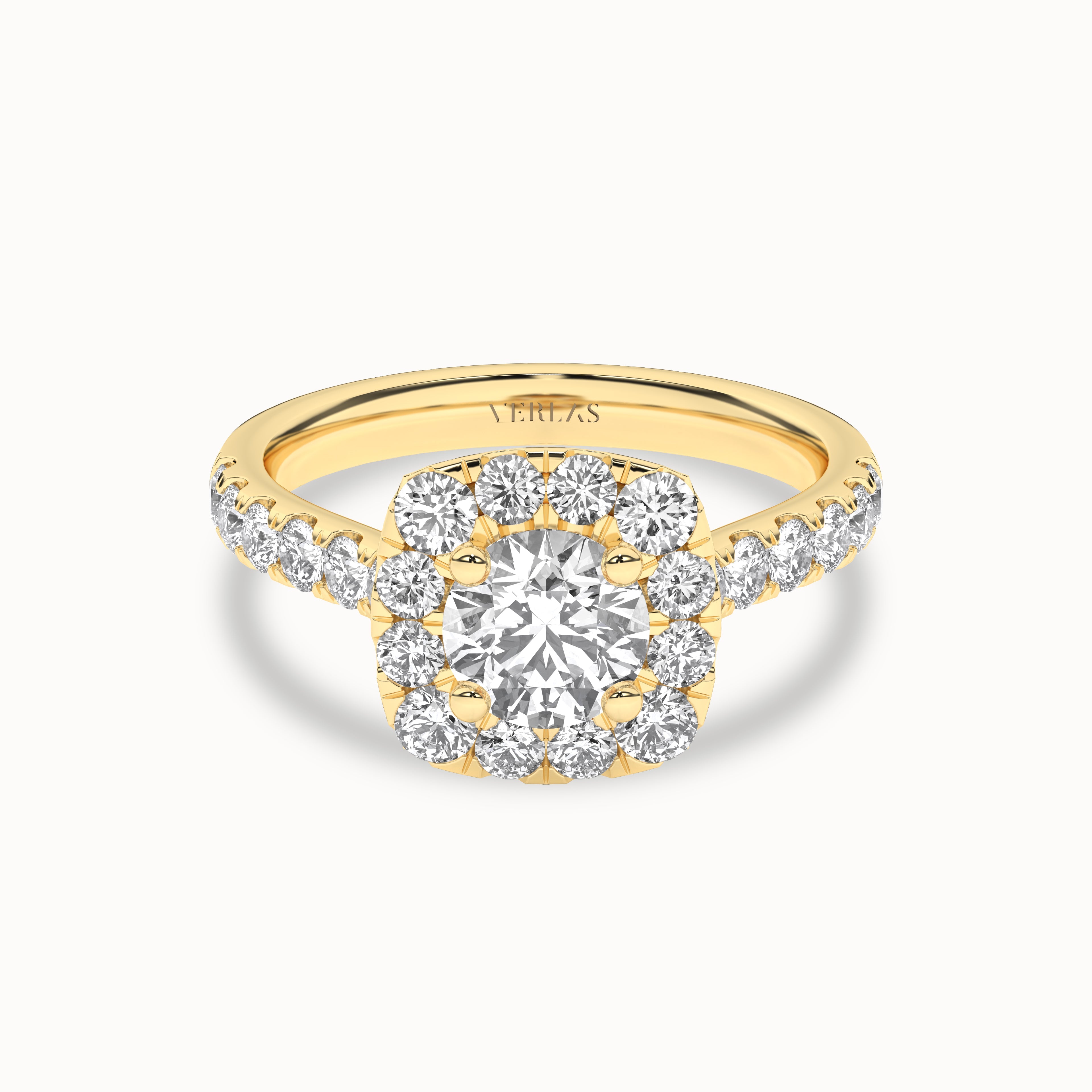 Round-Center Princess Halo Ring
