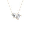 Crafted with love, this Toi-et-moi necklace boasts superior craftsmanship, showcasing two distinct diamonds in perfect harmony. Both Round and Emerald diamonds are meticulously set in an elegant Half Bezel setting, allowing their natural radiance to shine through. It perfectly complements any style, making it suitable for both everyday wear and special occasions.