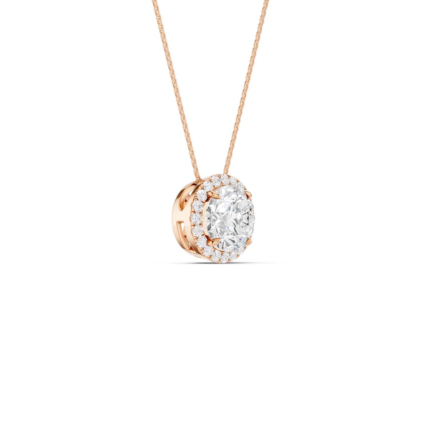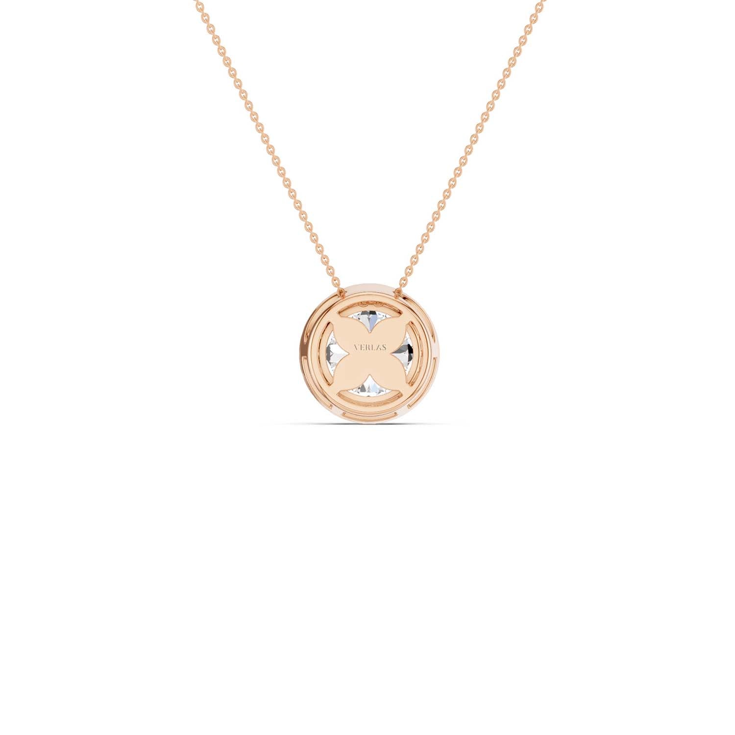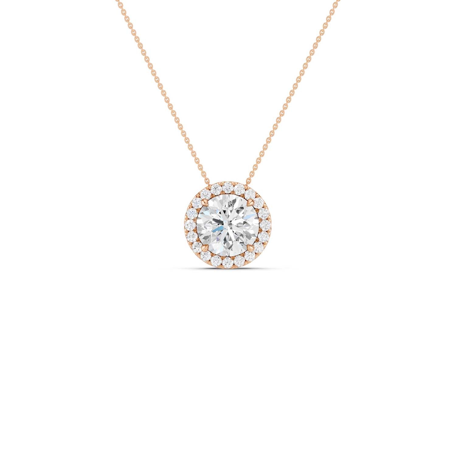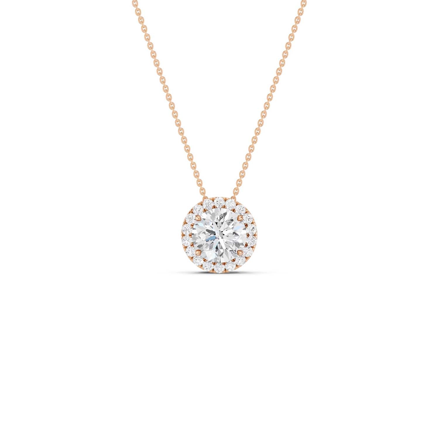 Beautifully crafted, this round halo pendant has the best lab-grown diamond surrounded by sparkling micropavé diamonds. This elegant halo pendant exhibits a contemporary charm and is sure to complement any ensemble.