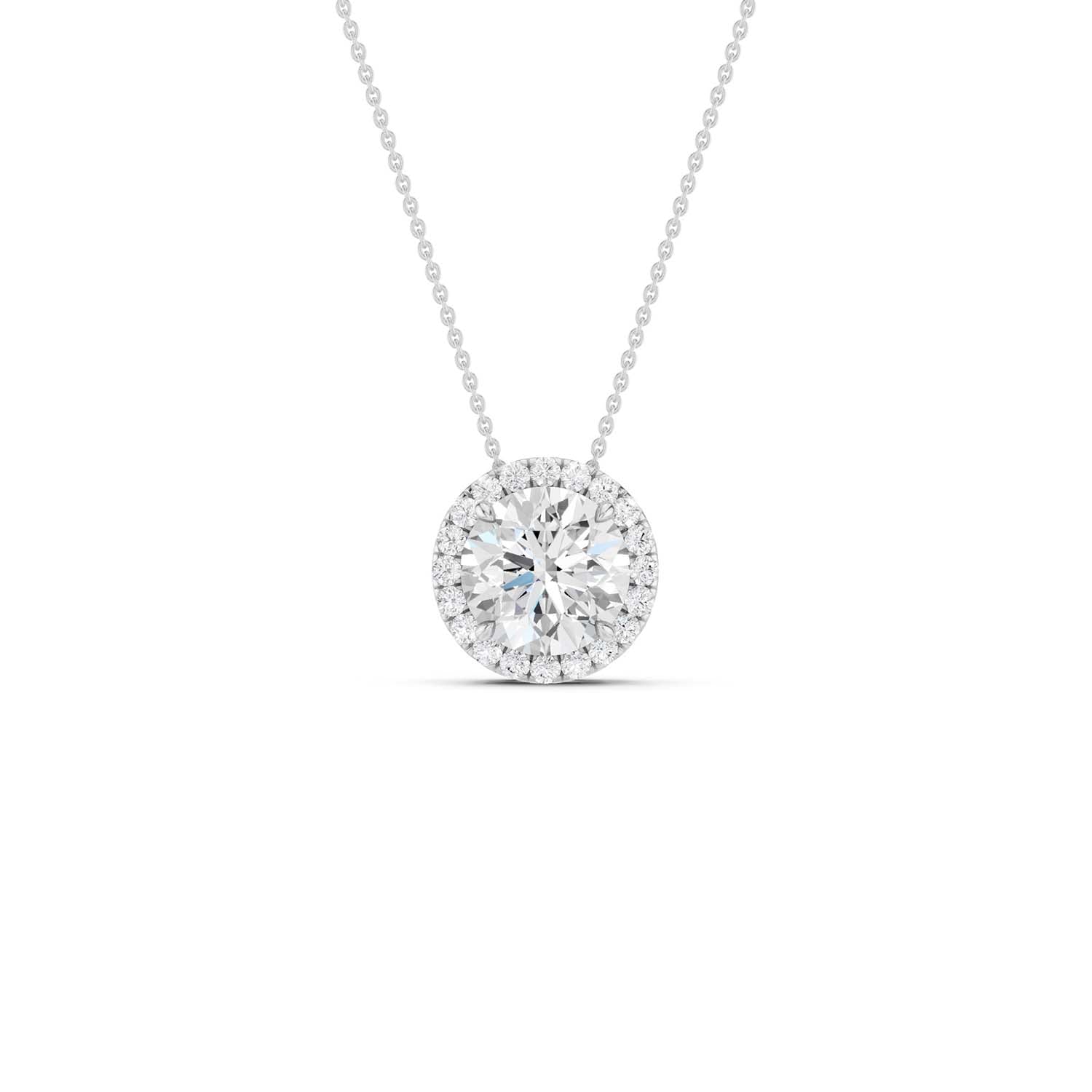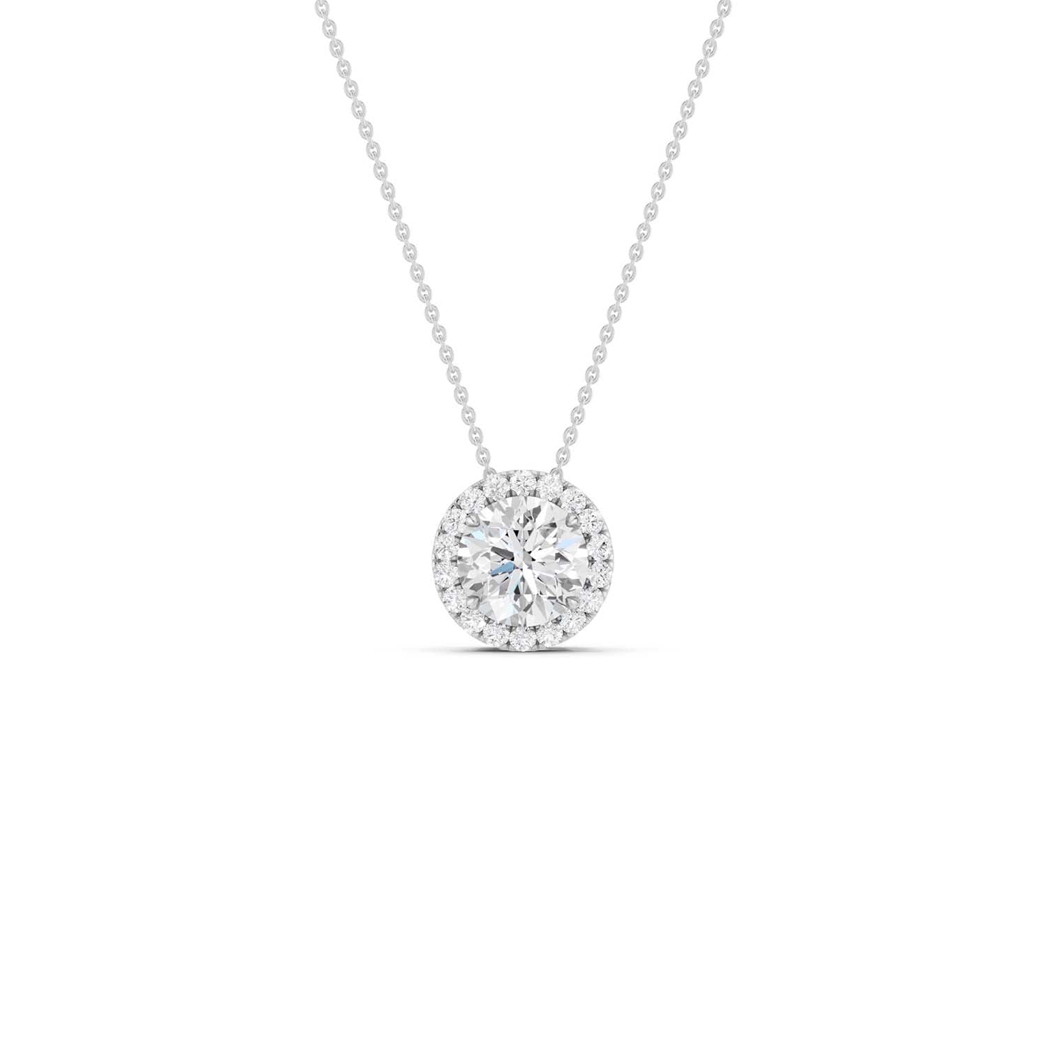 Beautifully crafted, this round halo pendant has the best lab-grown diamond surrounded by sparkling micropavé diamonds. This elegant halo pendant exhibits a contemporary charm and is sure to complement any ensemble.