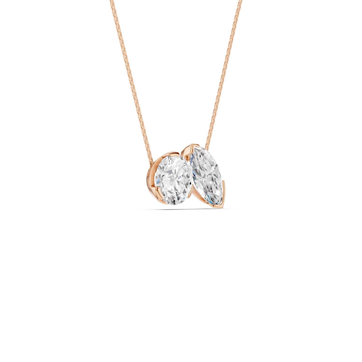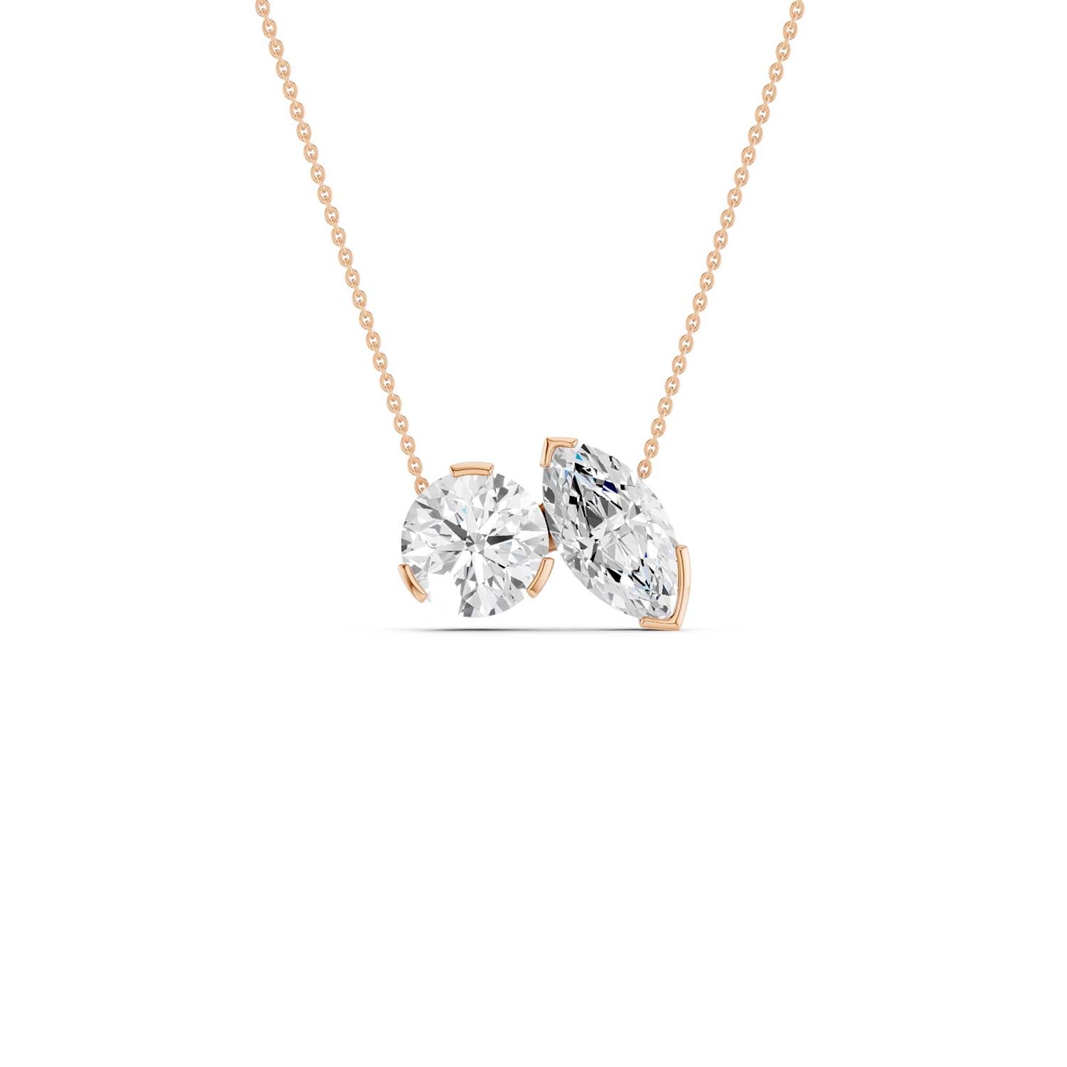 This Toi-et-Moi necklace features two magnificent diamonds - round-cut and marquise-cut, set in a secure yet elegant setting that allows them to shine without distraction. This stunning Toi et Moi necklace is designed for those who believe that love is a journey shared b. . . Read More