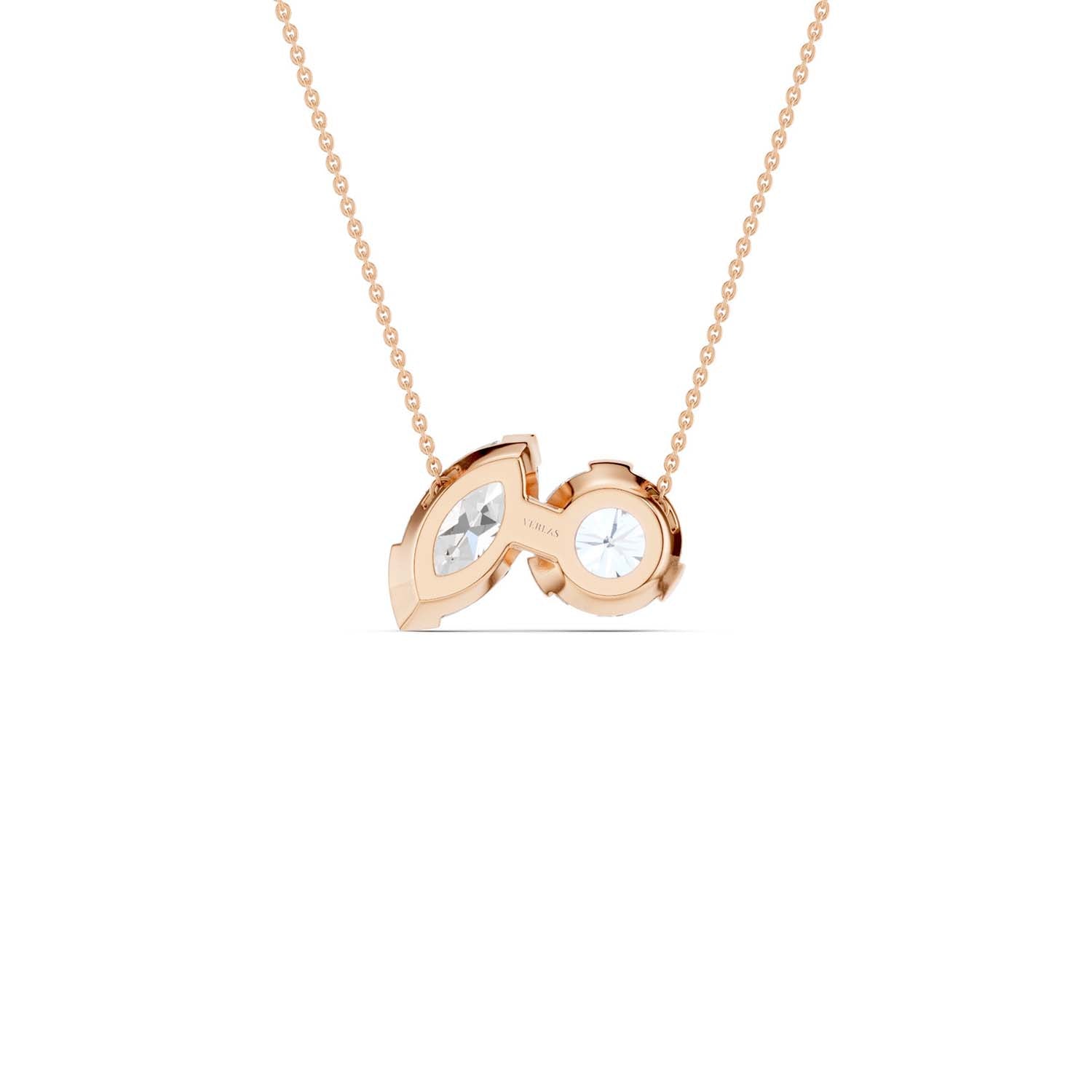 This Toi-et-Moi necklace features two magnificent diamonds - round-cut and marquise-cut, set in a secure yet elegant setting that allows them to shine without distraction. This stunning Toi et Moi necklace is designed for those who believe that love is a journey shared between two souls, a bond that transcends time and space.