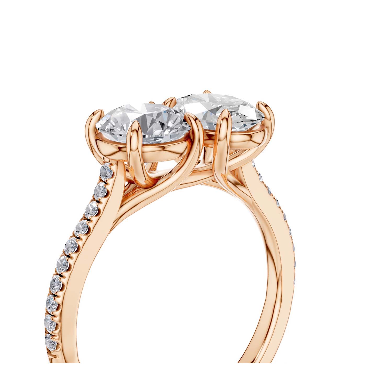 This captivating Toi et Moi consists of a duo of round and oval diamonds, each carefully seleCt.ed to represent the unique qualities that make your love story exceptional. Designed to ignite the sparks of passion and devotion, the ring's intricate shank, adorned with a trail of brilliant diamonds, mirrors the radiant journey of love.