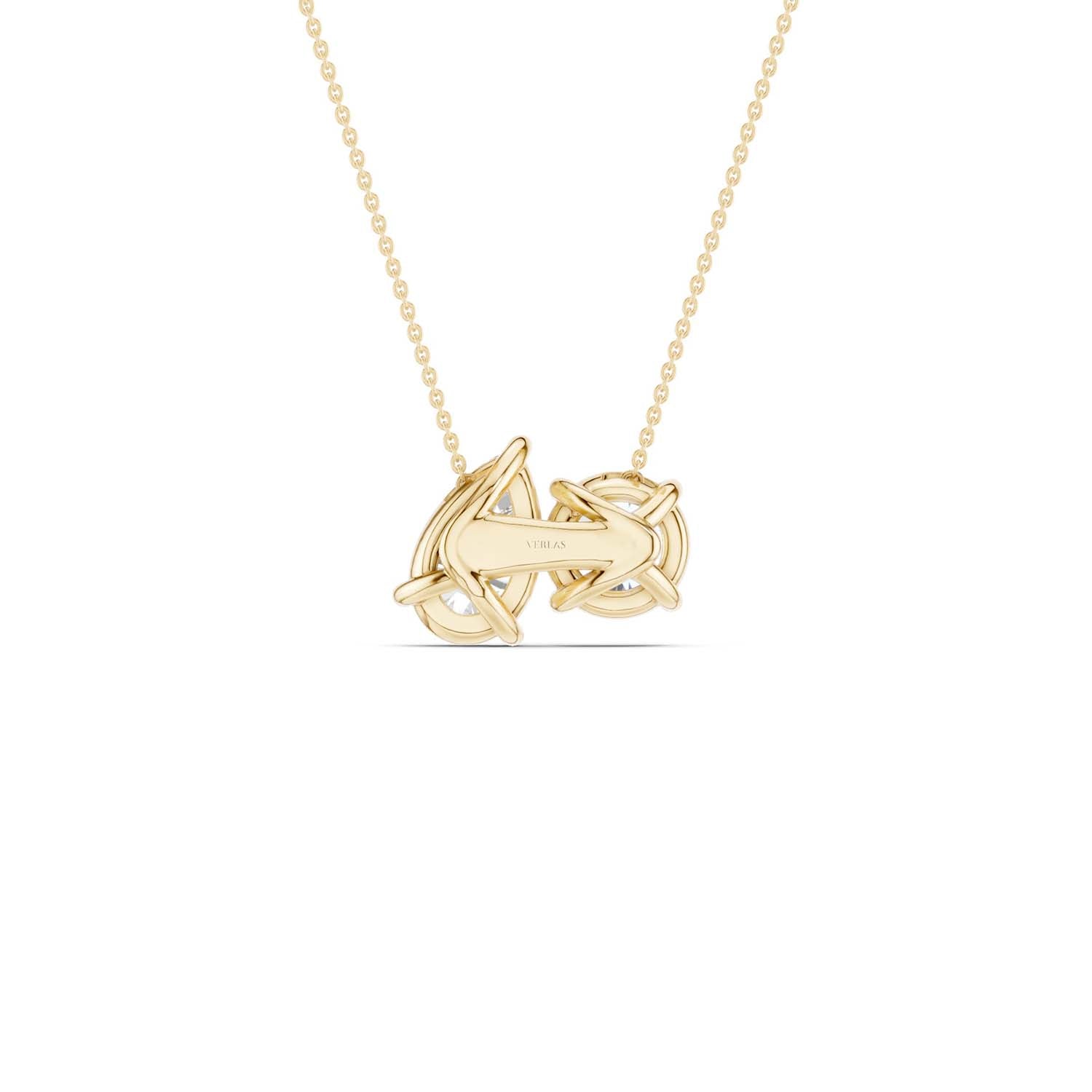 Two stunning diamonds - round-cut and pear-cut, are the soul of this Toi et Moi necklace. This dazzling duo clings in a setting that highlights their beauty and symbolizes the unity of two souls. This two-stone necklace is a perfeCt. expression of love for engagements, anniversaries, or any momentous celebration.