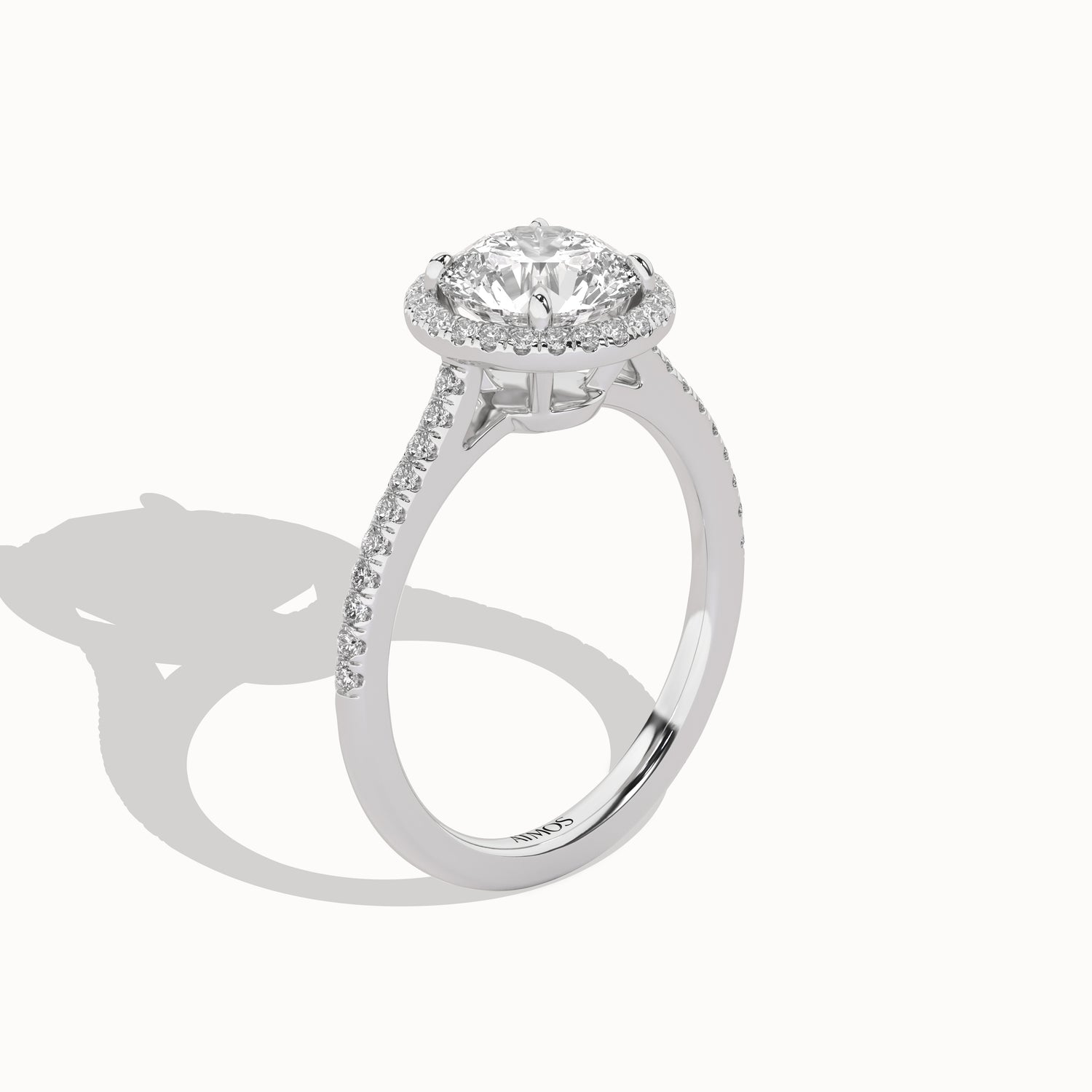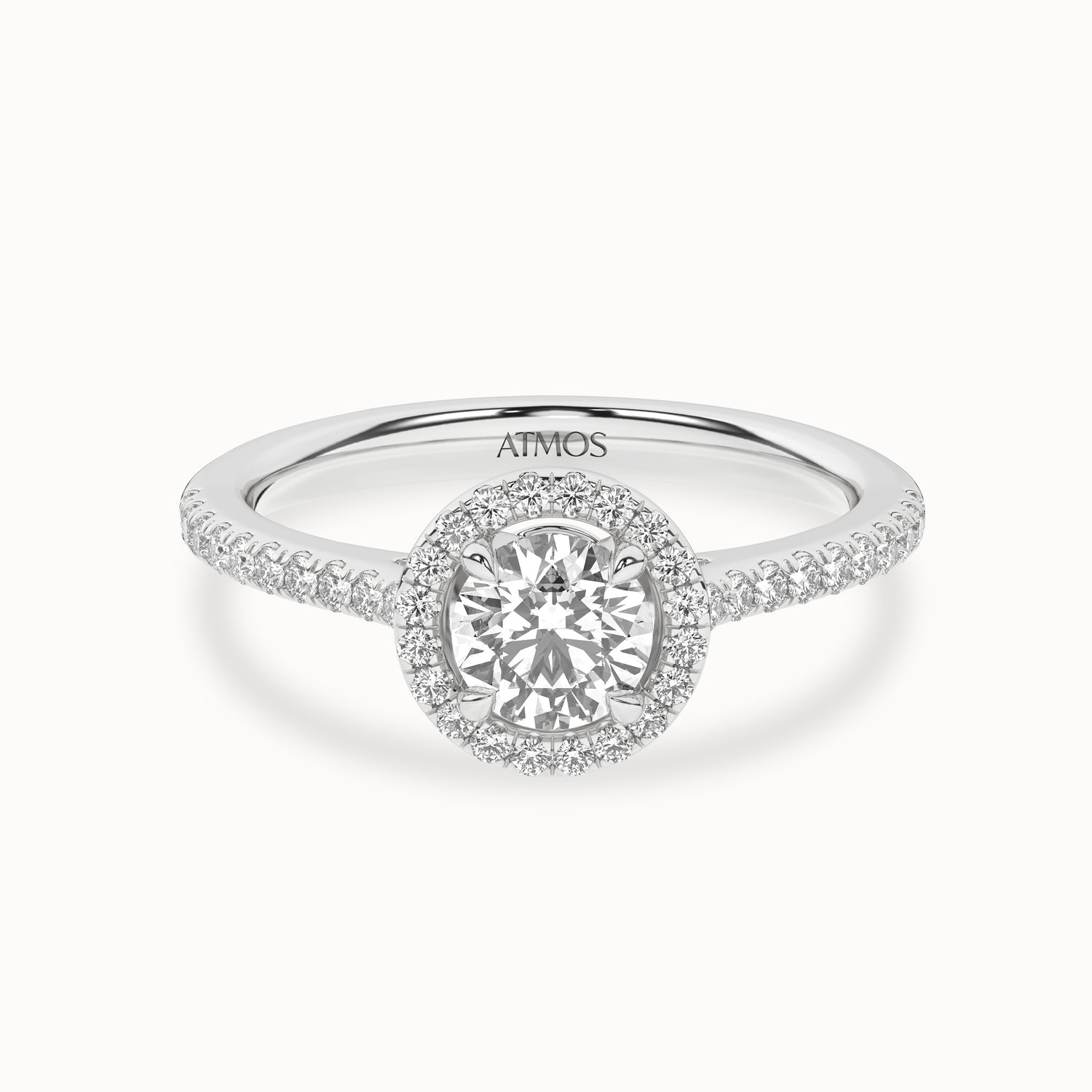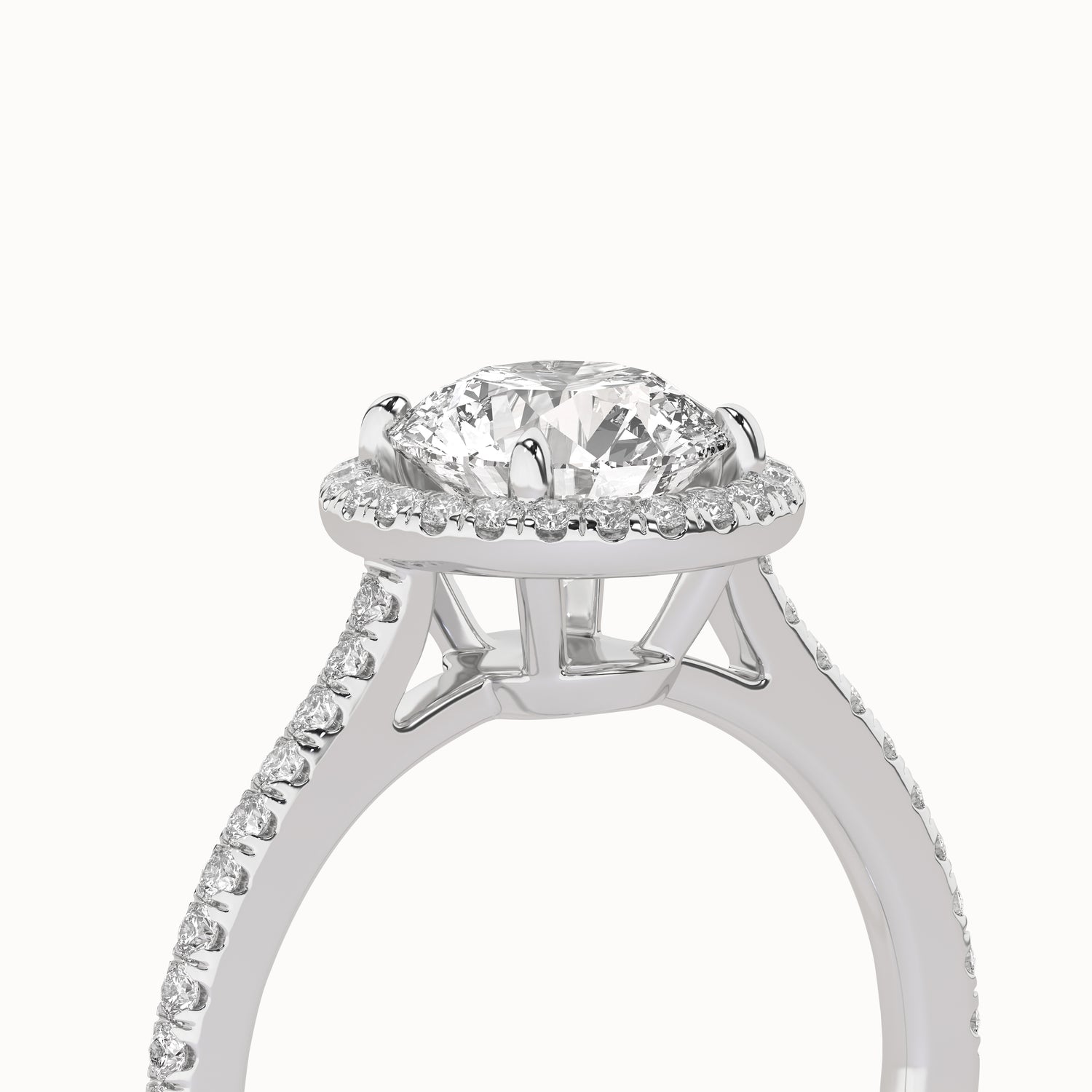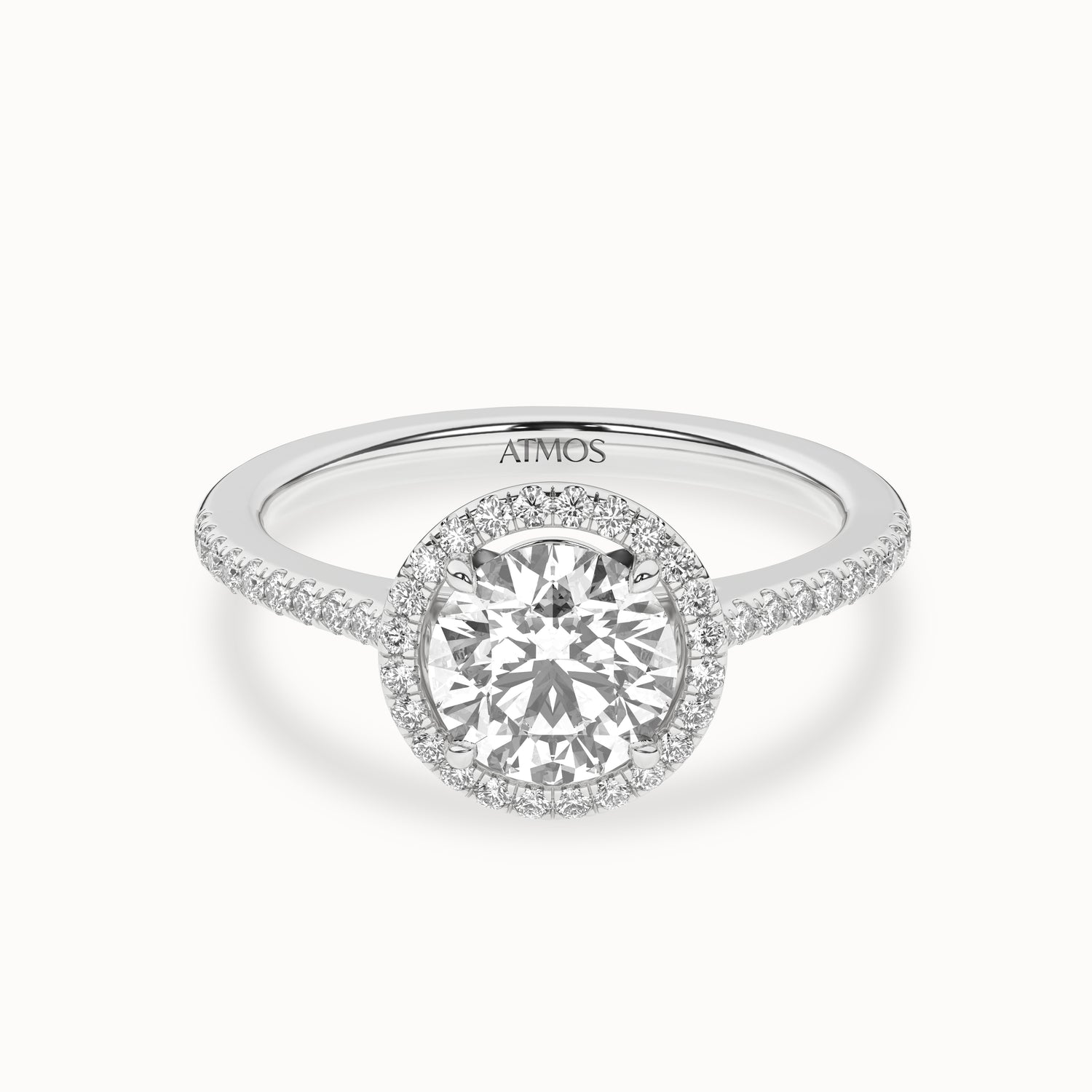 Featuring a single row of diamond pavé on the band creates a lift to focus on the round brilliant cut center diamond accentuating maximum brilliance. This round-shaped lab-grown diamond halo ring is striking, and the diamond row gives it a regal look and feel.