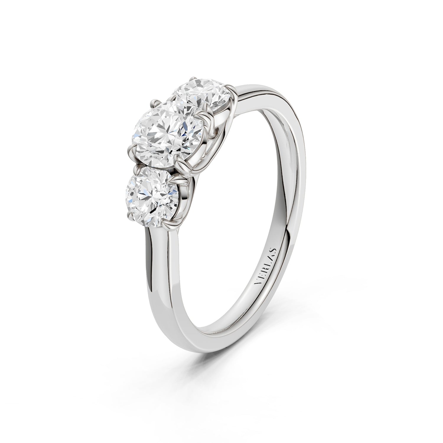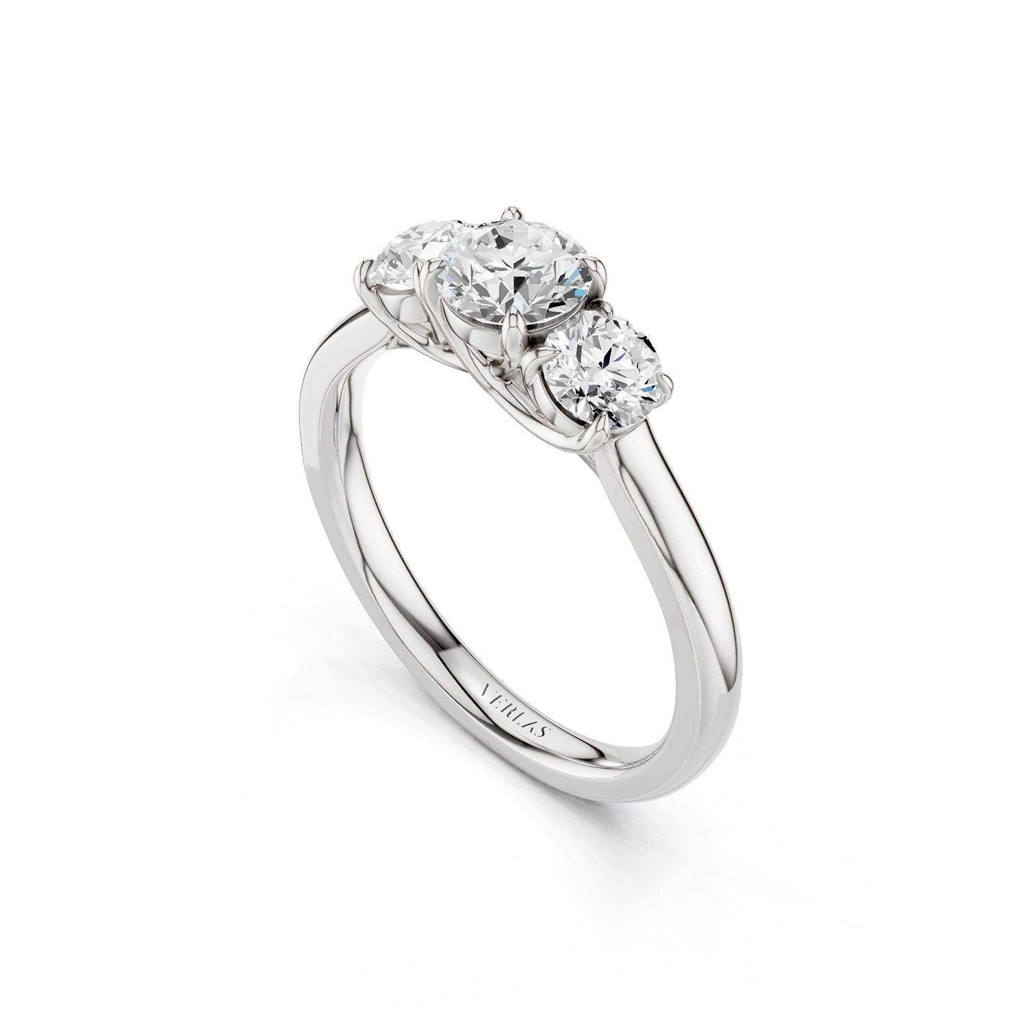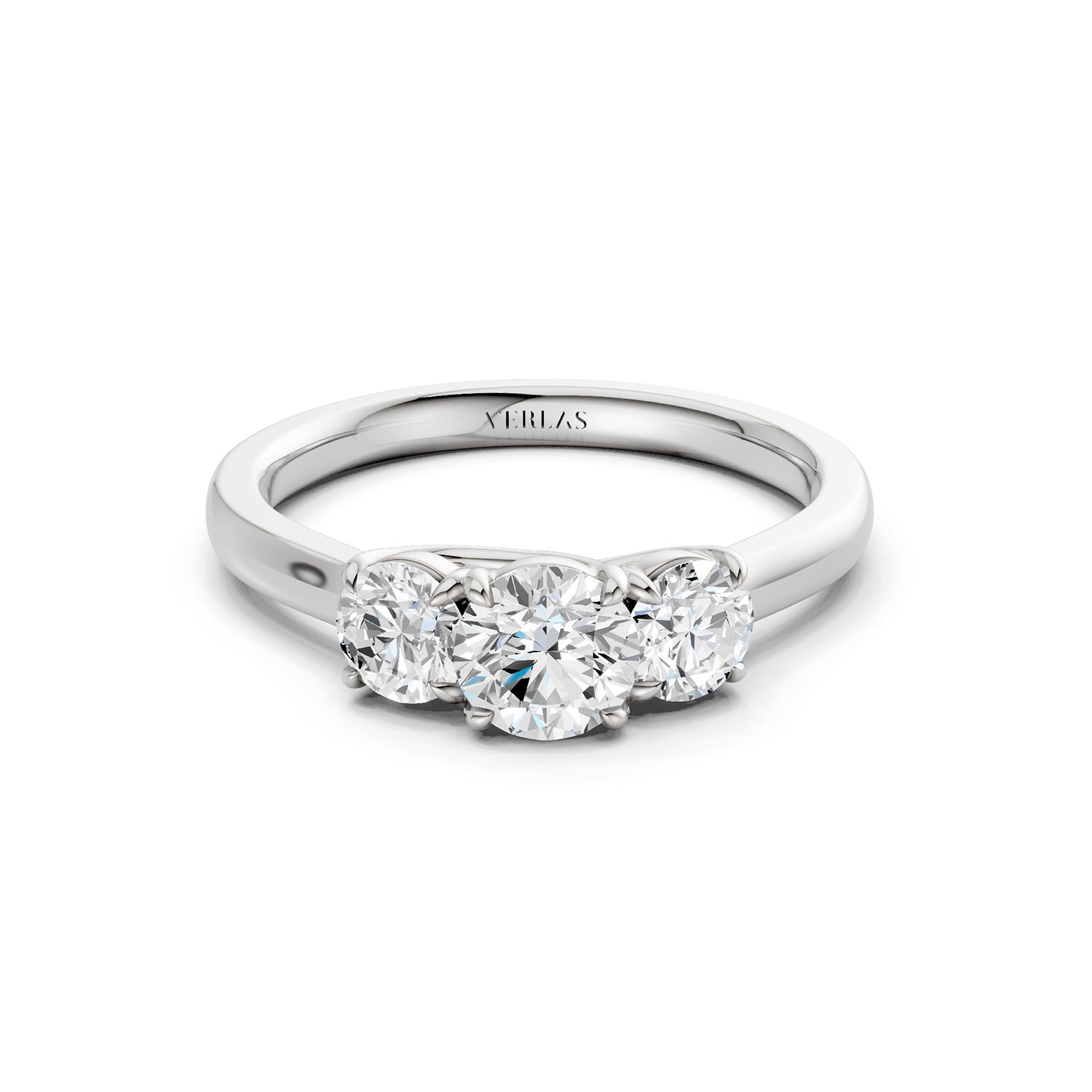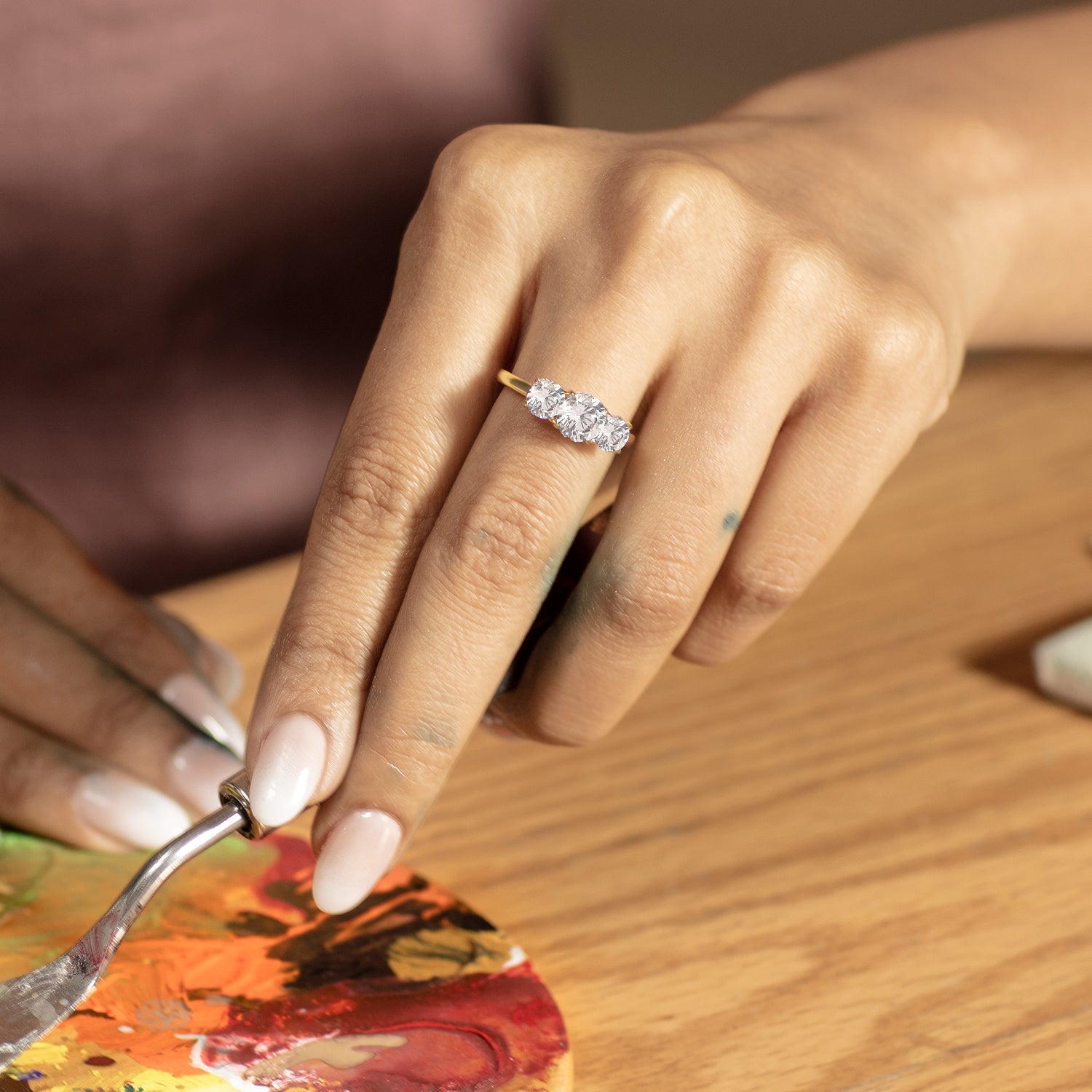 A trio of lab-grown diamonds set in a prong-setting and crafted in 18k gold perfectly symbolizes your journey together. Stylish and radiant, this lab-made diamond engagement ring will beautify every moment of your life as your beloved one does.